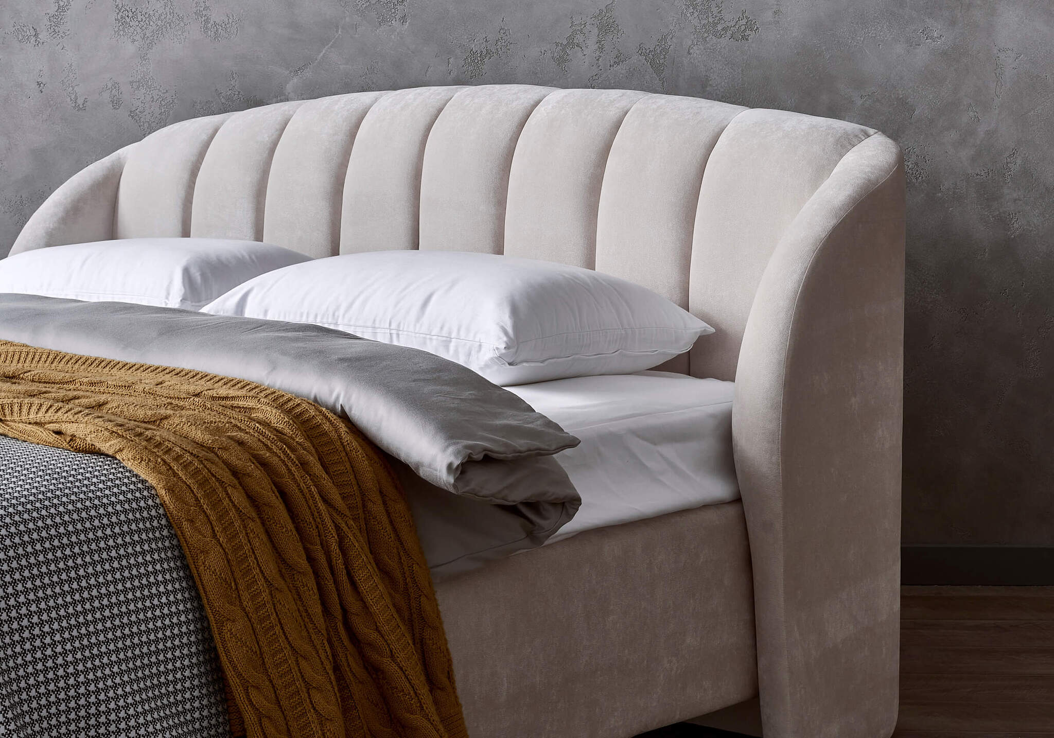 Кровать Valencia выполнена в стиле модерн. Акцент на мягкое округлое, объемное изголовье. Кровать подарит особое чувство спокойствия, уюта, а закругленные боковые элементы обеспечат чувство защищенности во время отдыха. Сделать модель по истине эффектной поможет широкий выбор обивочной ткани. При необходимости кровать может быть укомплектована разборным или неразборным металлическим основанием с ламелями, подъемным механизмом с бельевым ящиком, трансформируемым основанием Aquarius.