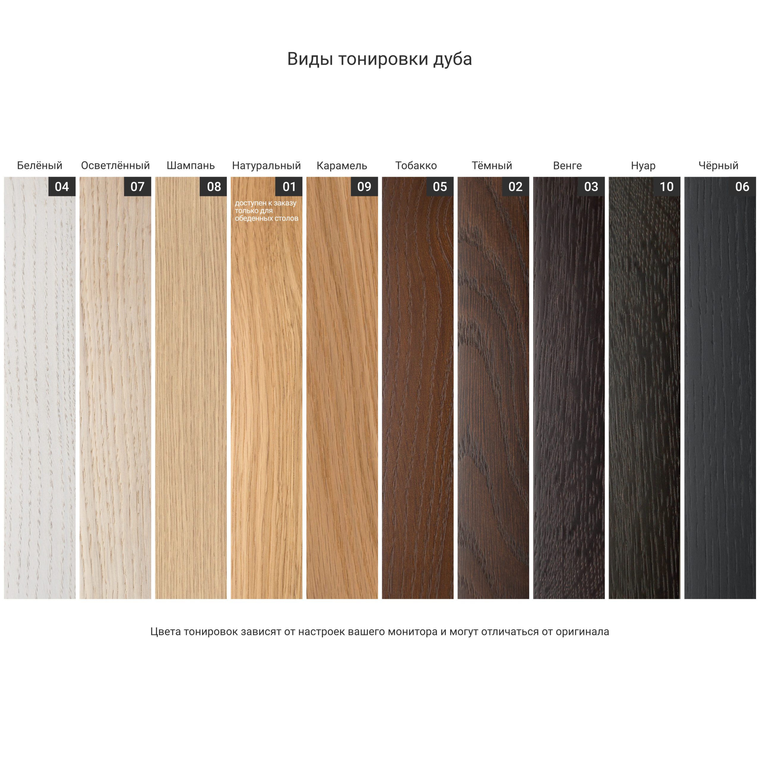 4 готовые комбинации отделок для вдохновения: выбирайте тонировку дуба(10 видов) или эмаль (30+ цветов), нанесенную поверх текстуры дерева. Или сочетайте тонировку дуба и эмаль в одном изделии.