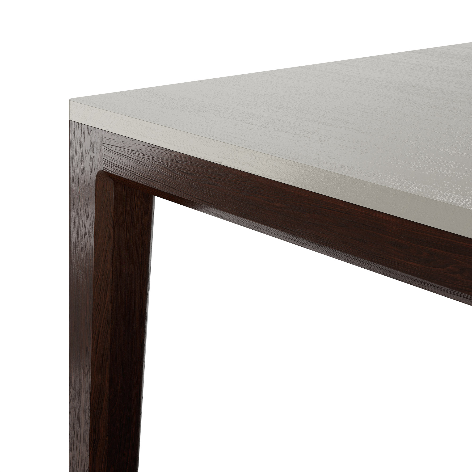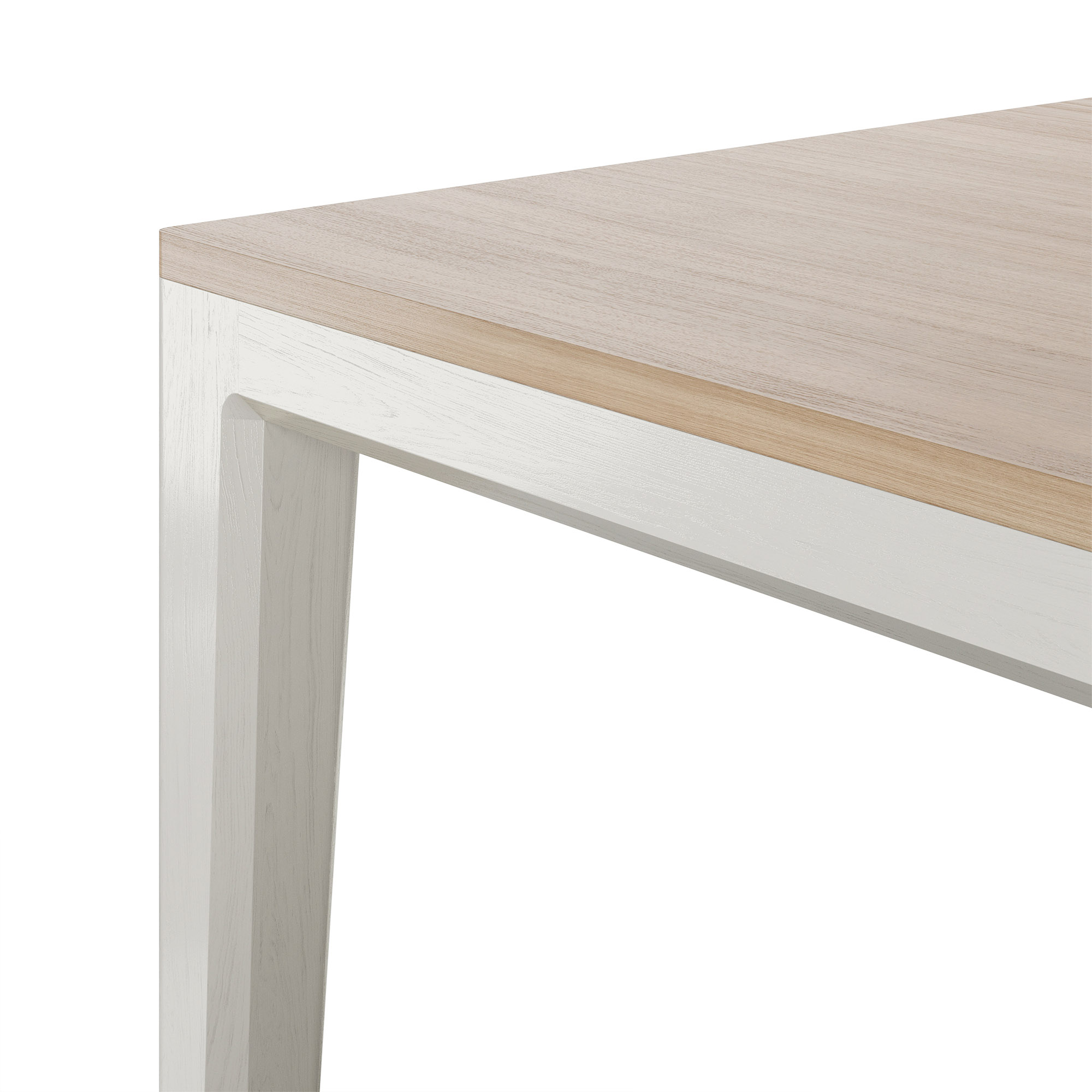 Прочное основание из массива дуба уверенно выдерживает значительные нагрузки. Даже модель максимальной длины (220 см) демонстрирует безупречную устойчивость. Столешница из МДФ покрыта натуральным шпоном дуба и надежно защищена износостойким матовым лаком от влаги и царапин.