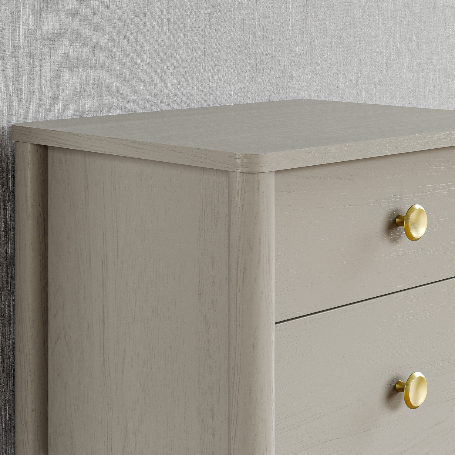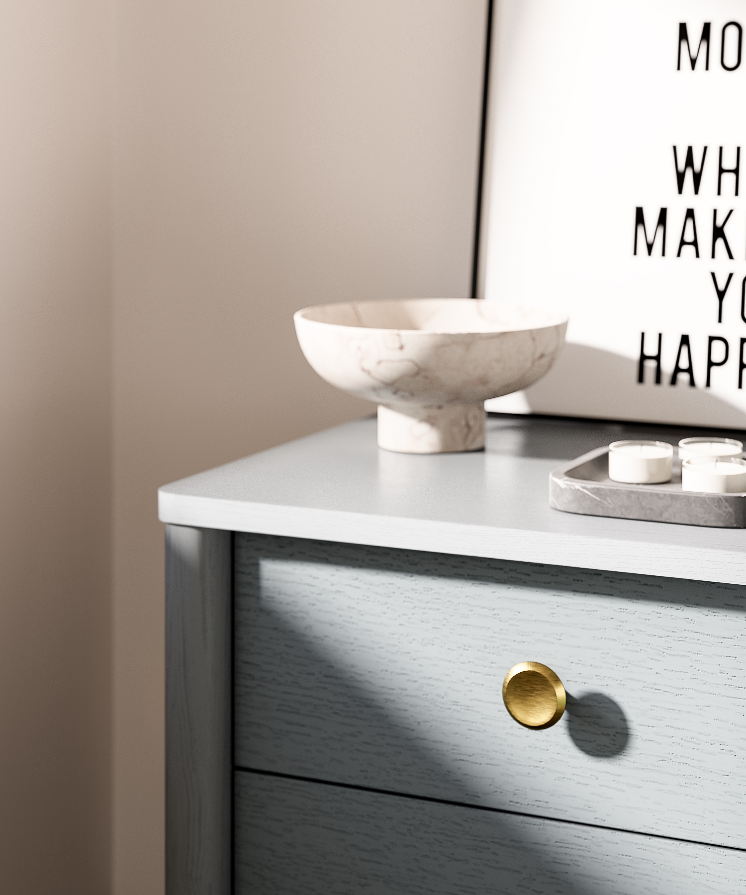Наследие mid-century и философия японского минимализма воплотились в этой модели. Её архитектура построена на гармонии прямых линий и мягких, округлых форм. Теплая видимая текстура дуба, изящные каплевидные ножки и аккуратные круглые ручки создают предмет, наполненный уютом, сдержанностью и визуальной лёгкостью.
