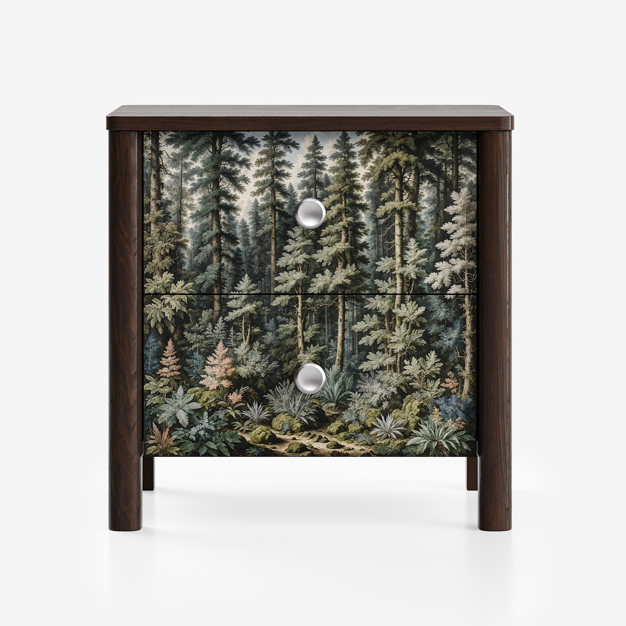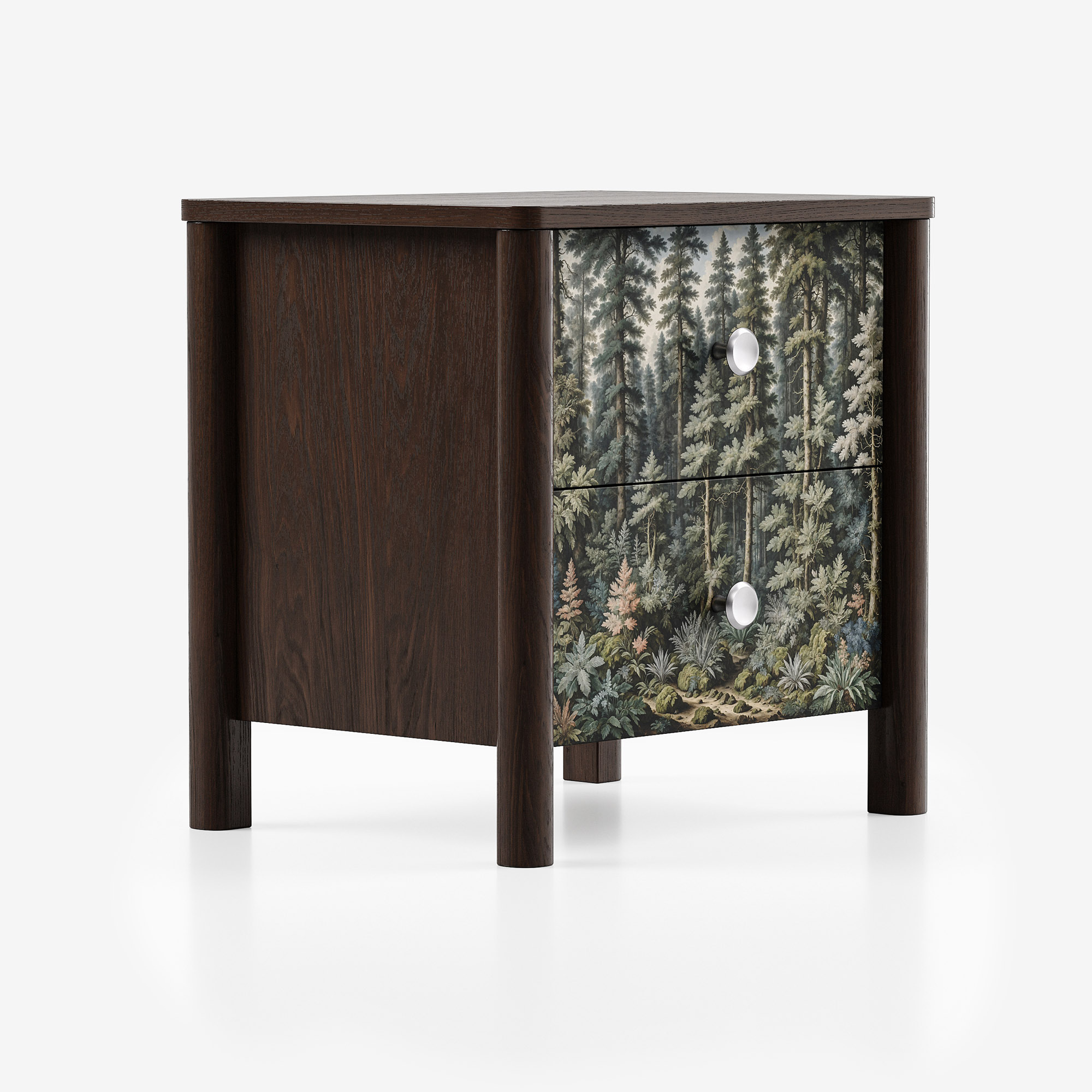Уникальное сочетание скандинавской эстетики mid-century и цифрового искусства. Теплая текстура тонированного дуба, плавные каплевидные ножки и эксклюзивные принты из коллекции INSPIRE создают предмет мебели, который является самостоятельным арт-объектом. Это больше, чем тумба — это визуальное заявление, наполняющее пространство характером и глубиной.