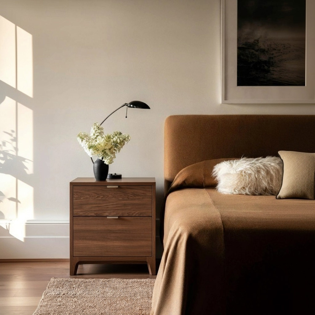 Прикроватная тумба с лаконичным дизайном для современной спальни.