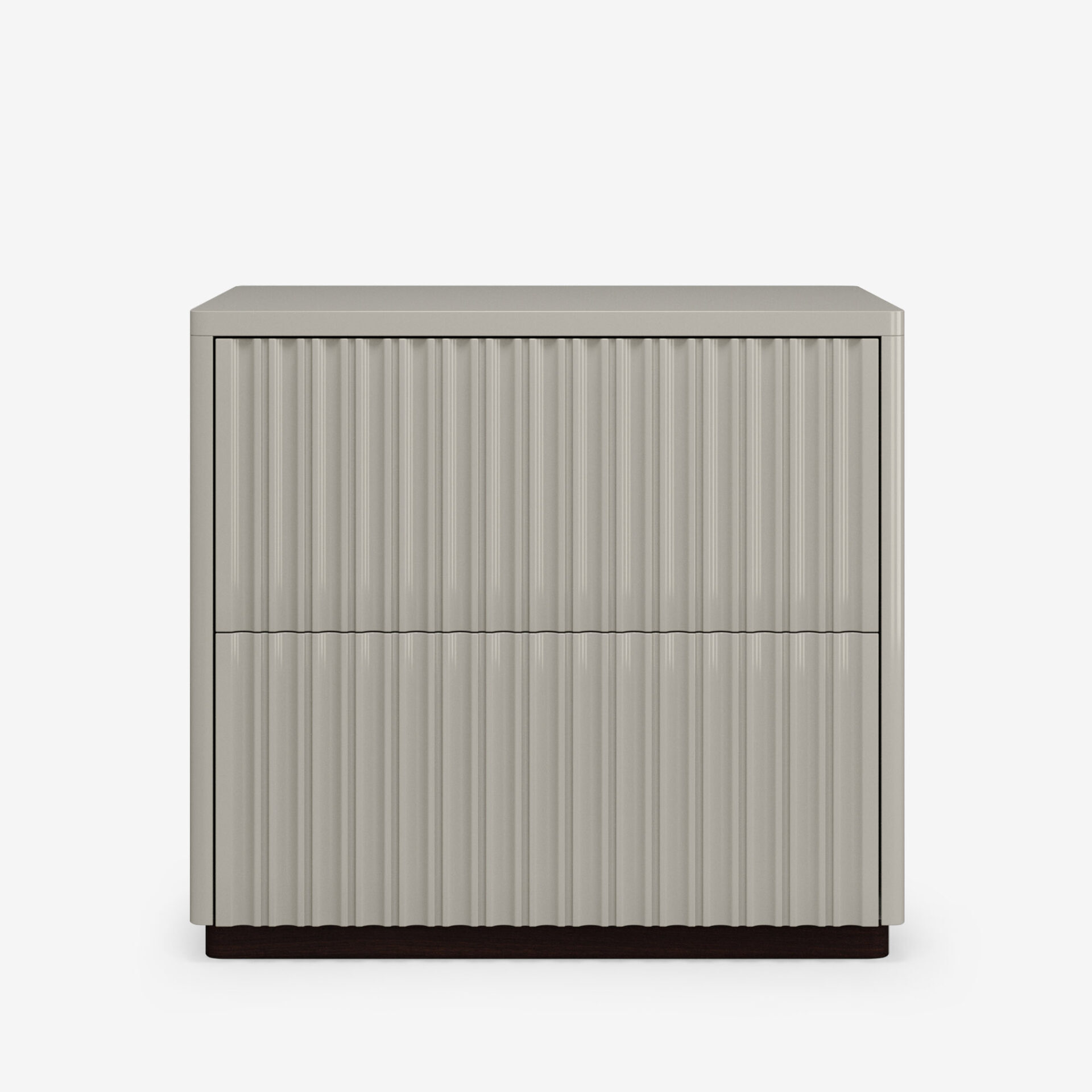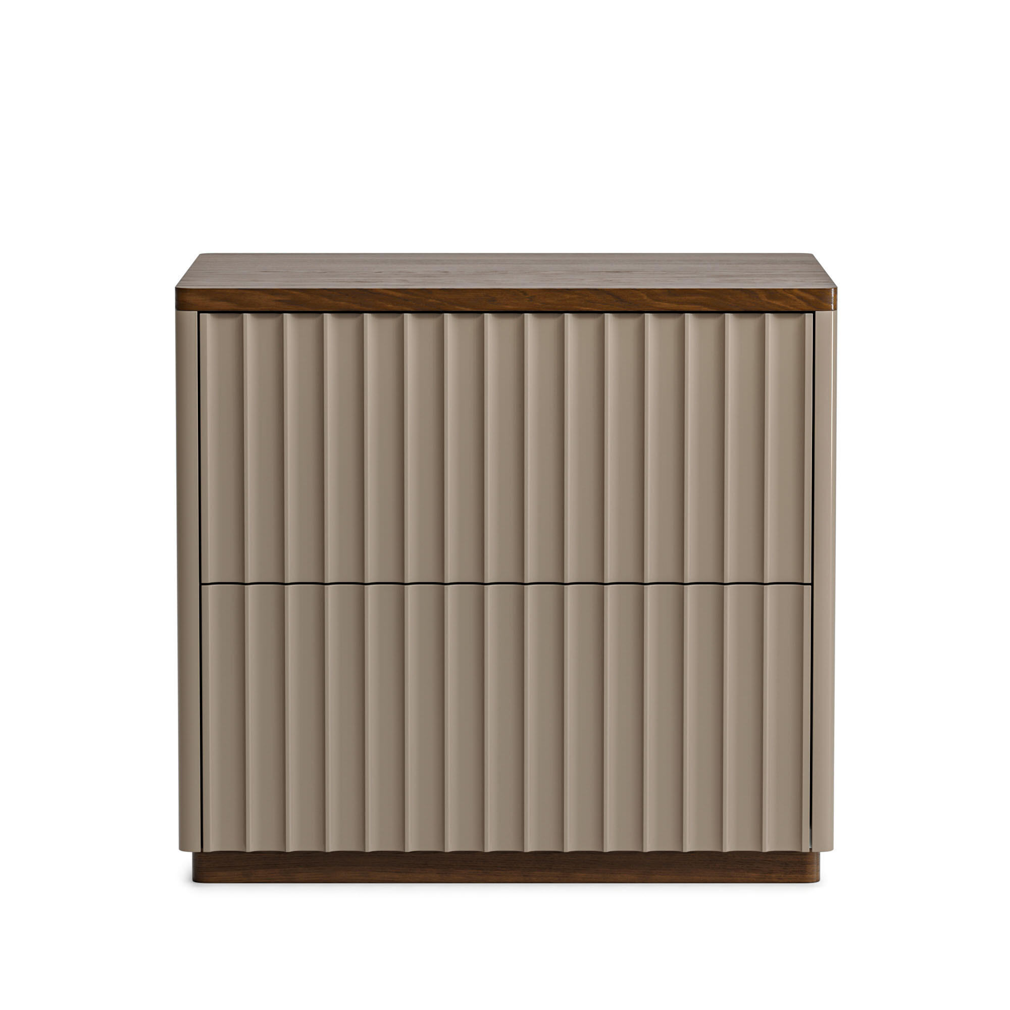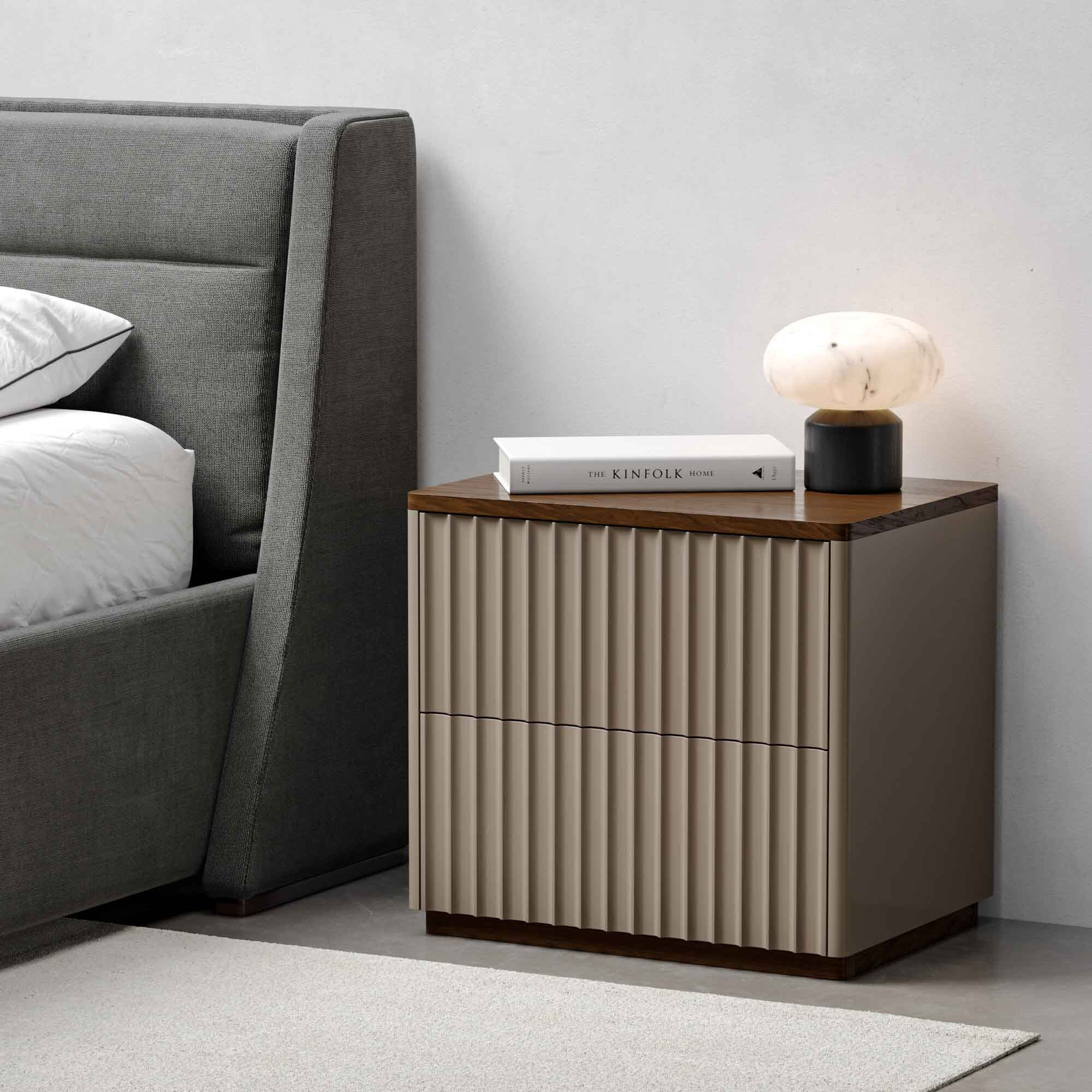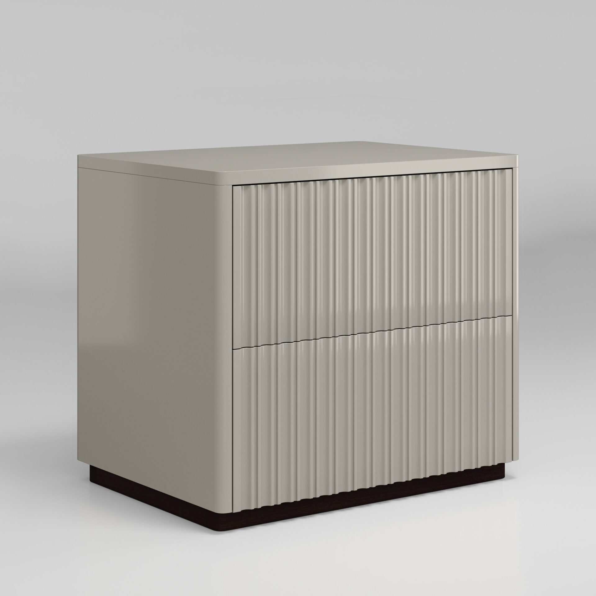 на фасадах создает динамичную игру света и тени, а система push-to-open позволяет открывать ящики легким нажатием.
