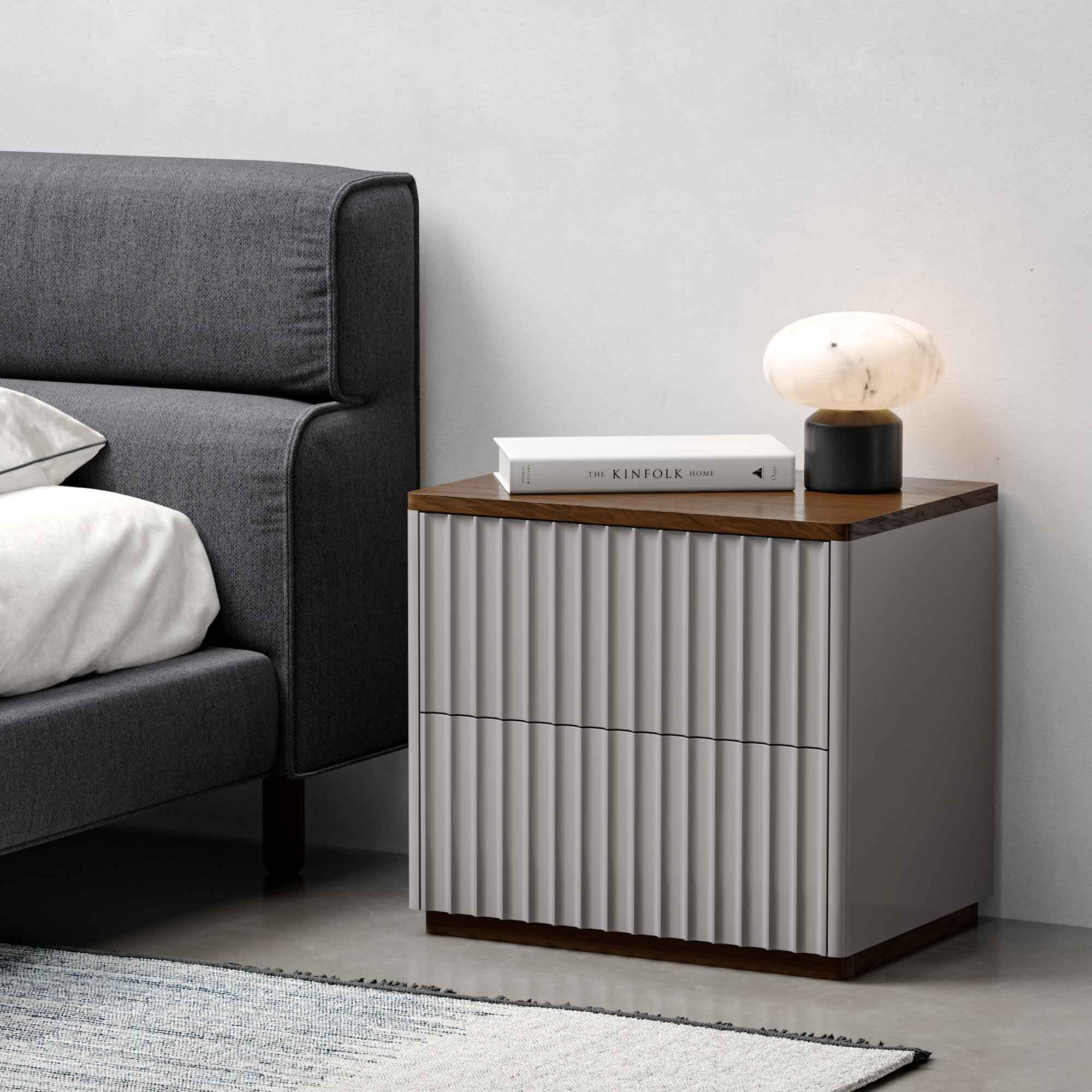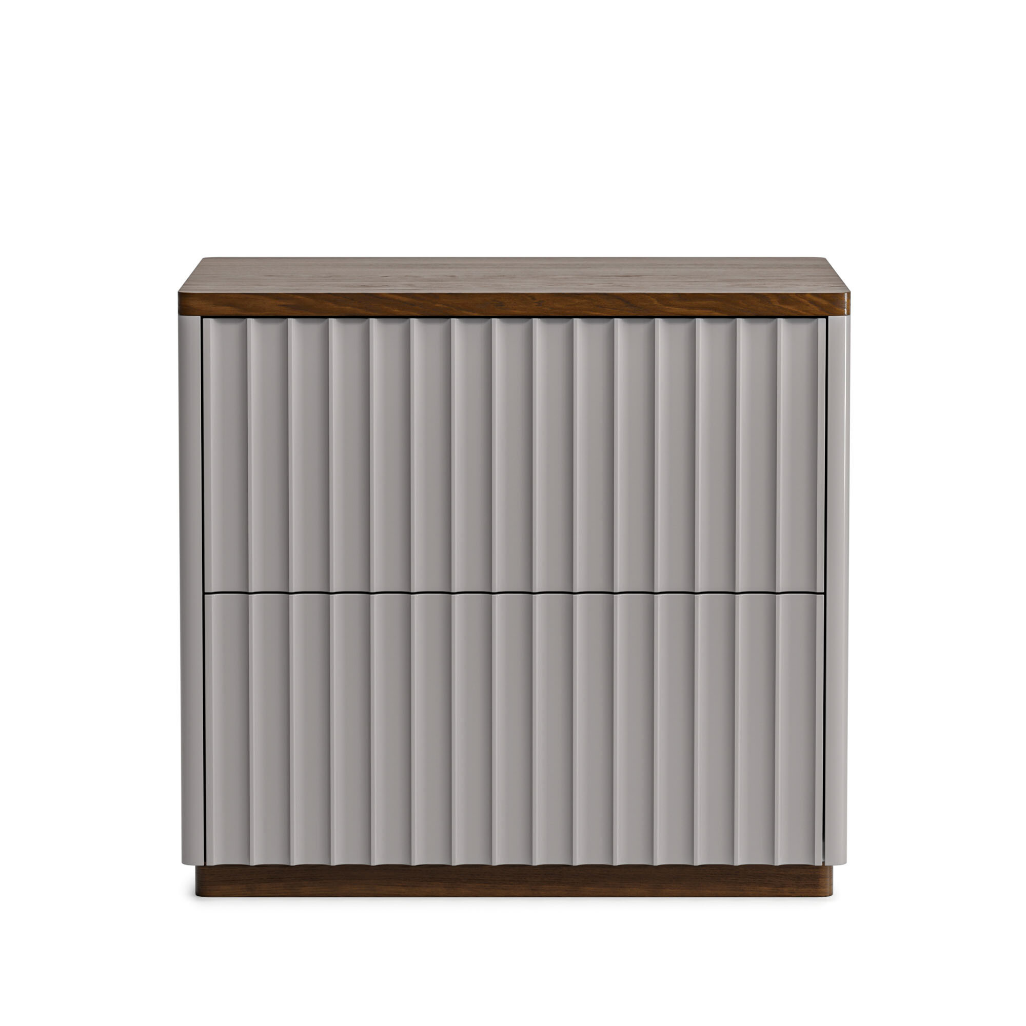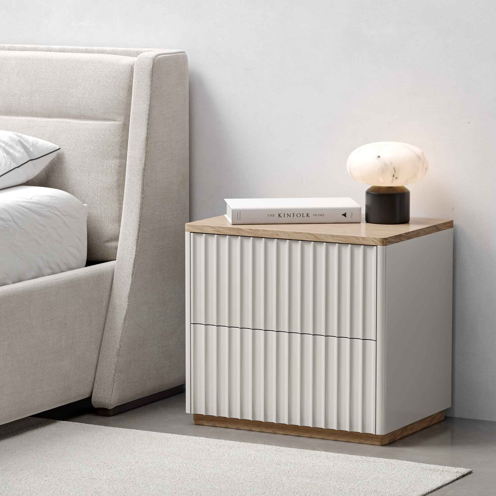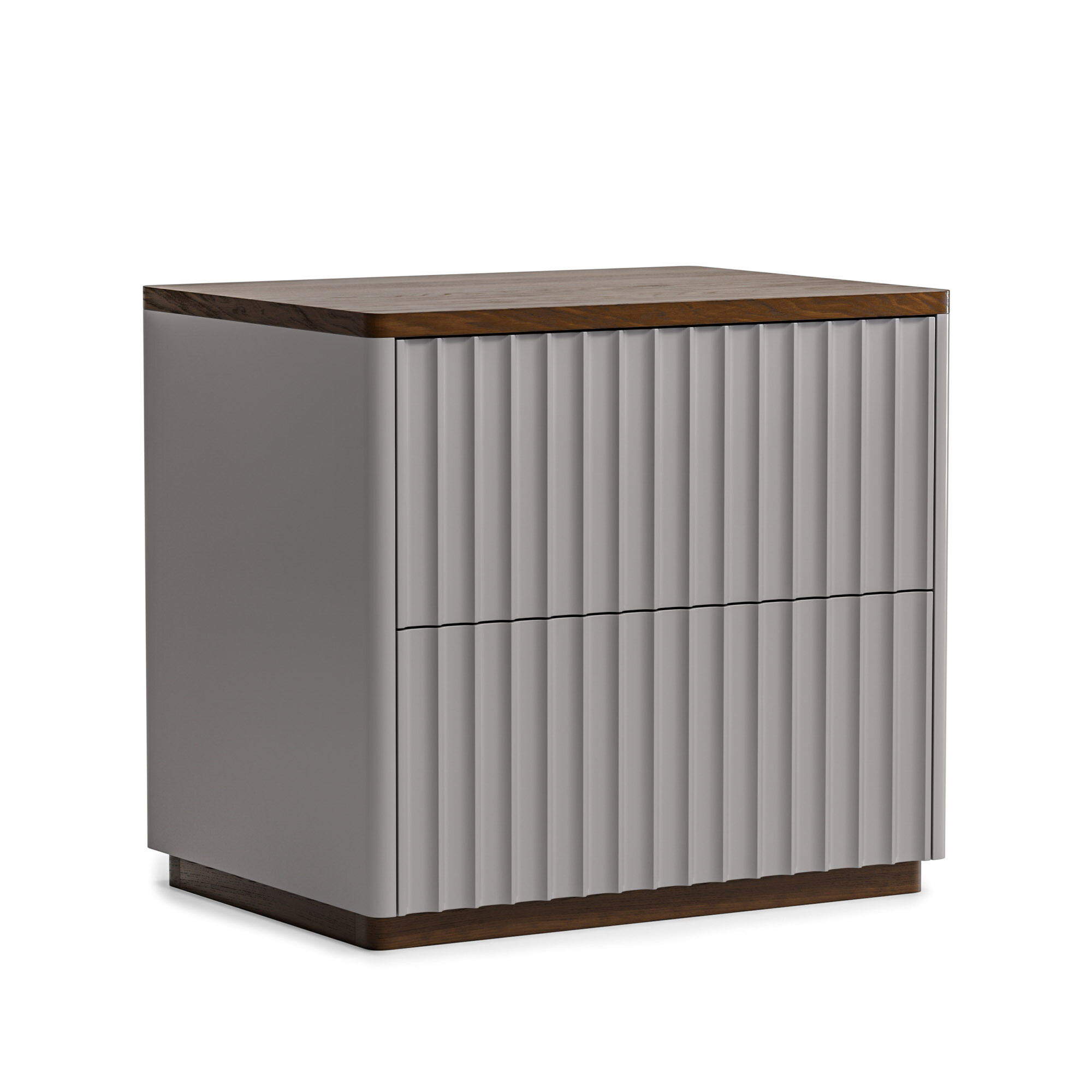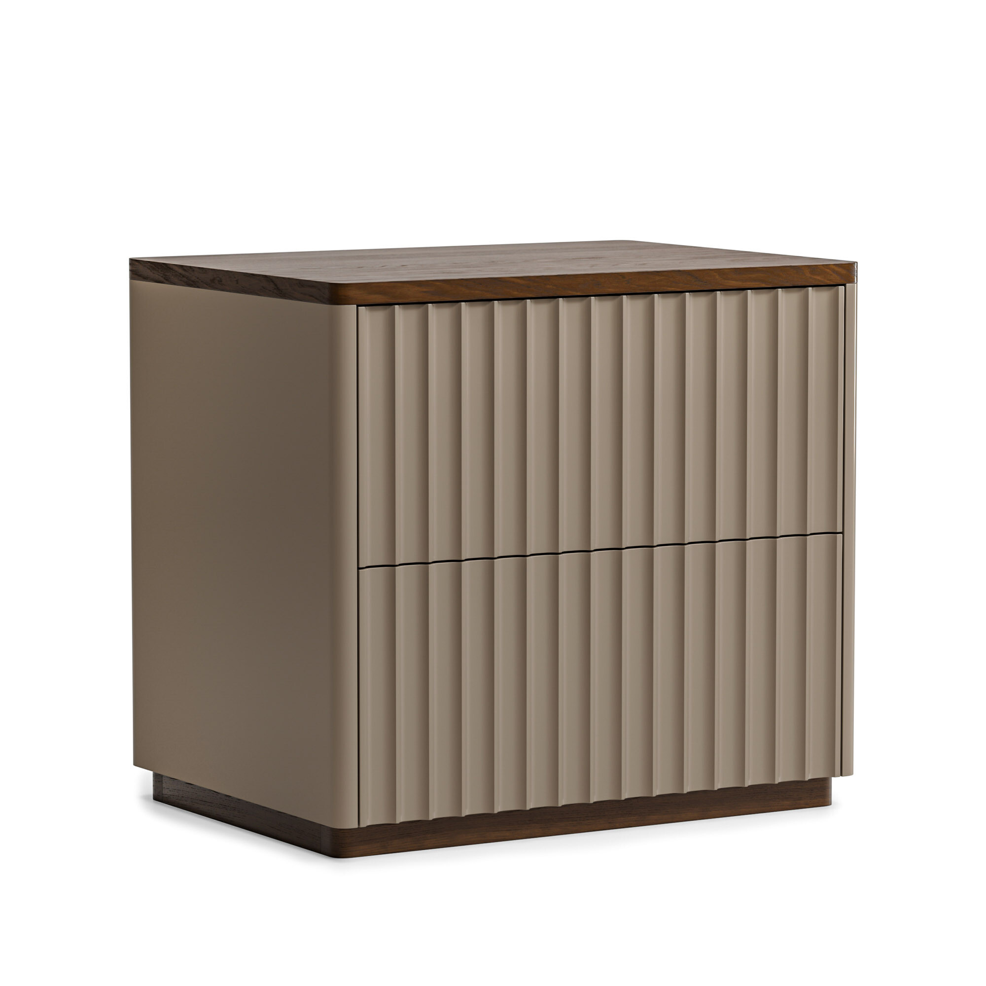 на фасадах создает динамичную игру света и тени, а система push-to-open позволяет открывать ящики легким нажатием.