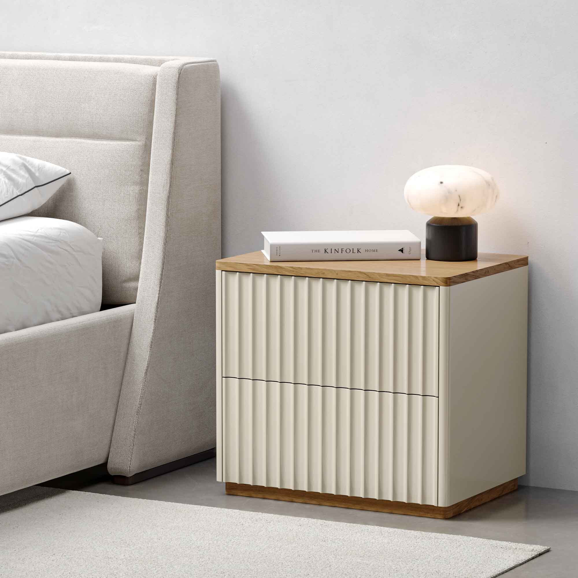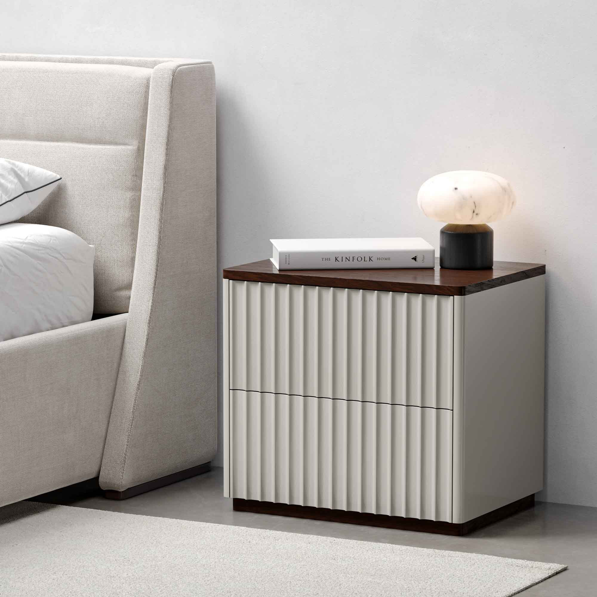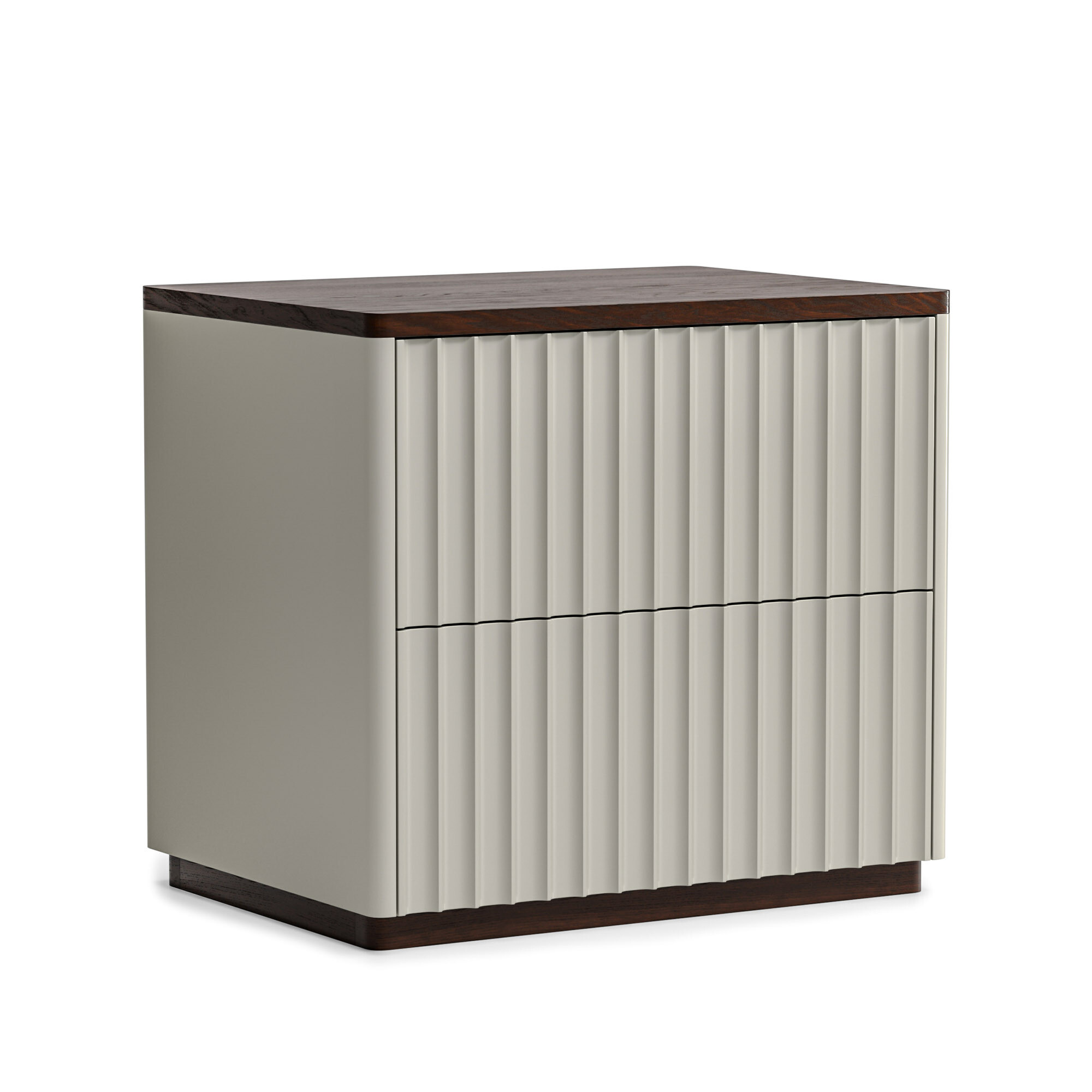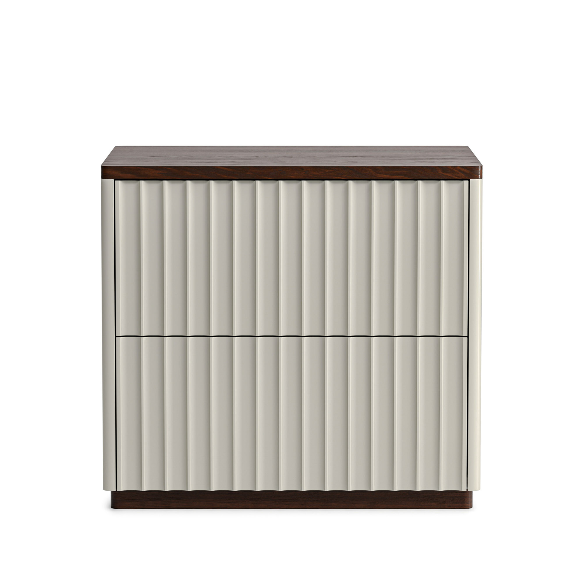 на фасадах создает динамичную игру света и тени, а система push-to-open позволяет открывать ящики легким нажатием.