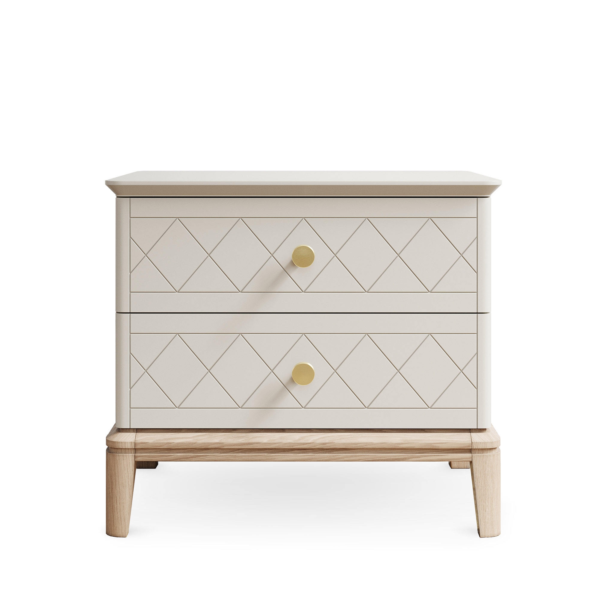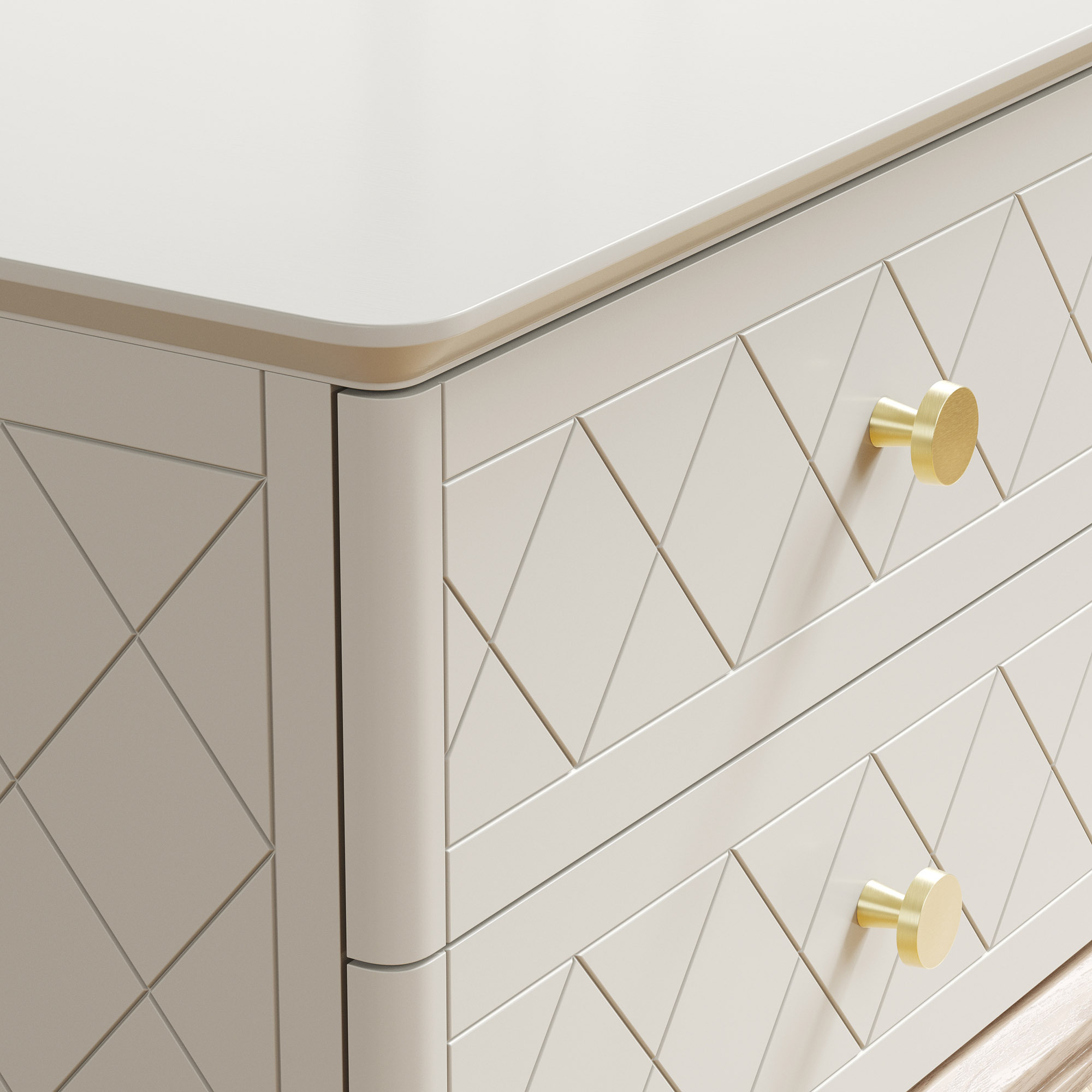 Изысканная тумба, притягивающая внимание утонченным дизайном. Узнаваемый силуэт в стиле современной классики создают ступенчатая фрезеровка столешницы и трехсторонняя гравировка, переходящая с фасада на боковые стенки. Это будущее украшение вашей спальни, где каждая линия продумана для создания гармоничного образа.