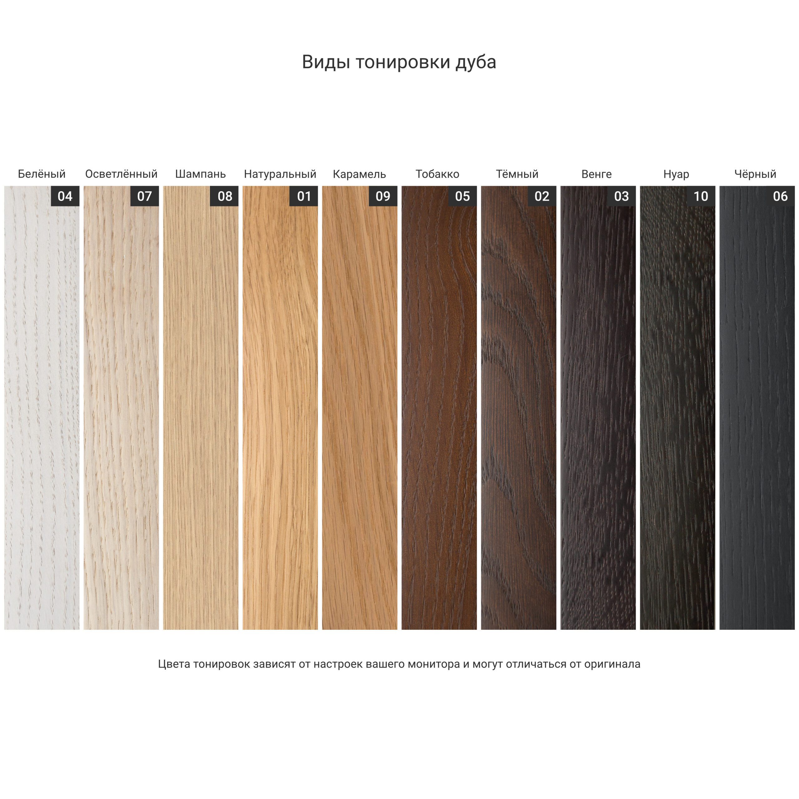 Принты выполнены в натуральной цветовой гае, а тонировку дуба можно