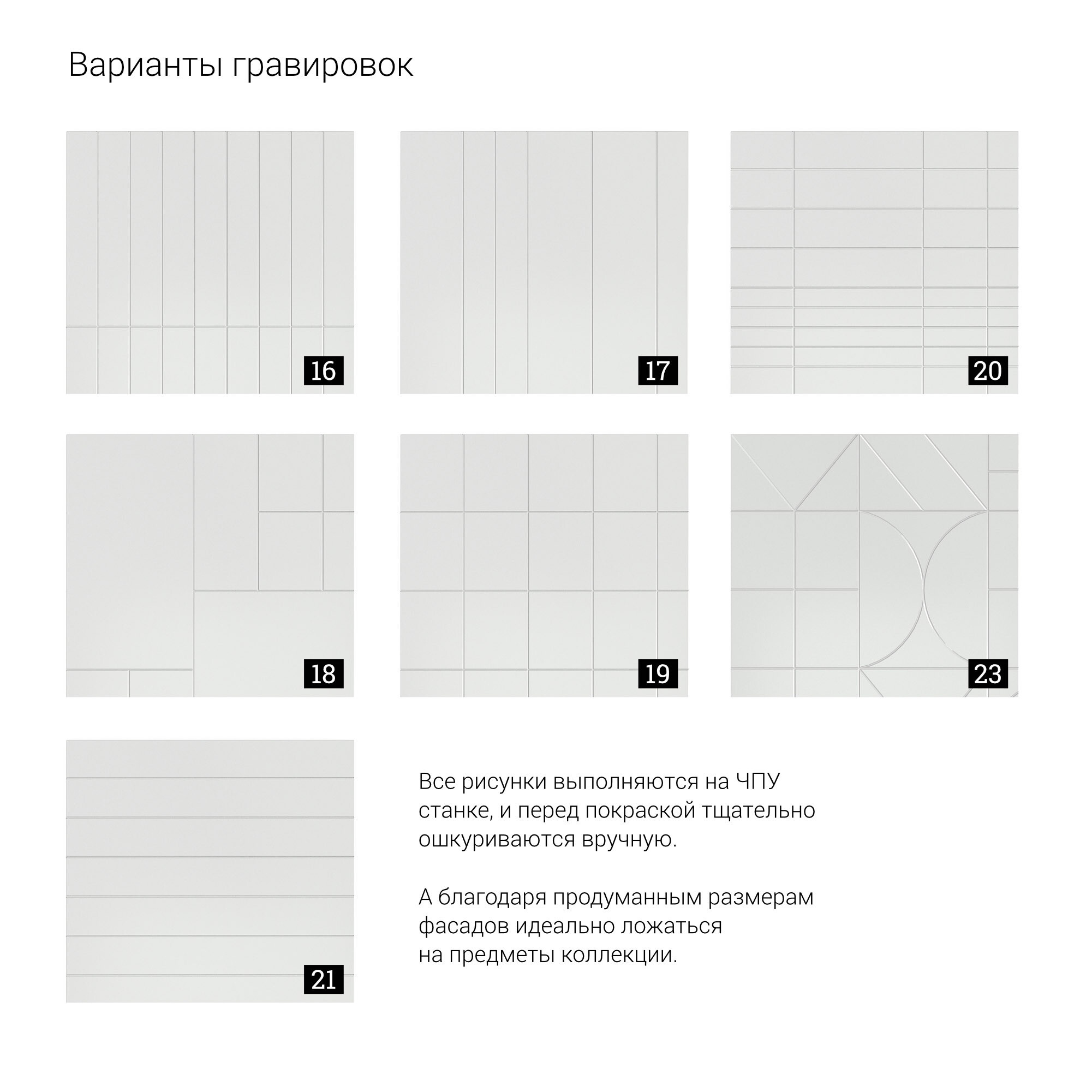 Декоративная объемная гравировка на фасадах и на боковых поверхностях изделий;