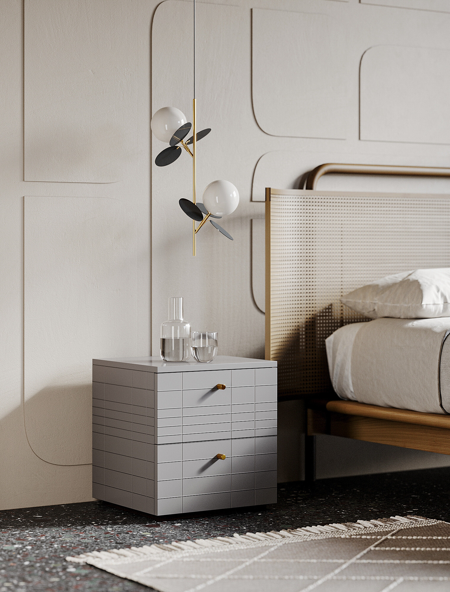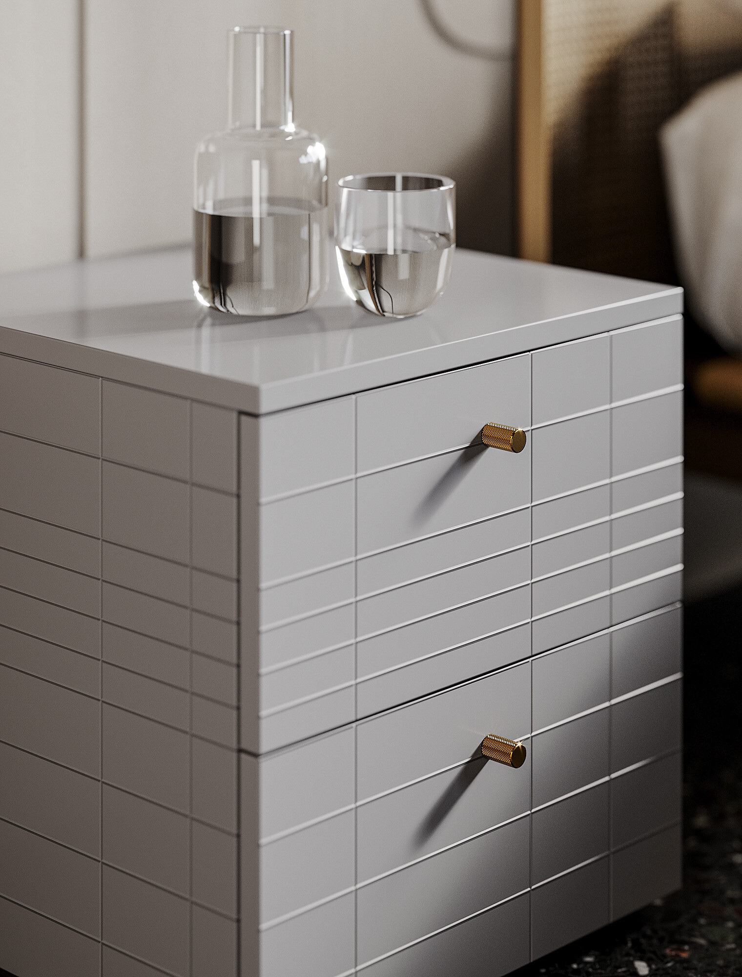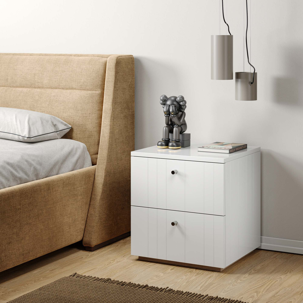 Прикроватная тумба на цоколе ML018 смотрится органично и невероятно стильно в любом интерьере. Тумба изготовлена из МДФ и натурального шпона дуба, и покрыта матовой эмалью. В ящиках тумбы с легкостью поместятся все необходимые мелочи, а ее фасады и боковые стенки украшены минималистичным узором гравировки. Модель станет настоящим украшением вашей спальни.
