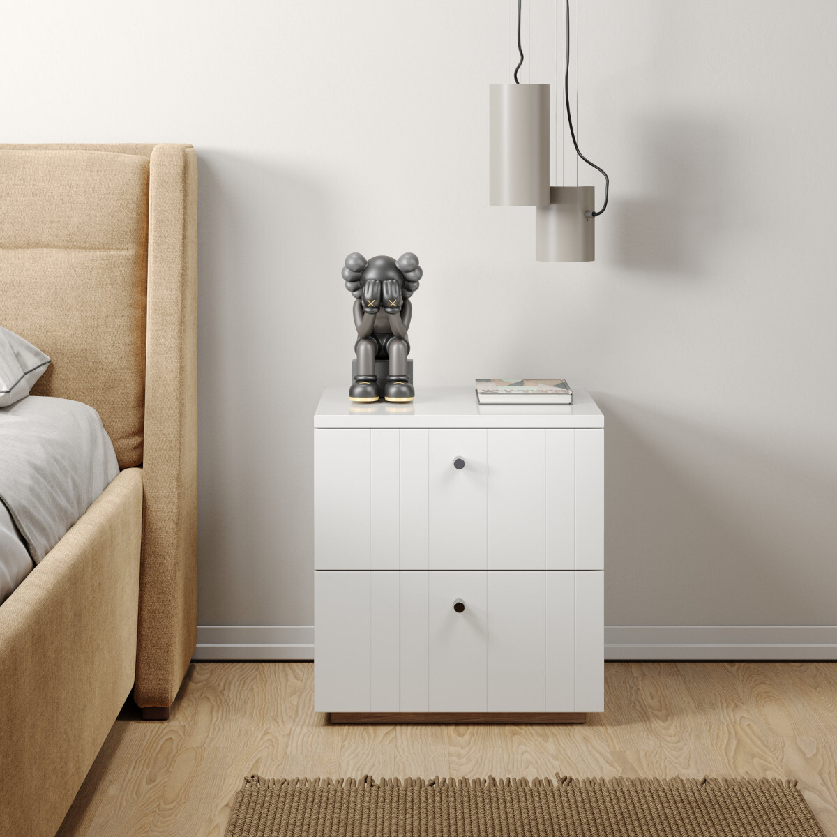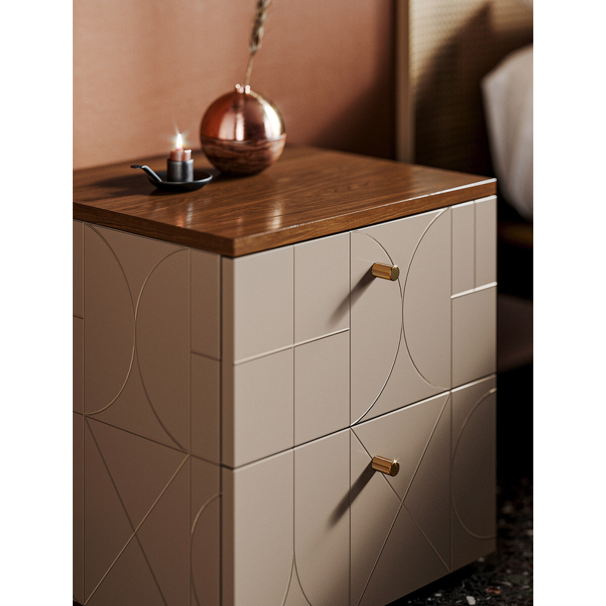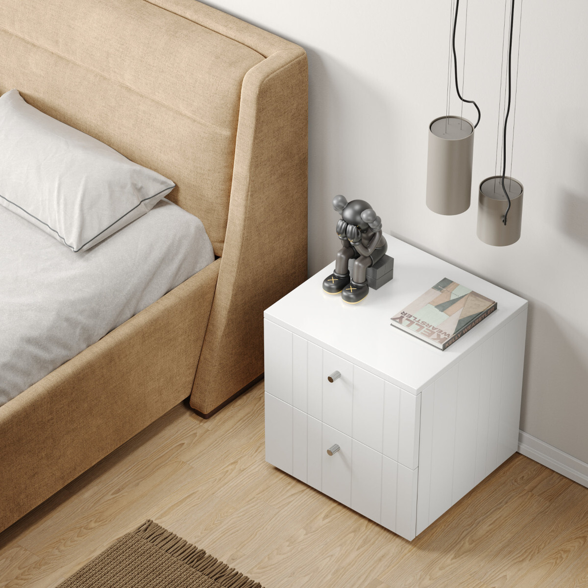 Прикроватная тумба на цоколе ML018 смотрится органично и невероятно стильно в любом интерьере. Тумба изготовлена из МДФ и натурального шпона дуба, и покрыта матовой эмалью. В ящиках тумбы с легкостью поместятся все необходимые мелочи, а ее фасады и боковые стенки украшены минималистичным узором гравировки. Модель станет настоящим украшением вашей спальни.