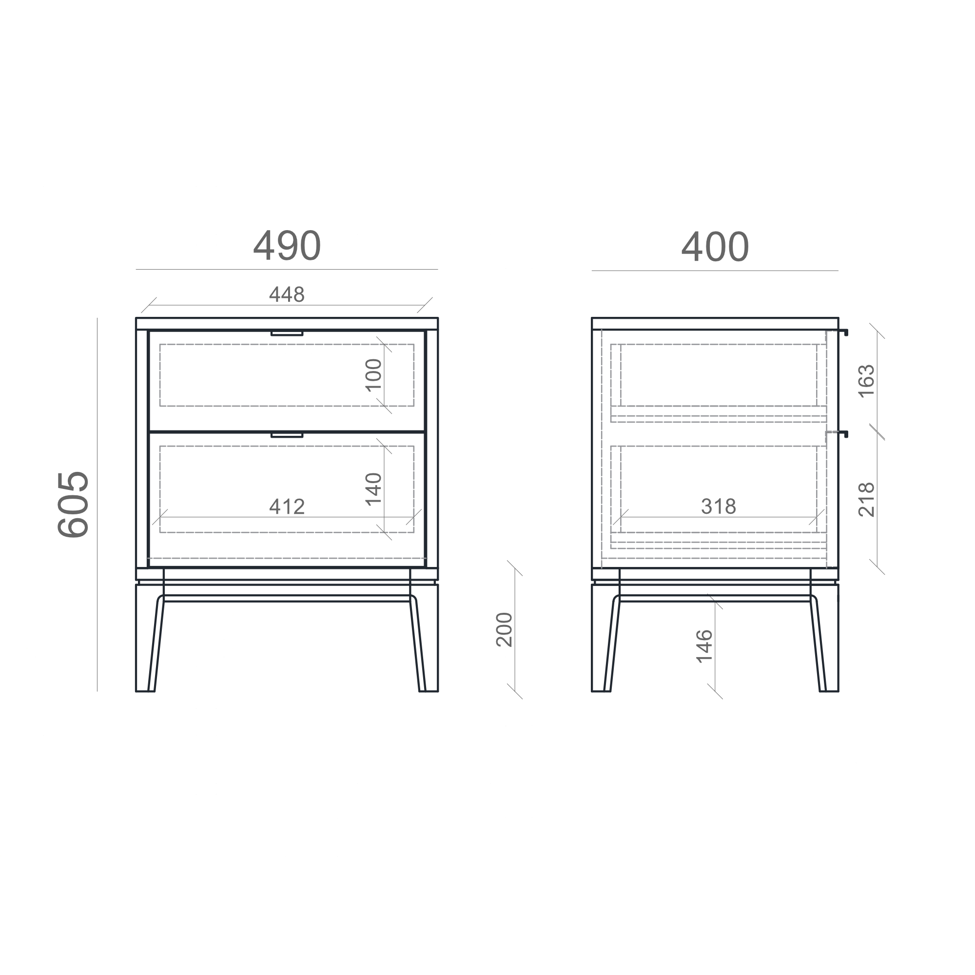 Прикроватная тумба TL009 с двумя выдвижными ящиками.