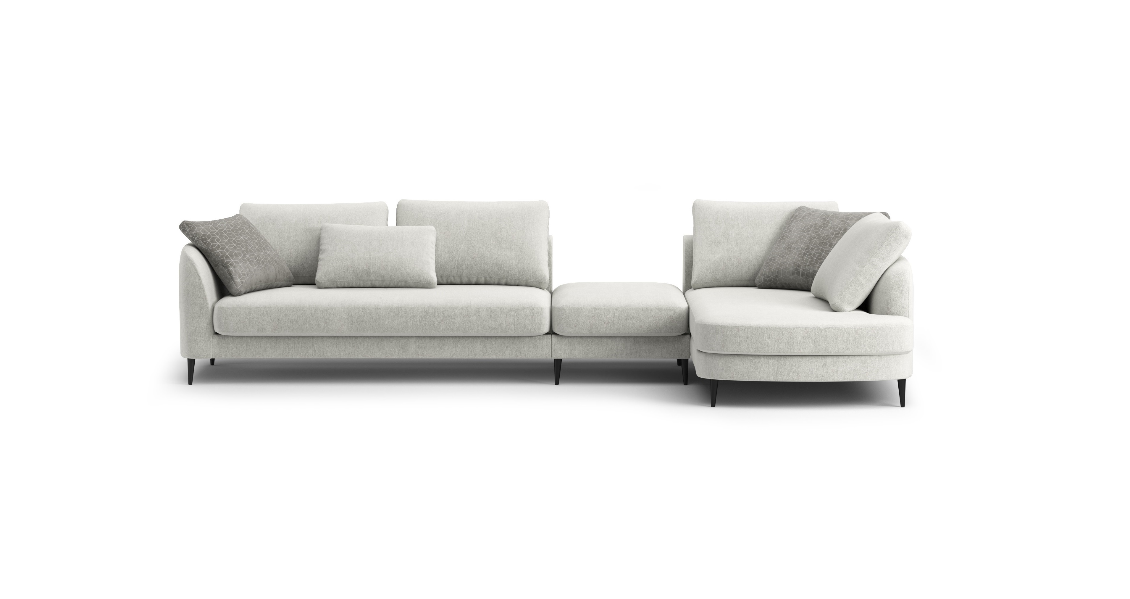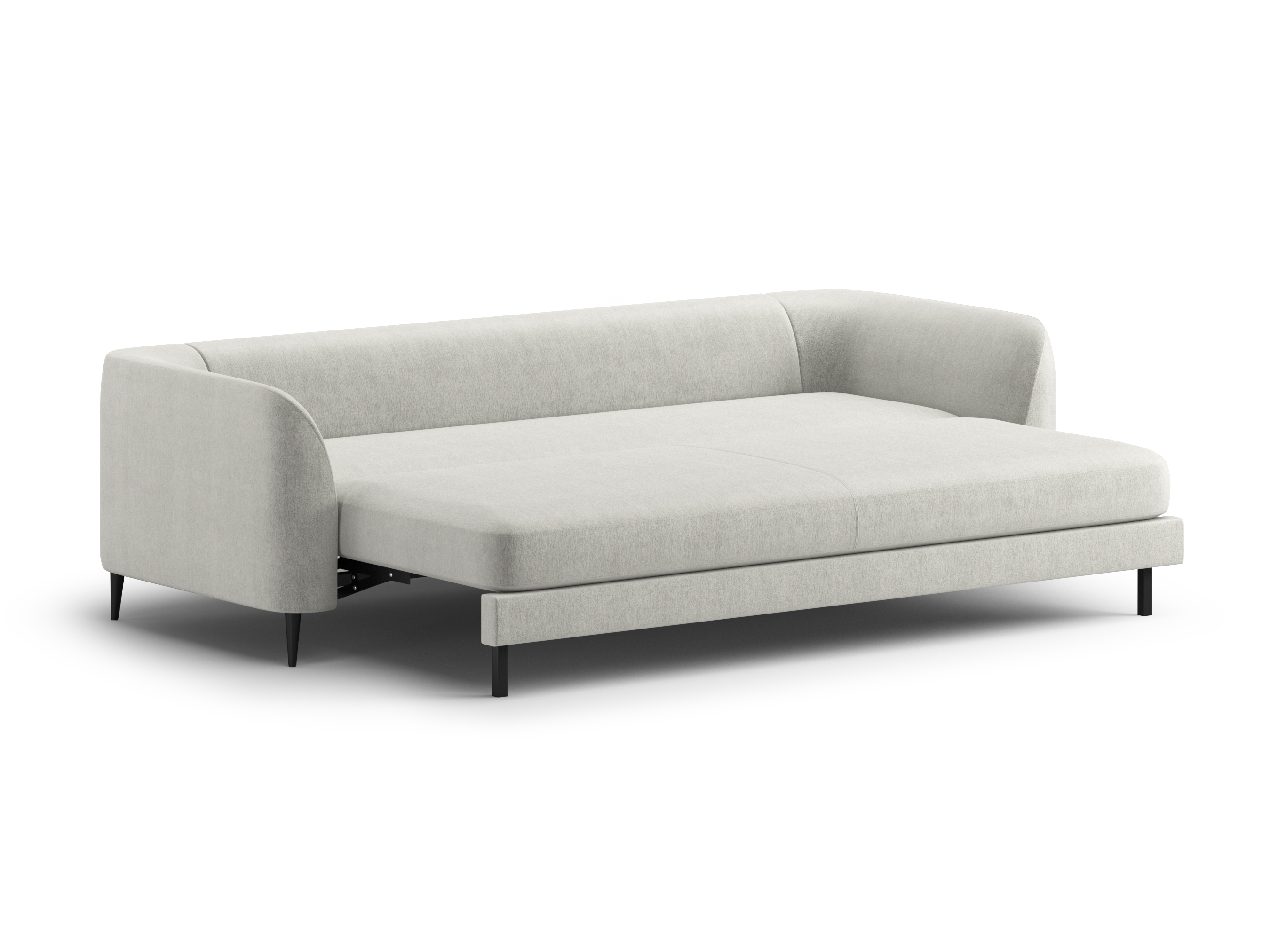 Округлые формы, мягкие линии и высокие опоры, которые делают диван визуально лёгким и воздушным. При этом внутри — полноценная кровать для ежедневного сна.