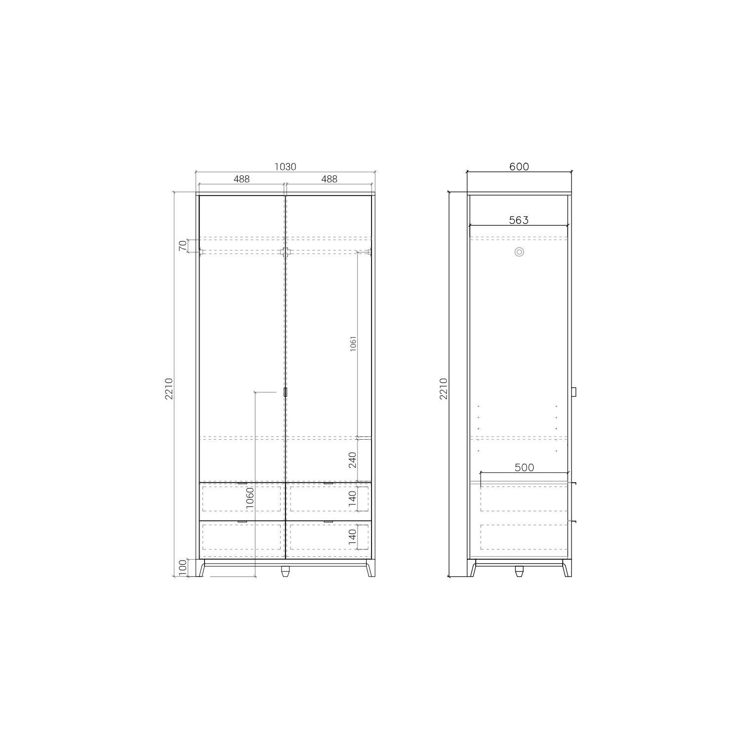 Компактный шкаф позволит комфортно и аккуратно разложить, а также развесить все ваши вещи. Конструкция шкафа предусматривает две секции со штангами и полками, а также четыре вместительных ящика. Выбирайте оттенок эмали, материал корпуса, тонировку основания и ножек, а также узор гравировки. Кроме того, вы можете заказать шкаф, который будет полностью покрыт натуральным шпоном дуба.
