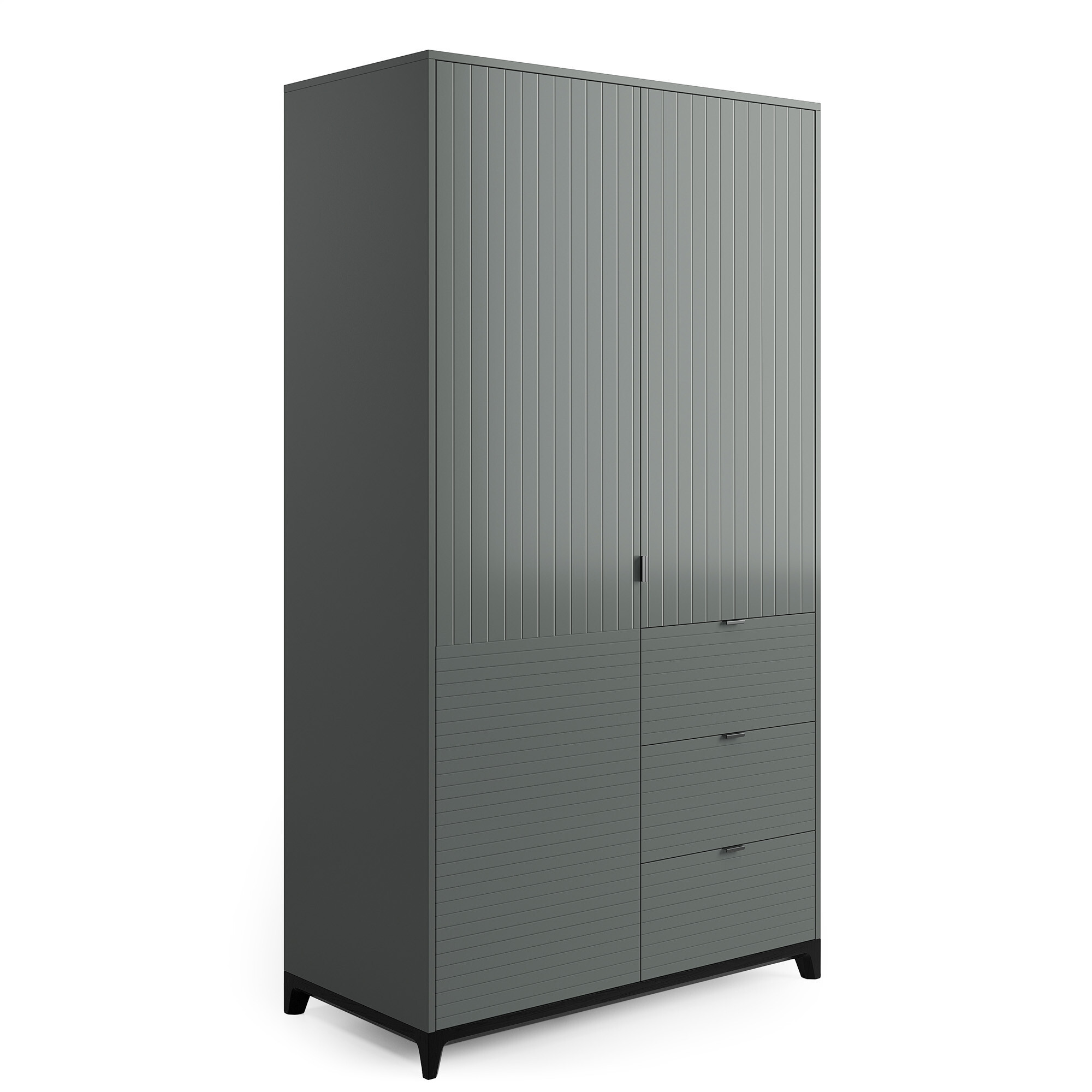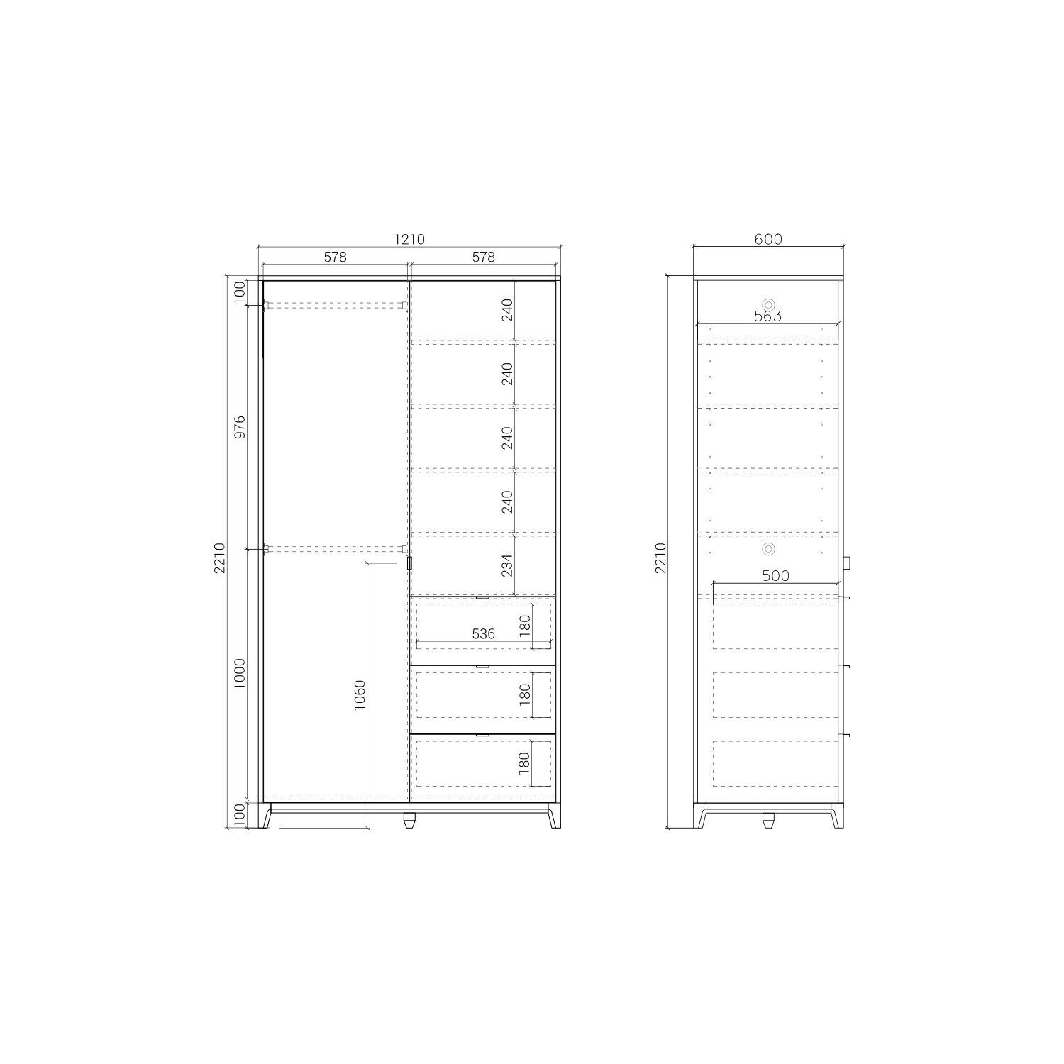 Шкаф CASE позволяет комфортно разложить личные вещи на полках и в ящиках, а также повесить их на вешалку. Конструкция шкафа предусматривает одну секцию со штангой, одну секцию с полками, которые скрыты за фасадом и три вместительных ящика. При необходимости вы можете регулировать высоту полок. Выбирайте оттенок эмали, материал корпуса, тонировку основания и ножек, а также узор гравировки. Кроме того, вы можете заказать шкаф, который будет полностью покрыт натуральным шпоном дуба.