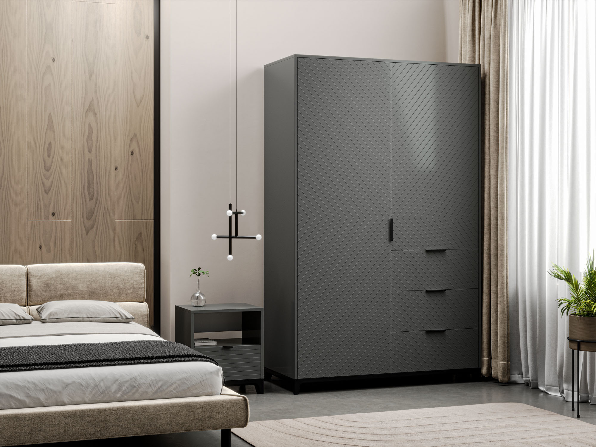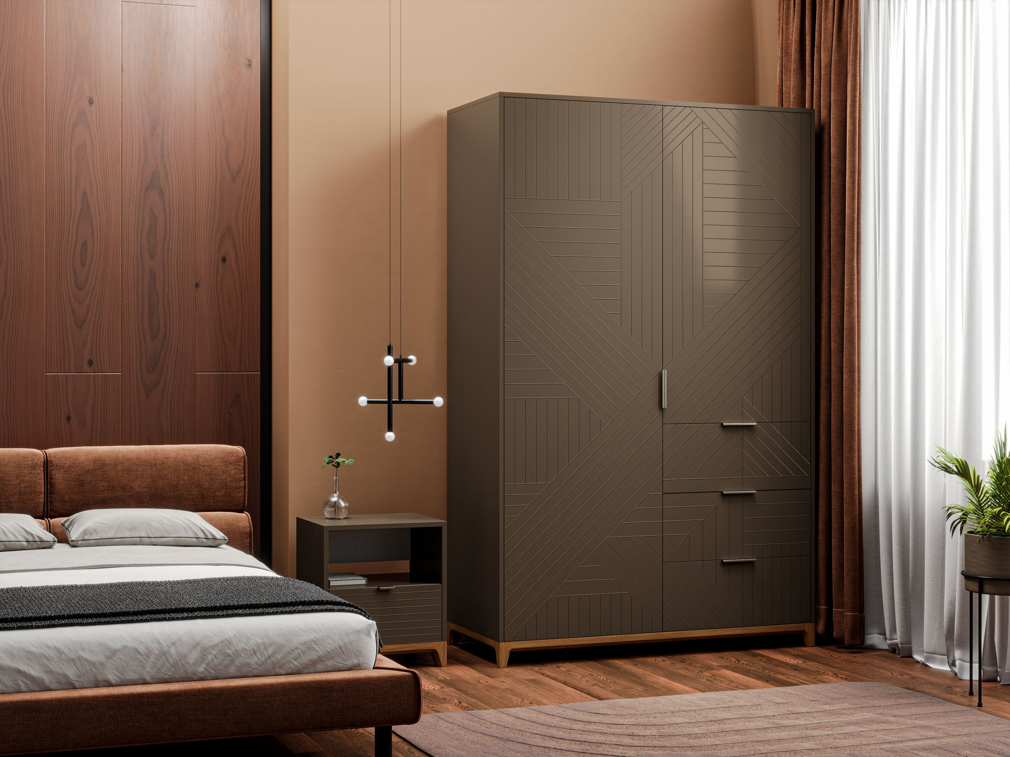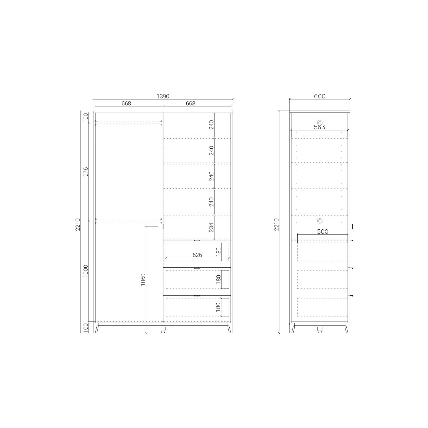 Шкаф CASE позволяет комфортно разложить личные вещи на полках и в ящиках, а также повесить их на вешалку. Конструкция шкафа предусматривает одну секцию со штангой, одну секцию с полками, которые скрыты за фасадом и три вместительных ящика. При необходимости вы можете регулировать высоту полок. Выбирайте оттенок эмали, материал корпуса, тонировку основания и ножек, а также узор гравировки. Кроме того, вы можете заказать шкаф, который будет полностью покрыт натуральным шпоном дуба.