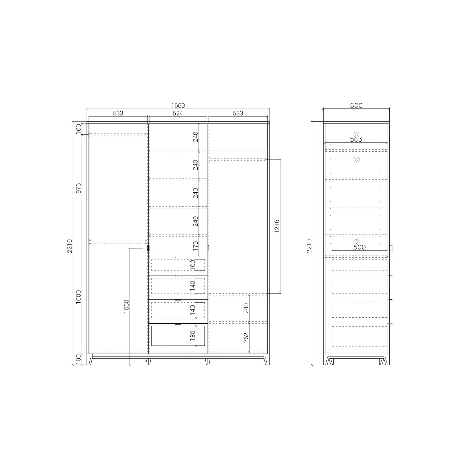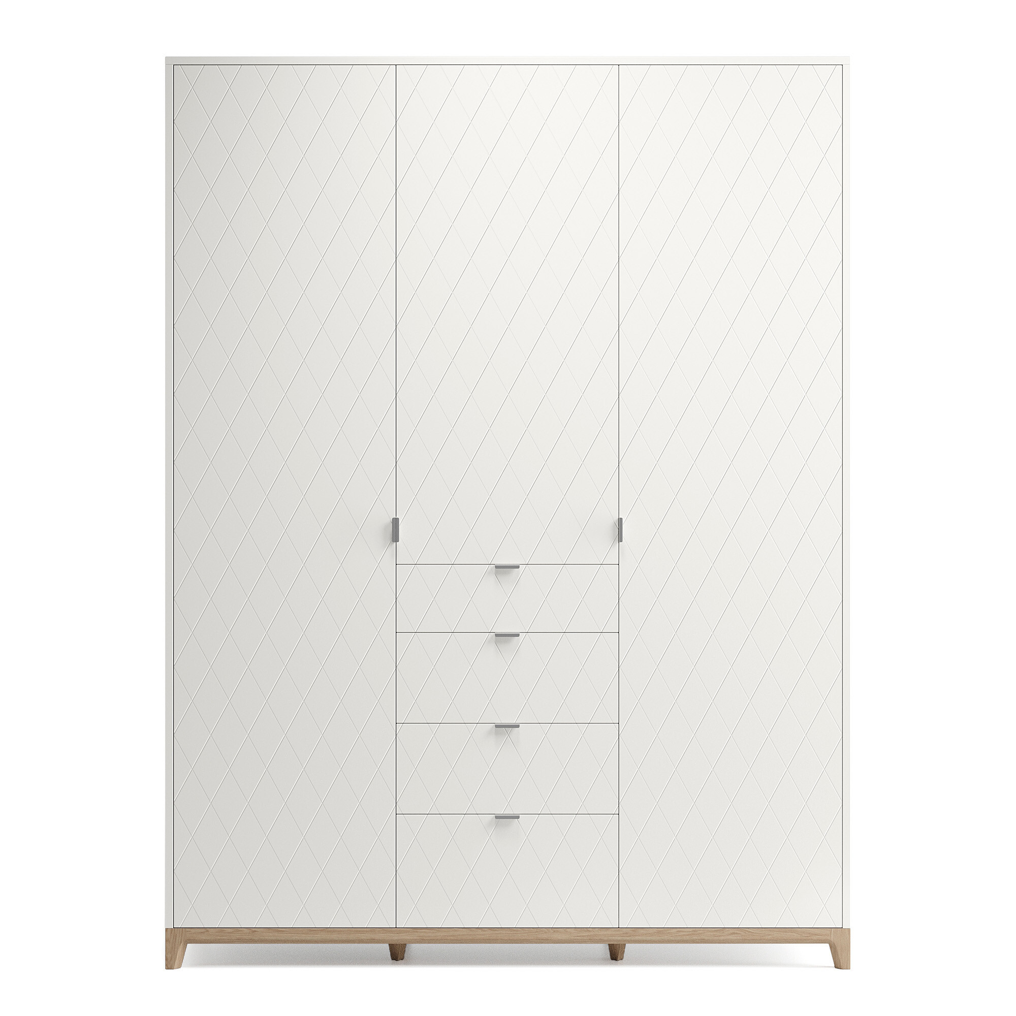 Один из самых вместительных шкафов в коллекции CASE. Конструкция шкафа предусматривает две секции со штангами и полками, а также одну секцию по середине, которая состоит из полок, скрытых за фасадом, и ящиков. Выбирайте оттенок эмали, материал корпуса, тонировку основания и ножек, а также узор гравировки. Кроме того, вы можете заказать шкаф, который будет полностью покрыт натуральным шпоном дуба.