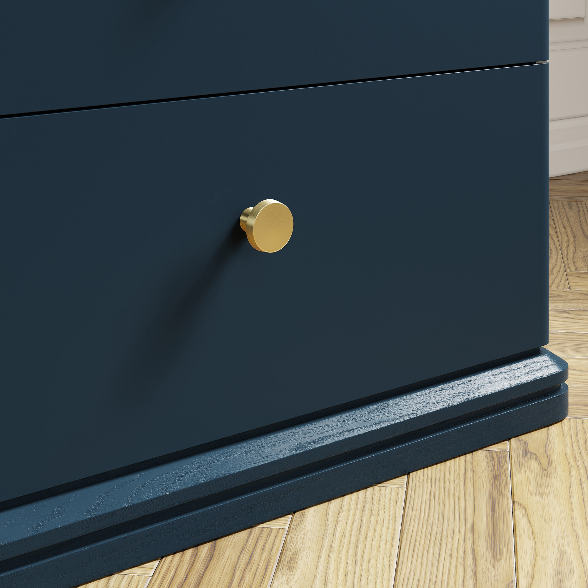 Эксклюзивные детали: массивные ручки-кнопки в четырех исполнениях и многогранное основание из массива дуба, обработанное вручную.