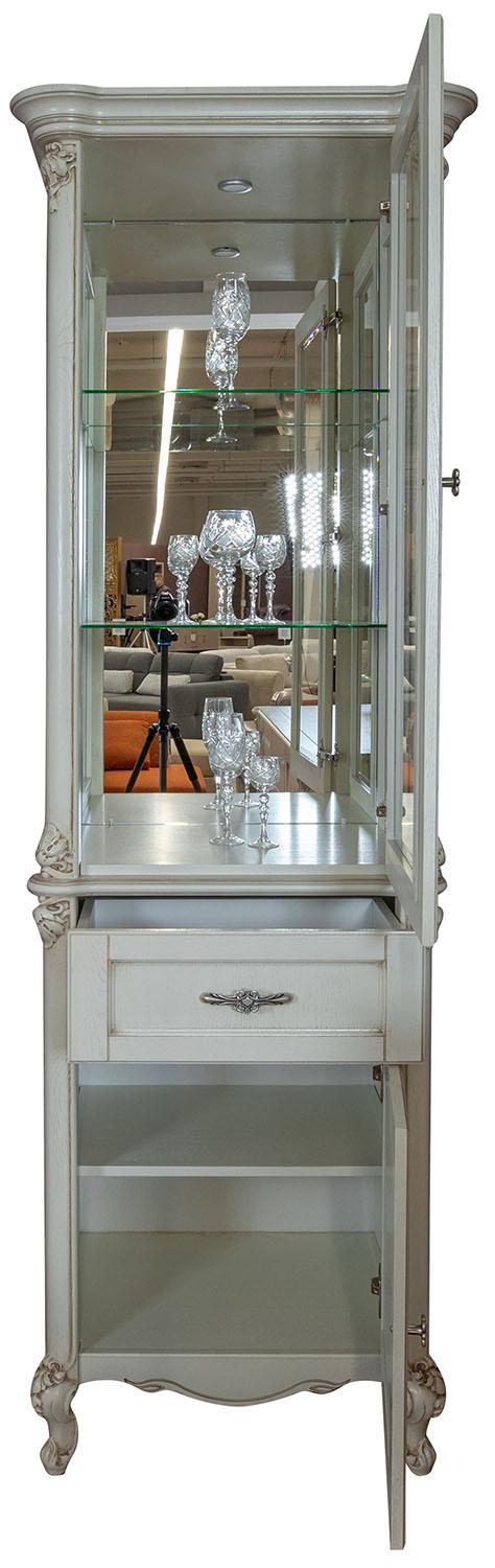 со стеклом; с полками; с выдвижным ящиком
