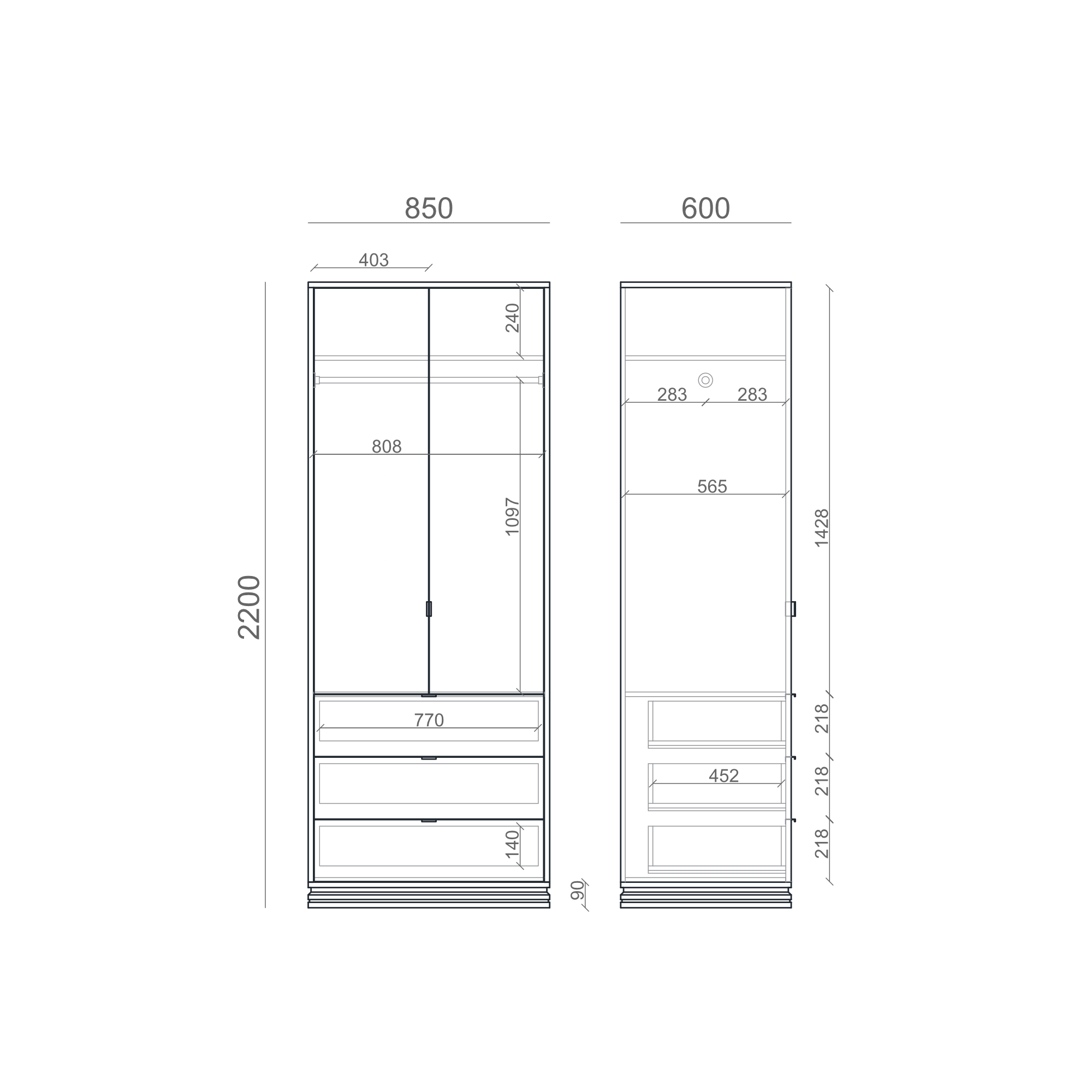 • Универсальное наполнение: секция со штангой для плечиков и три ящика для аксессуаров