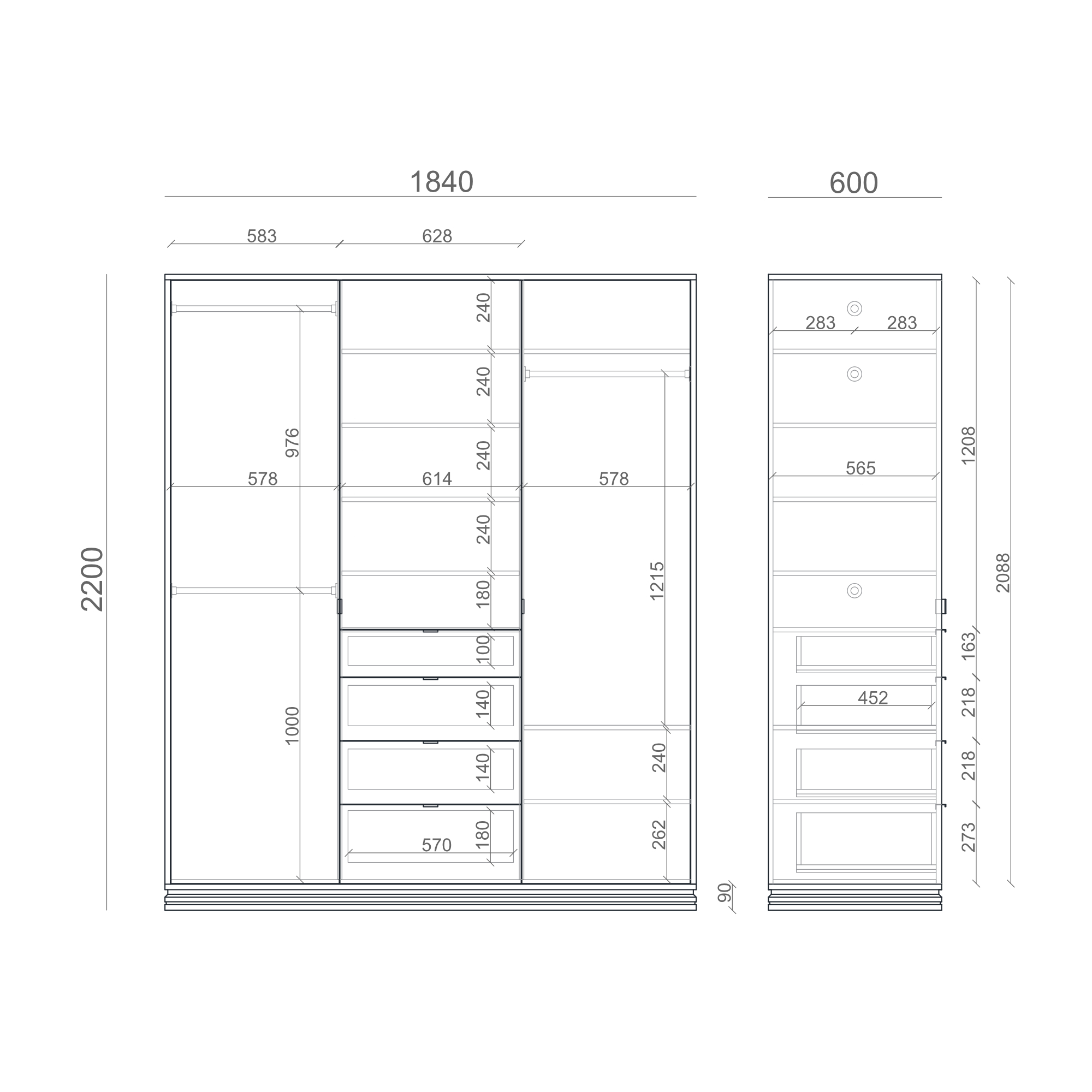 Элегантность, функциональность и художественная выразительность гармонично сочетаются в этой модели. Авторские принты на фасадах превращают шкаф в арт-объект, сохраняя лаконичную элегантность TIMELESS. Трехсекционная конструкция предлагает комплексный подход к хранению, обеспечивая идеальный порядок в вашем гардеробе.