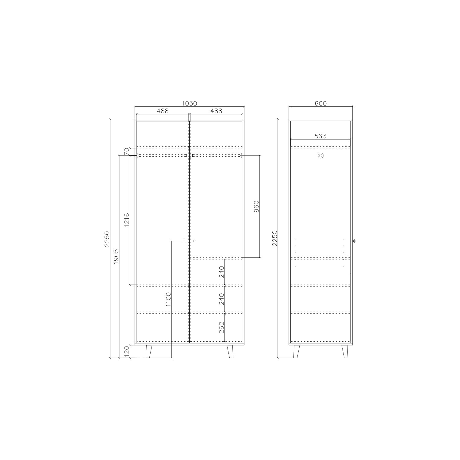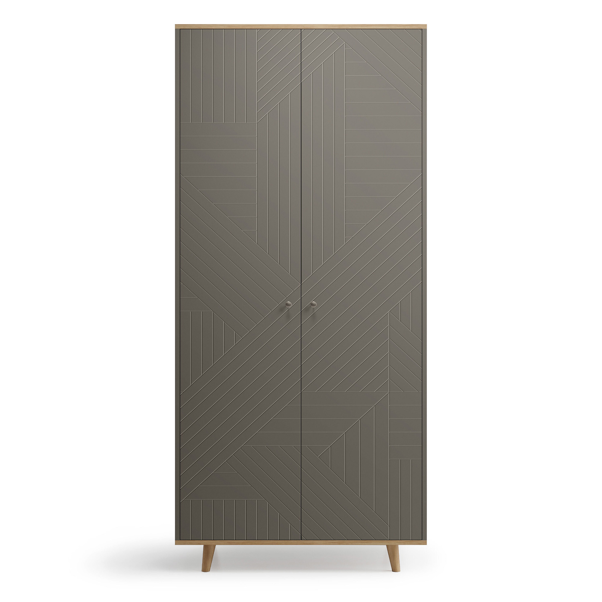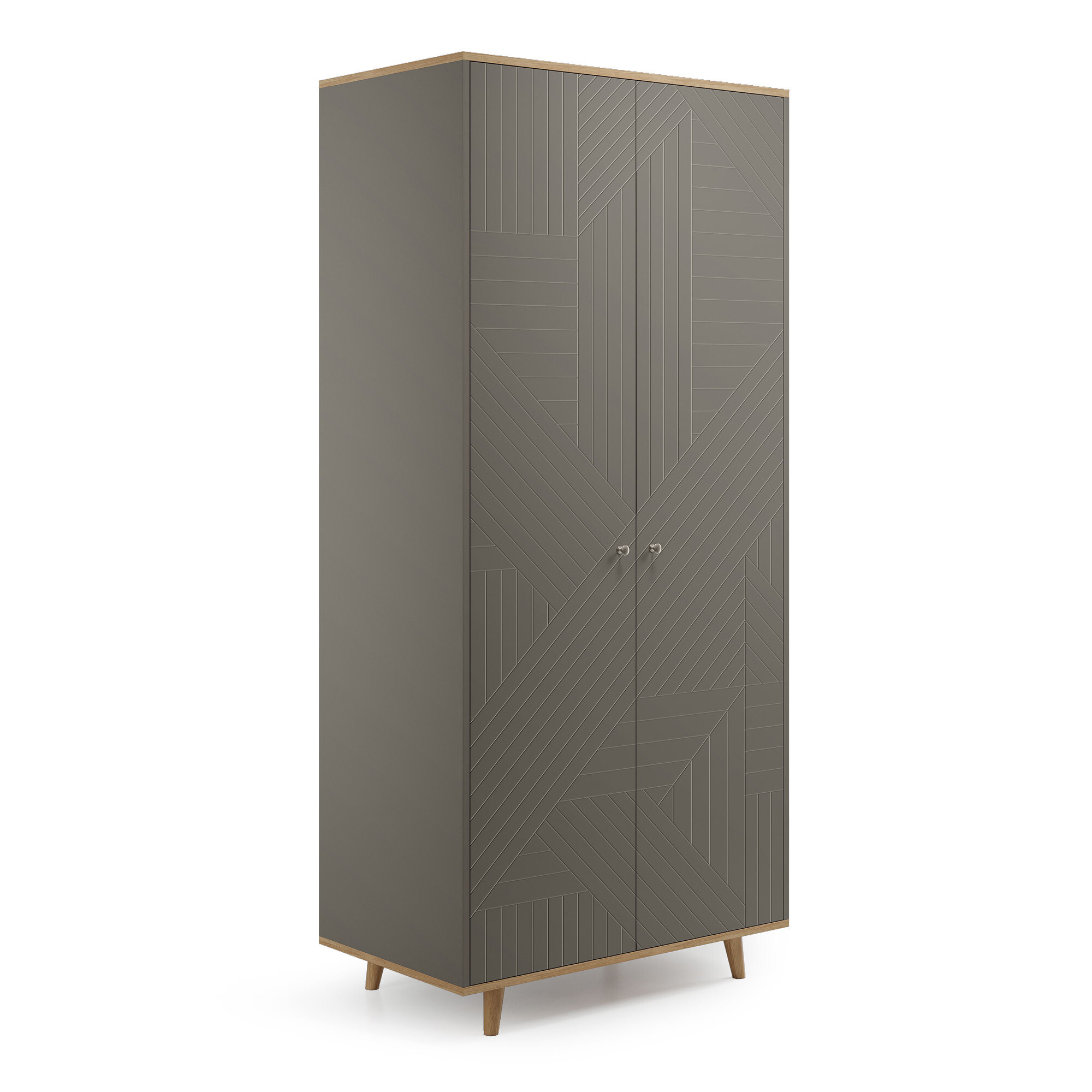Компактный и универсальный шкаф для небольших помещений является удачным решением для размещения вашего гардероба. Данная модель шкафа подойдет для детской комнаты, узкой прихожей или маленькой спальни. Конструкция шкафа предусматривает две секции со штангами и полками. При необходимости вы можете переставлять полки по высоте. Узор гравировки на фасадах изделия выгодно подчёркивает его лаконичный дизайн.