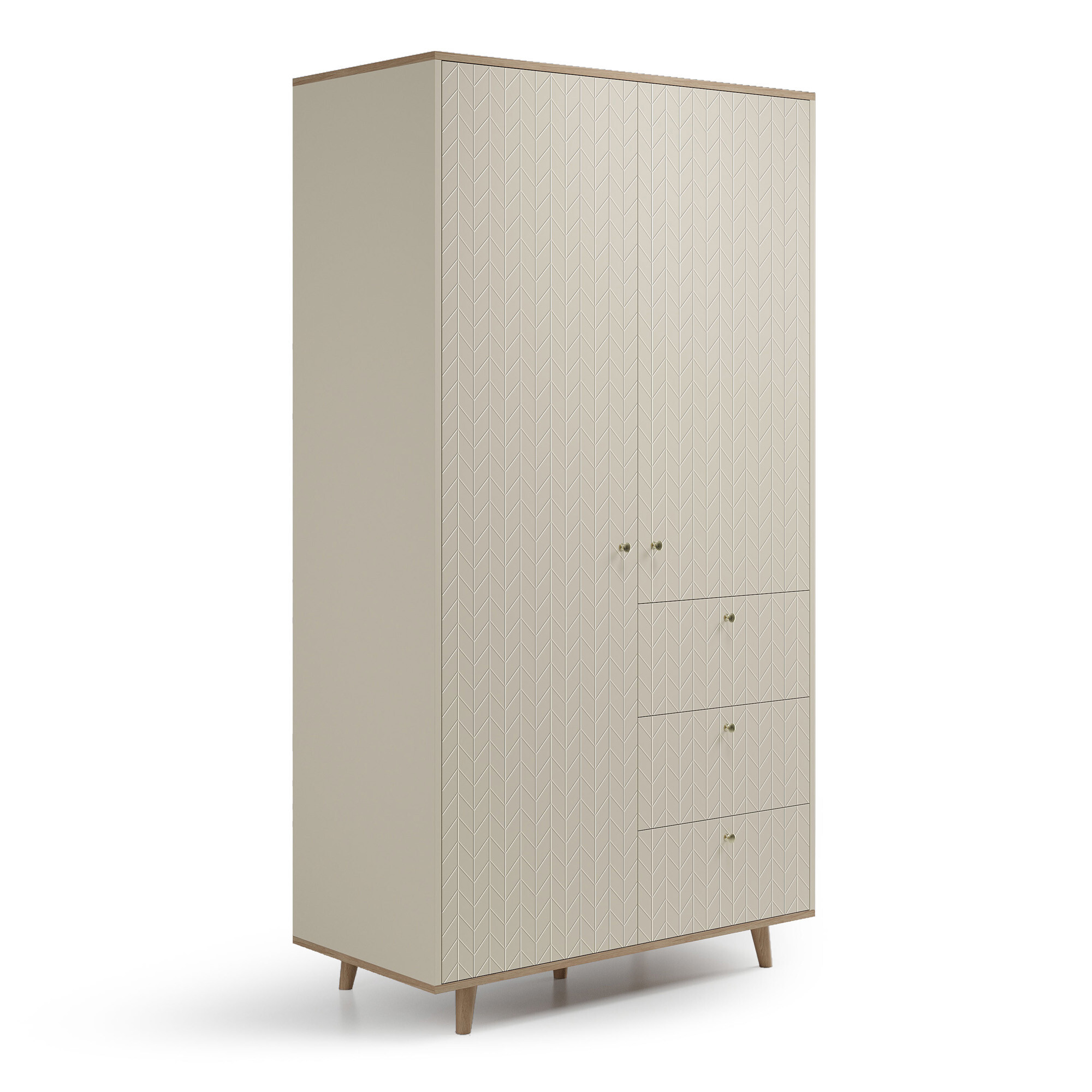 Вместительный и основательный шкаф TW216 с продуманной системой хранения и современным дизайном в стиле mid-century. Две просторные секции со штангами и полками, а также три вместительных ящика позволят организовать комфортное хранение вещей. Благодаря универсальному дизайну и натуральным материалам — массиву дуба и шпону — шкаф станет элегантным дополнением любого интерьера.