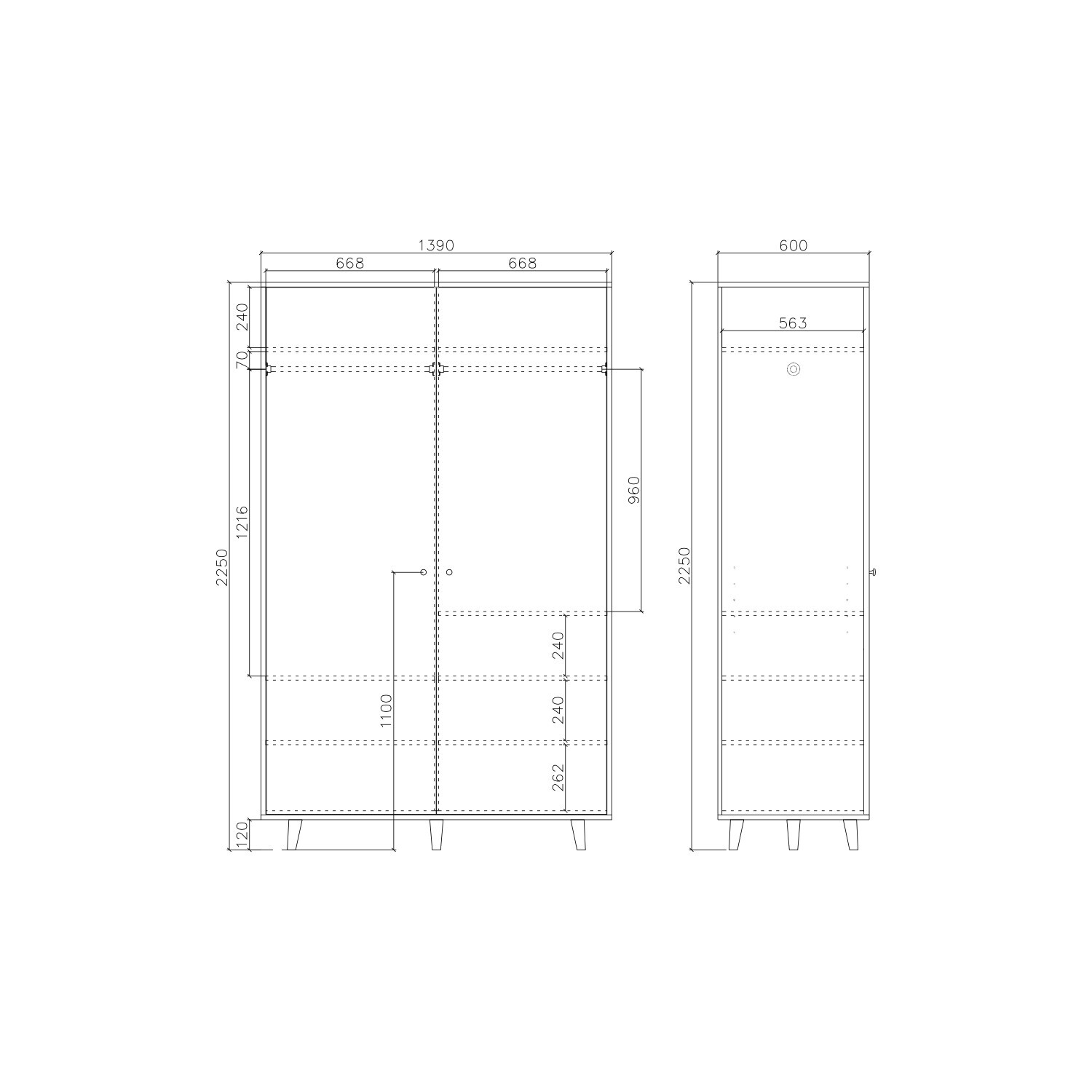 Вместительный и основательный шкаф TW220 с продуманной системой хранения и современным дизайном в стиле mid-century. Модель разделена на две функциональные секции: каждая оборудована штангой для плечиков и регулируемыми полками, позволяя идеально организовать хранение одежды, обуви и аксессуаров. Благодаря универсальному дизайну и натуральным материалам — массиву дуба и шпону — шкаф станет элегантным дополнением любого интерьера.