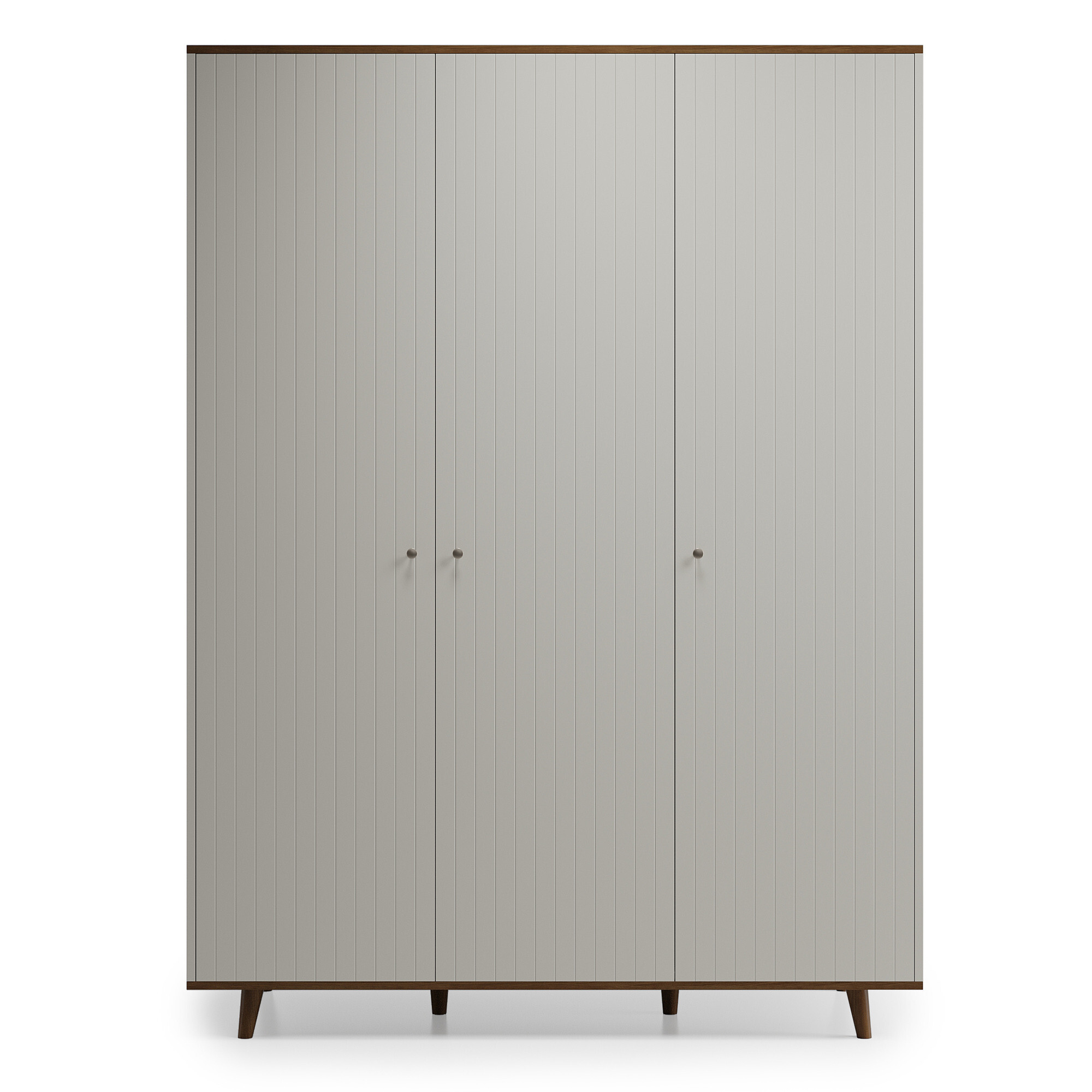 Один из самых вместительных шкафов в коллекции. Продуманная система хранения и современным дизайн в стиле mid-century. Модель разделена на три функциональные секции: каждая оборудована штангой для плечиков и регулируемыми полками, позволяя идеально организовать хранение одежды, обуви и аксессуаров. Благодаря универсальному дизайну и натуральным материалам — массиву дуба и шпону — шкаф станет элегантным дополнением любого интерьера.