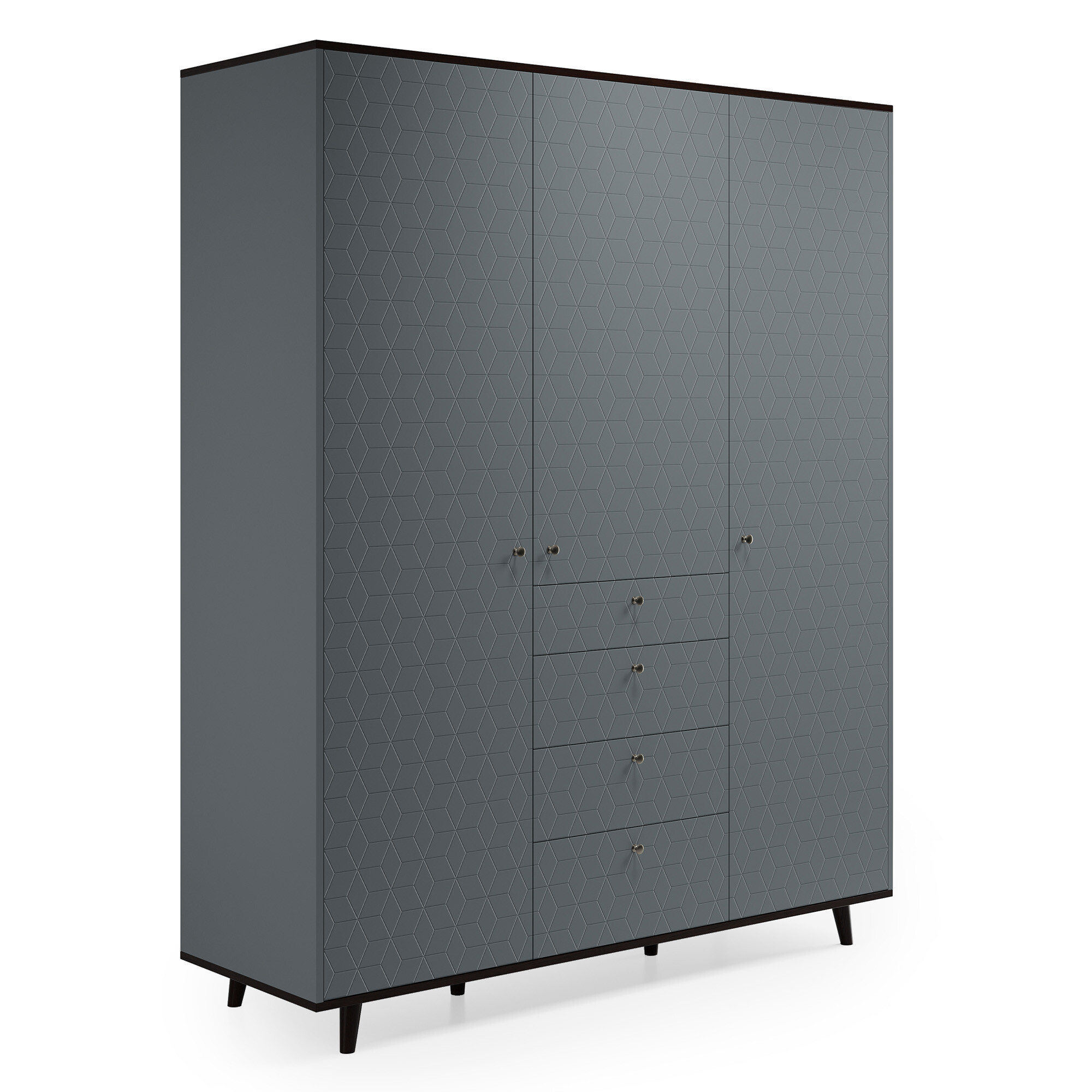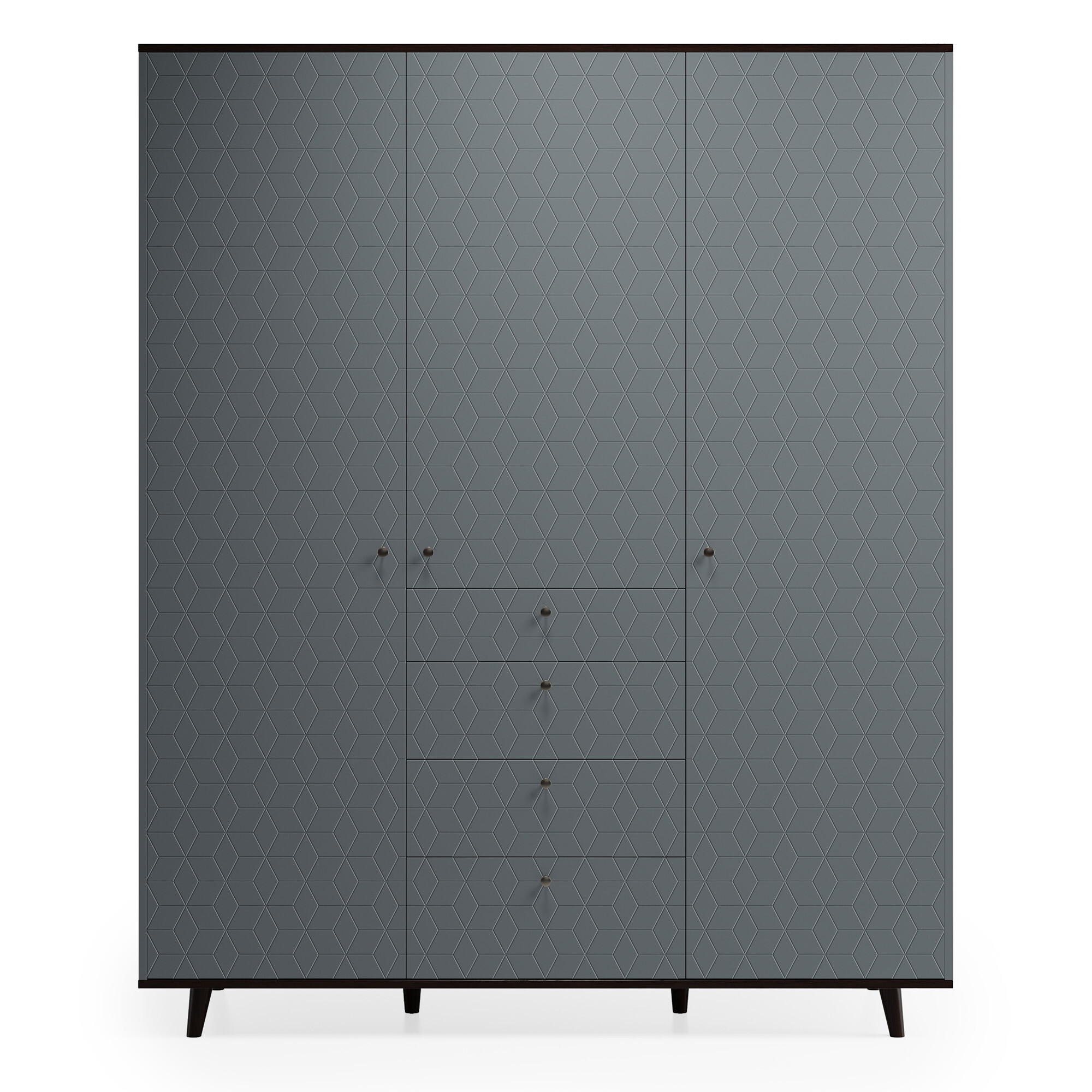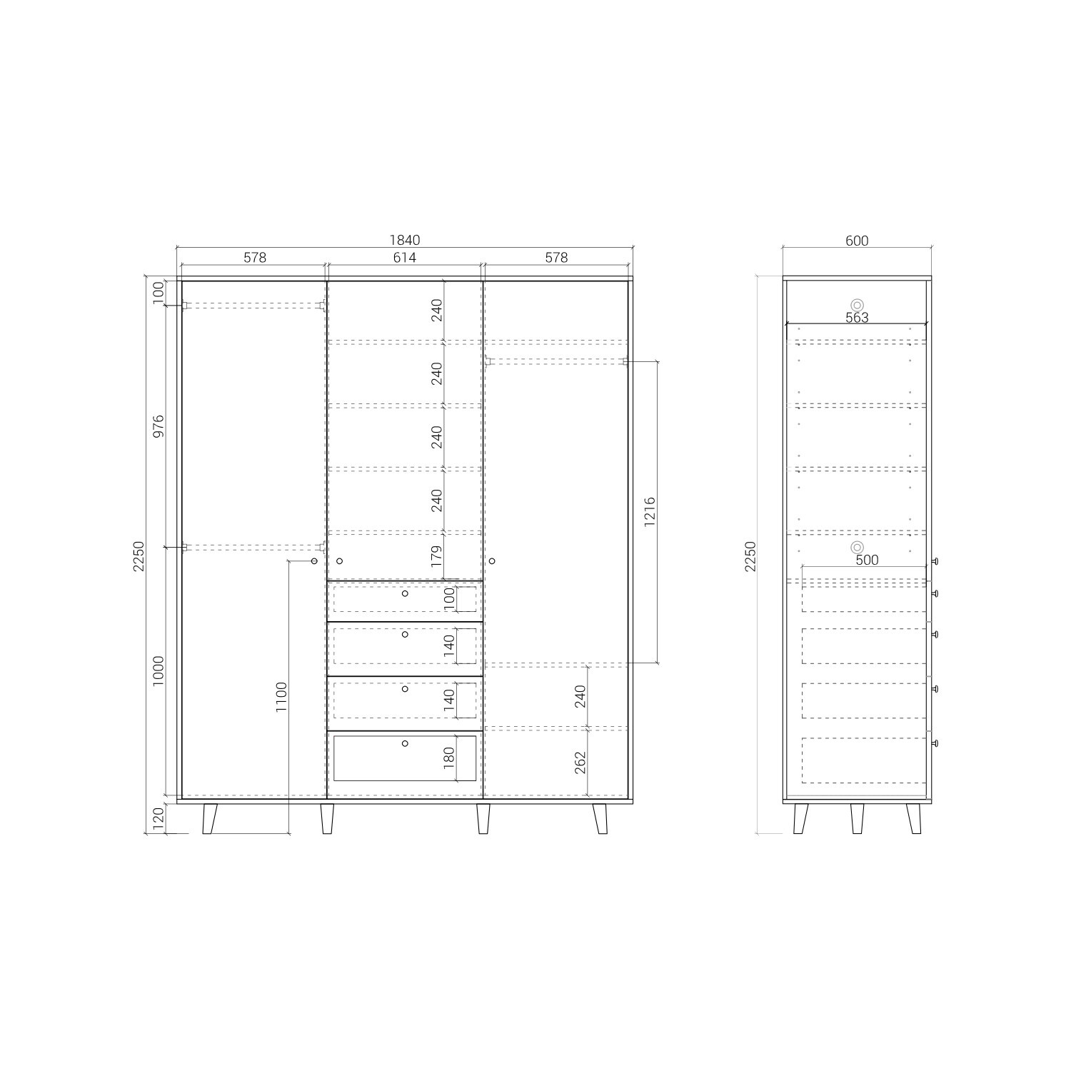 Один из самых вместительных шкафов в коллекции. Продуманная система хранения и современным дизайн в стиле mid-century. Модель разделена на три функциональные просторные секции со штангами и полками, а также четыре вместительных ящика позволят организовать комфортное хранение вещей. Благодаря универсальному дизайну и натуральным материалам — массиву дуба и шпону — шкаф станет элегантным дополнением любого интерьера.