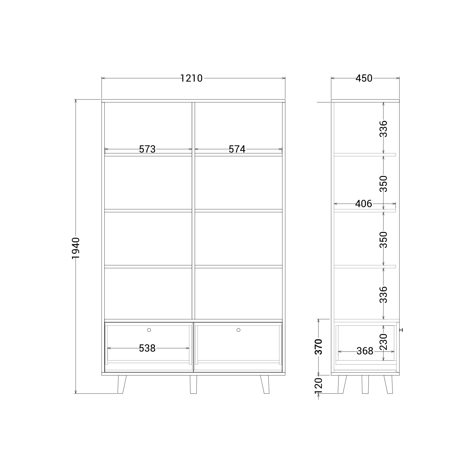 Классический стеллаж — удобное, практичное, стильное решение для тех, кто ценит качественный дизайн. Стеллажи из коллекции TWIN выделяются изящными ножками и лаконичностью исполнения. Акцент на функциональности: стеллаж имеет восемь открытых полок в верхней секции и три ящика в нижней секции, которые скрыты за фасадами с гравировкой.