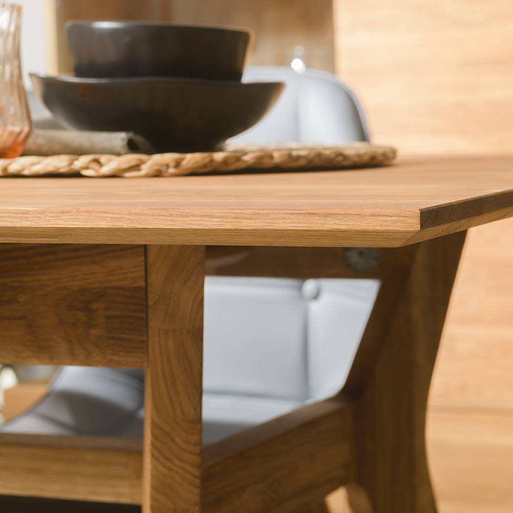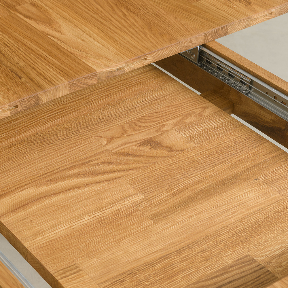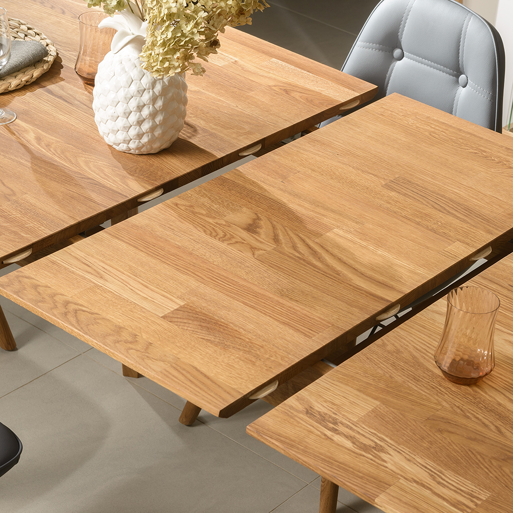 Основное достоинство этого стола - механизм раздвижения, позволяющий увеличить длину столешницы с 1700 мм до 2100 мм. Благодаря этому механизму, стол можно легко настроить под размер вашей компании, так что он идеально подойдет как для больших семей, так и для группы друзей или коллег.