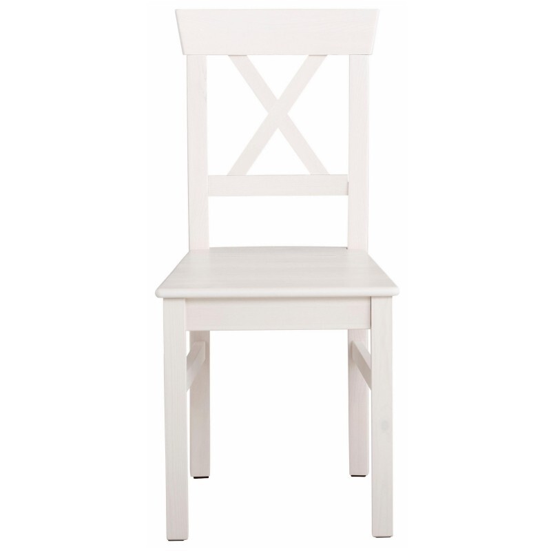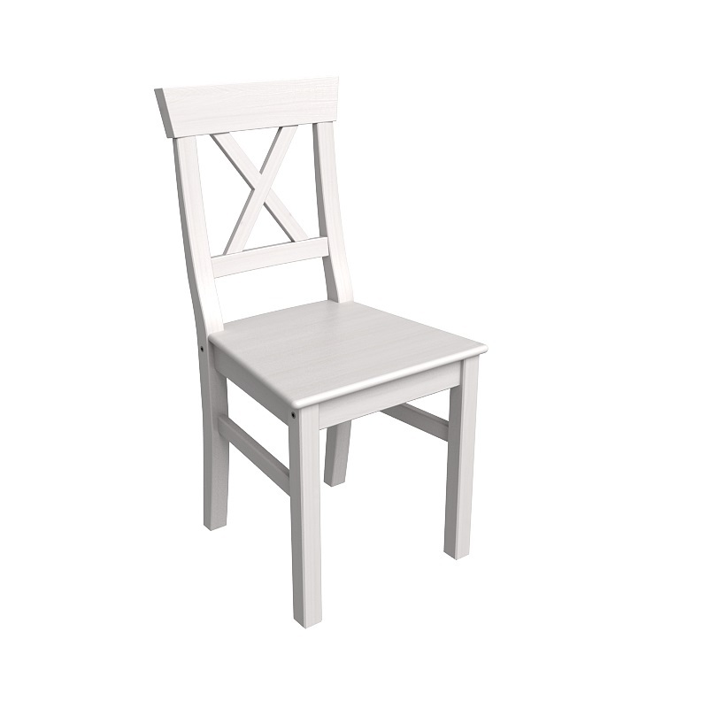 Высота сиденья 45 см. Покрытие - укрывистый белый воск, структура древесины почти не просматривается.