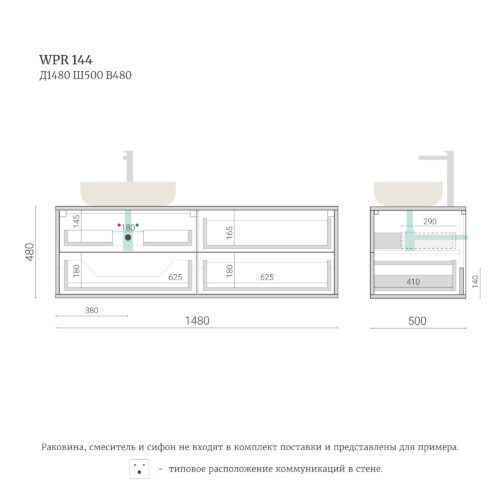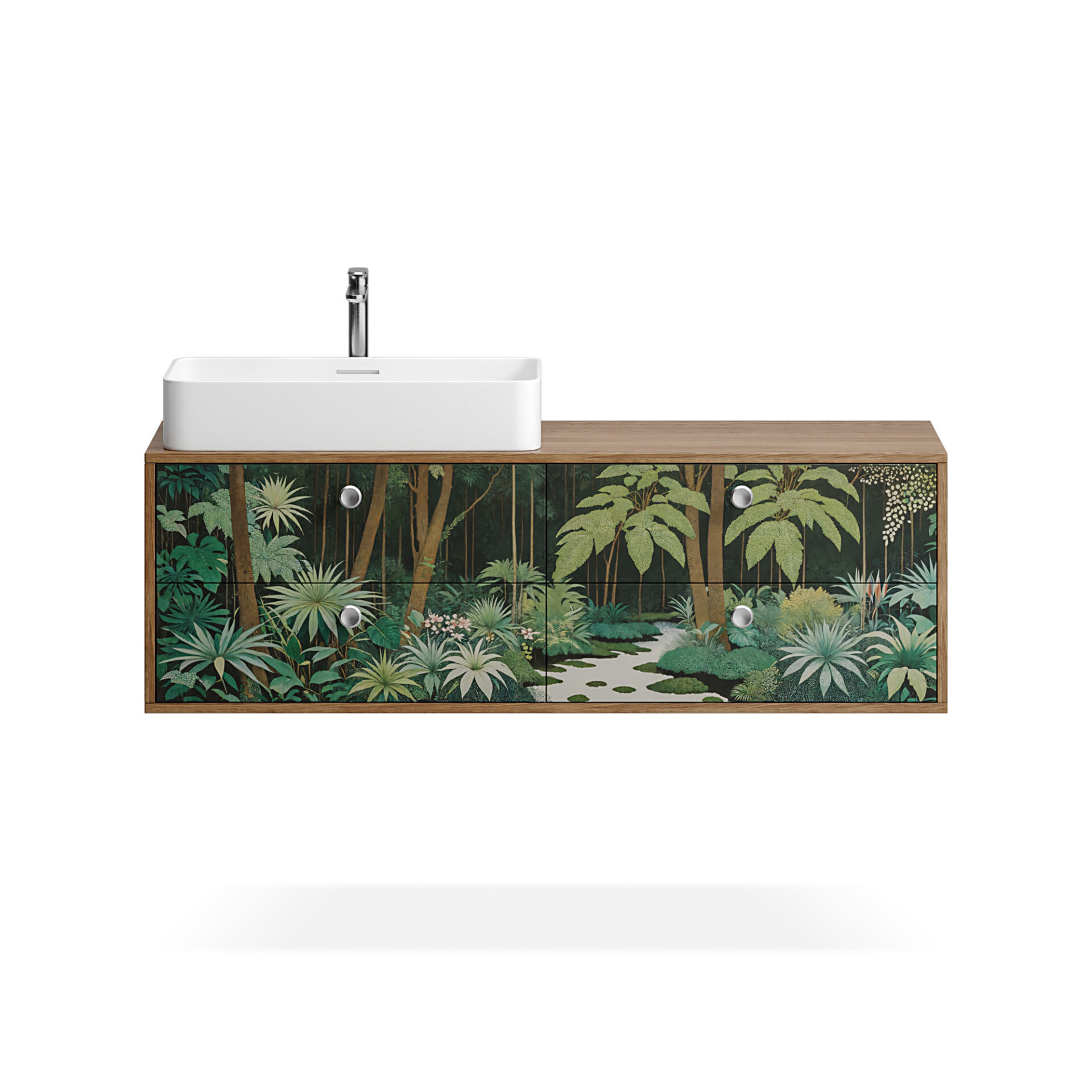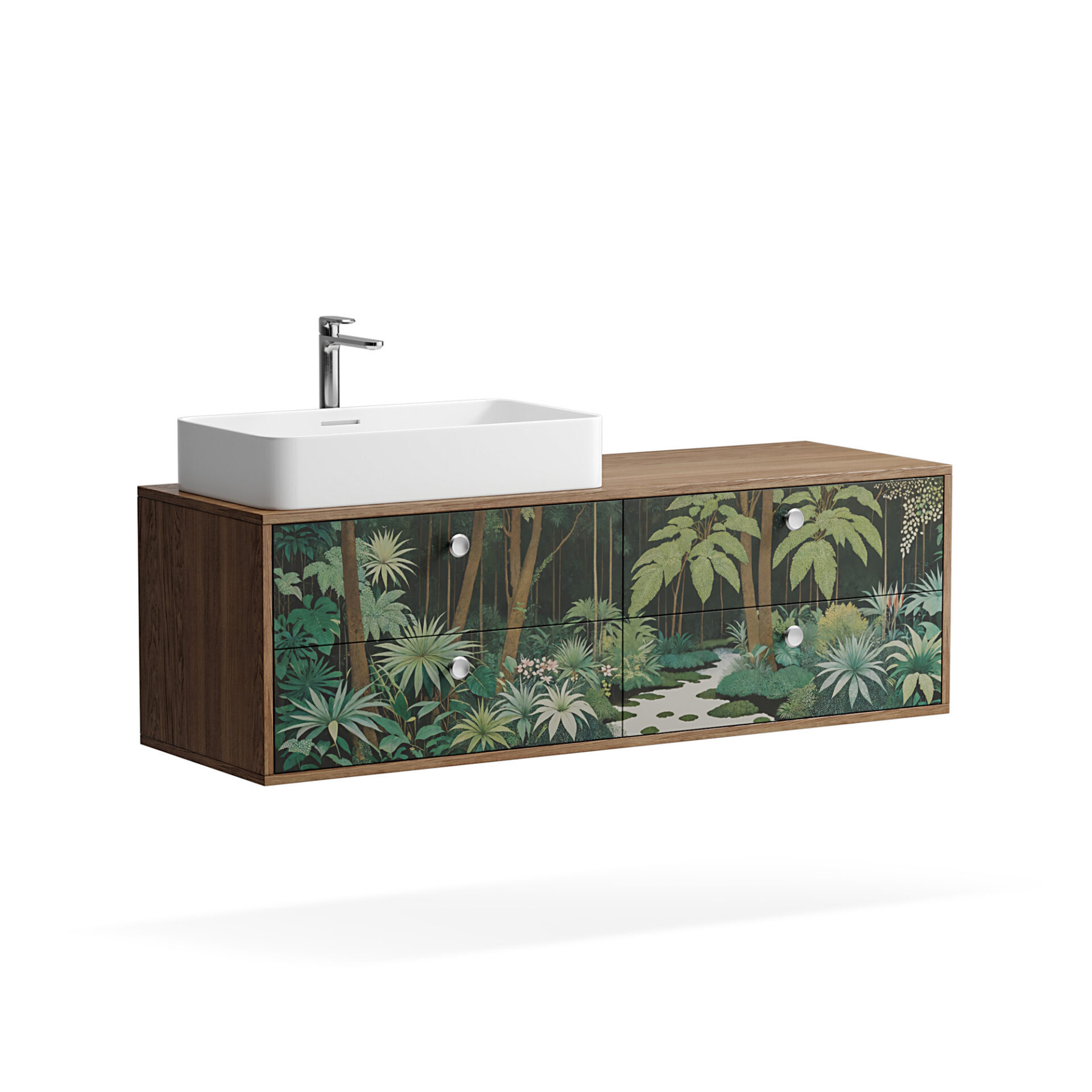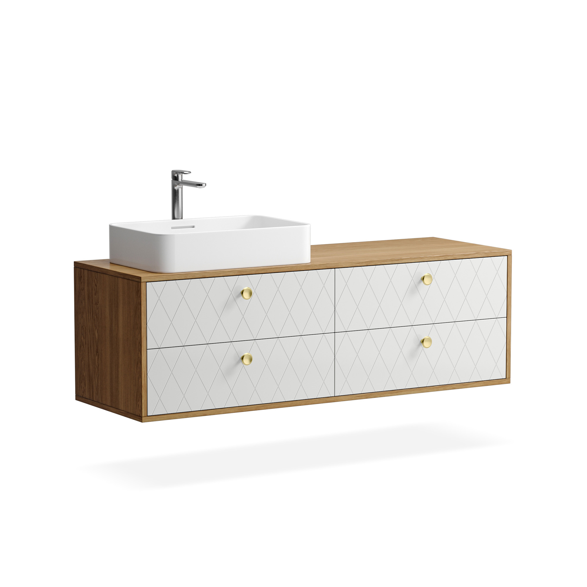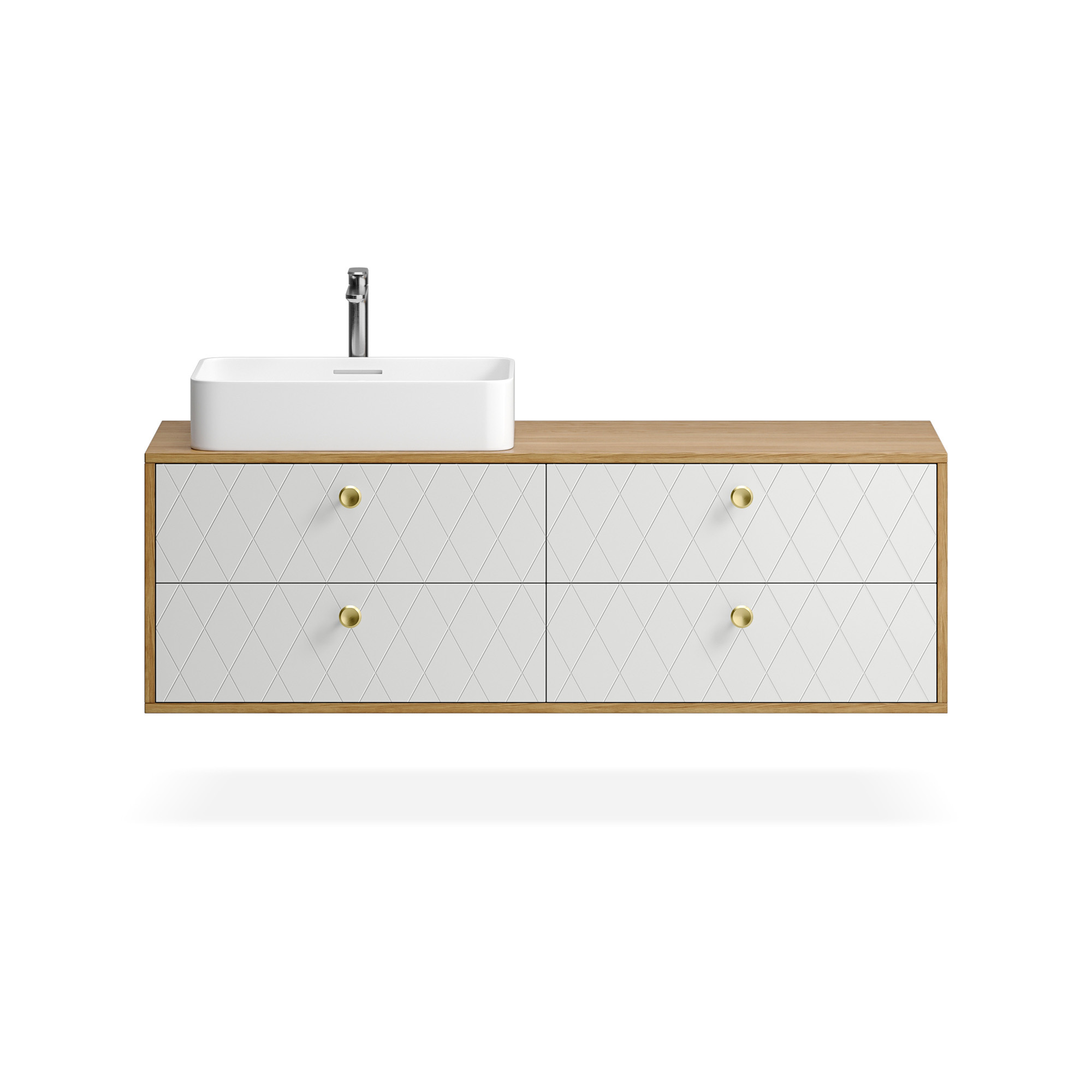 Компактные модели подвесных тумб с четырьмя выдвижными ящиками гармонично сочетаются с линейкой накладных раковин большинства производителей.