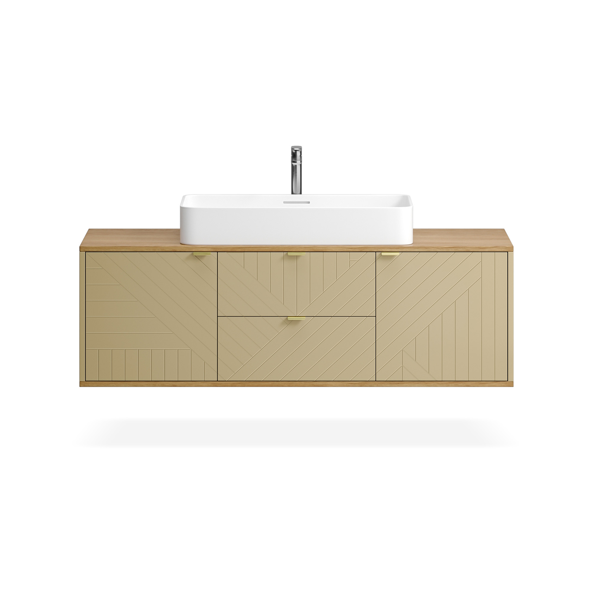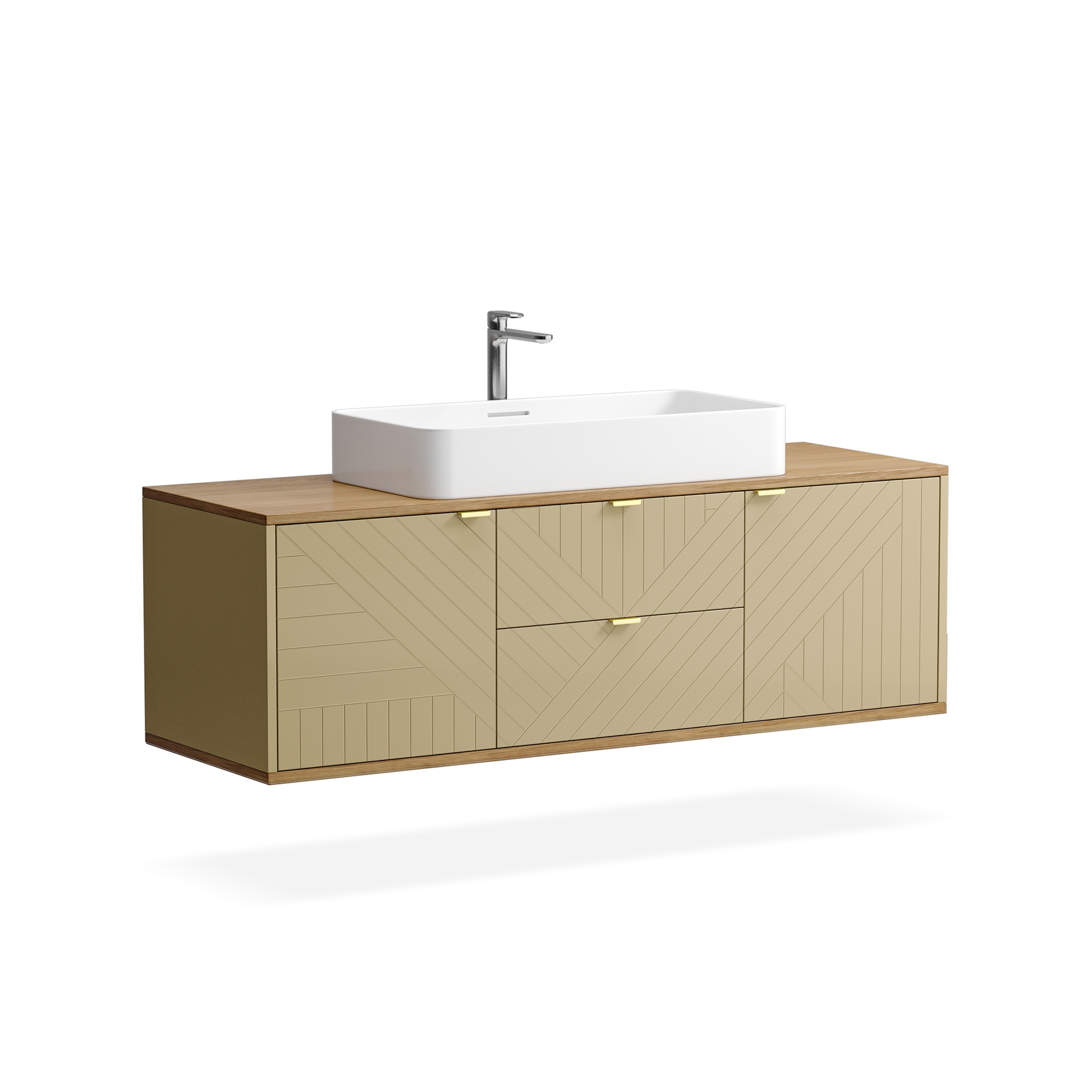 Компактные модели подвесных тумб из трёх секций с выдвижными ящиками и полками гармонично сочетаются с линейкой накладных раковин большинства производителей.