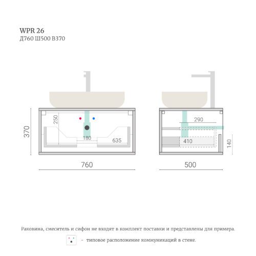 Выполнена из влагостойкого МДФ, все поверхности дополнительно защищены от попадания влаги.
