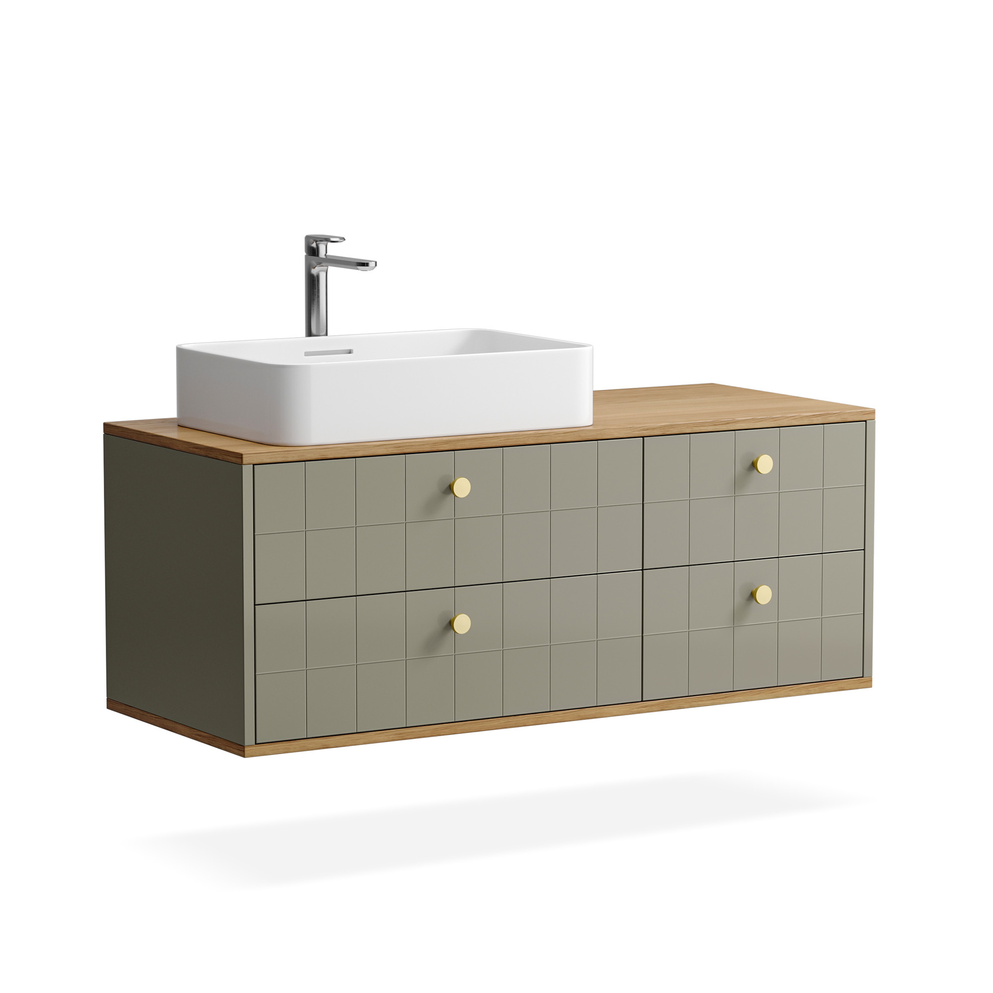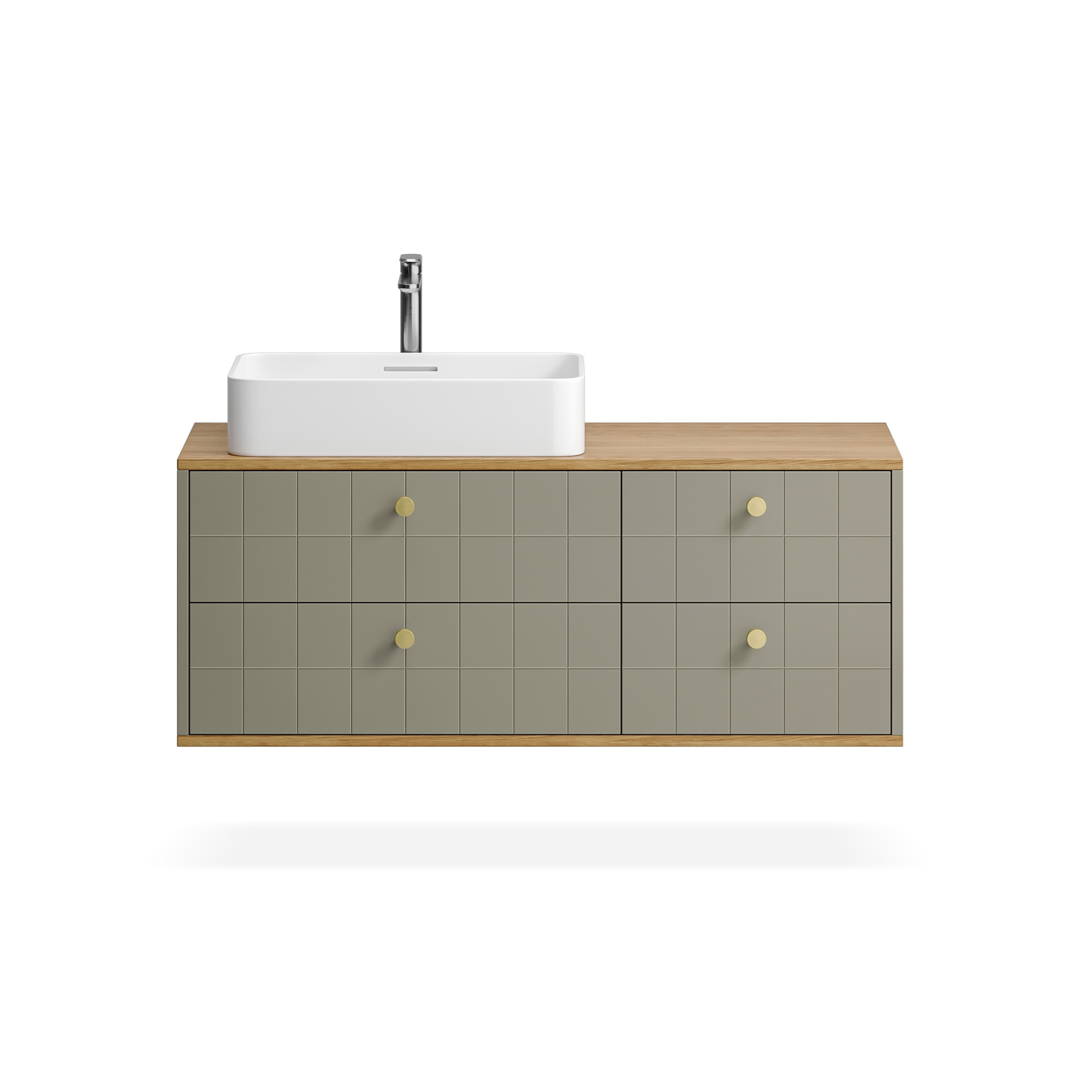 Компактные модели подвесных тумб с четырьмя выдвижными ящиками гармонично сочетаются с линейкой накладных раковин большинства производителей.