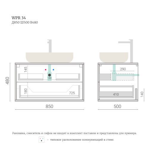 Выполнена из влагостойкого МДФ, все поверхности дополнительно защищены от попадания