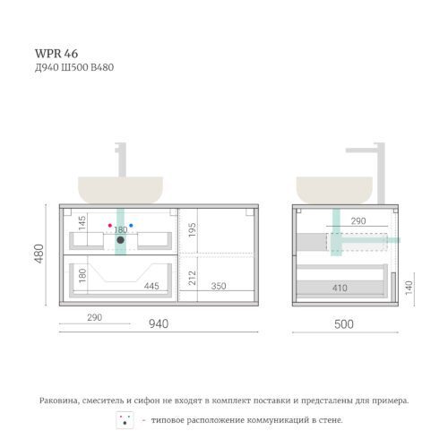 Выполнена из влагостойкого МДФ, все поверхности дополнительно защищены от попадания