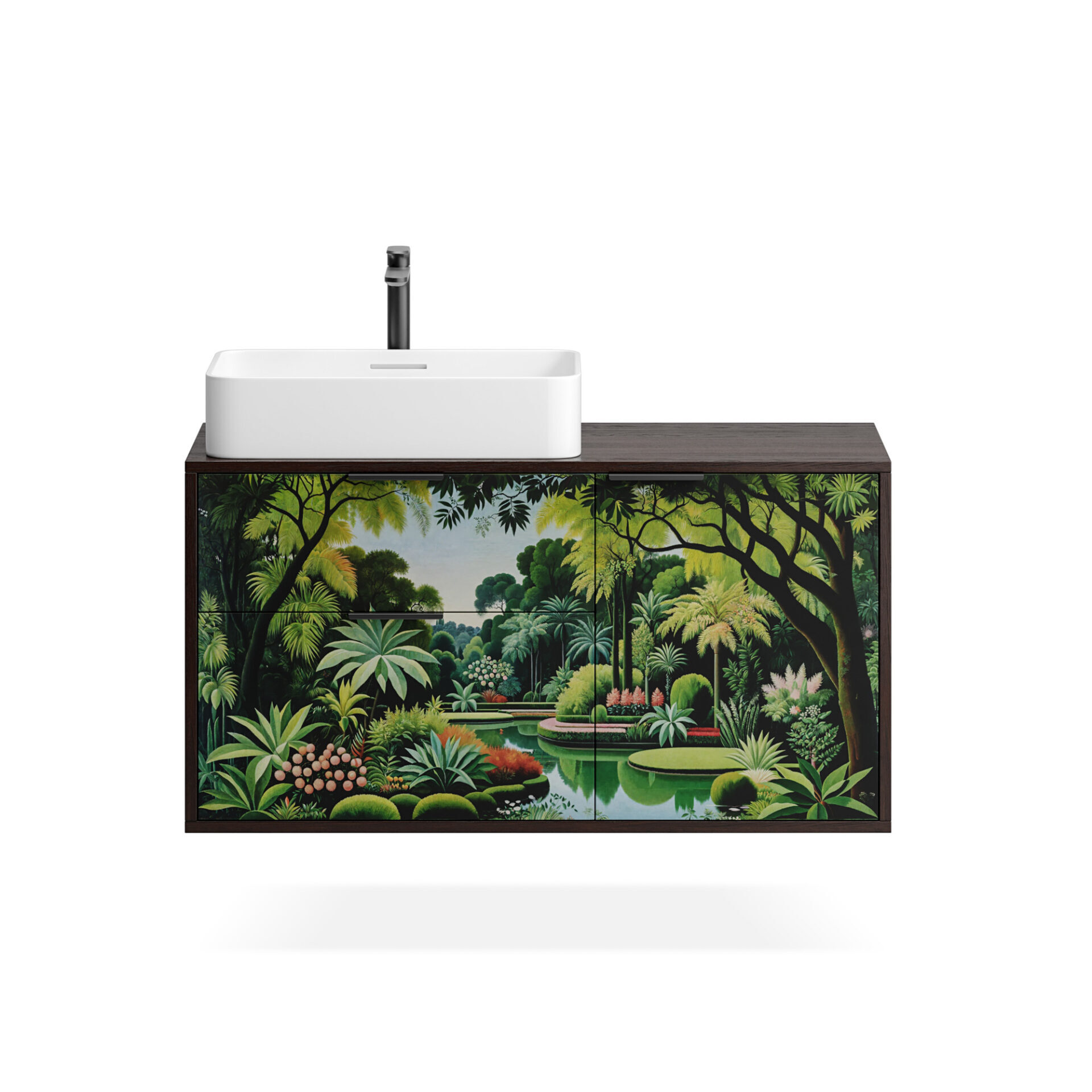 Компактные модели подвесных тумб с двумя выдвижными ящиками и секцией с полками гармонично сочетаются с линейкой накладных раковин большинства производителей.