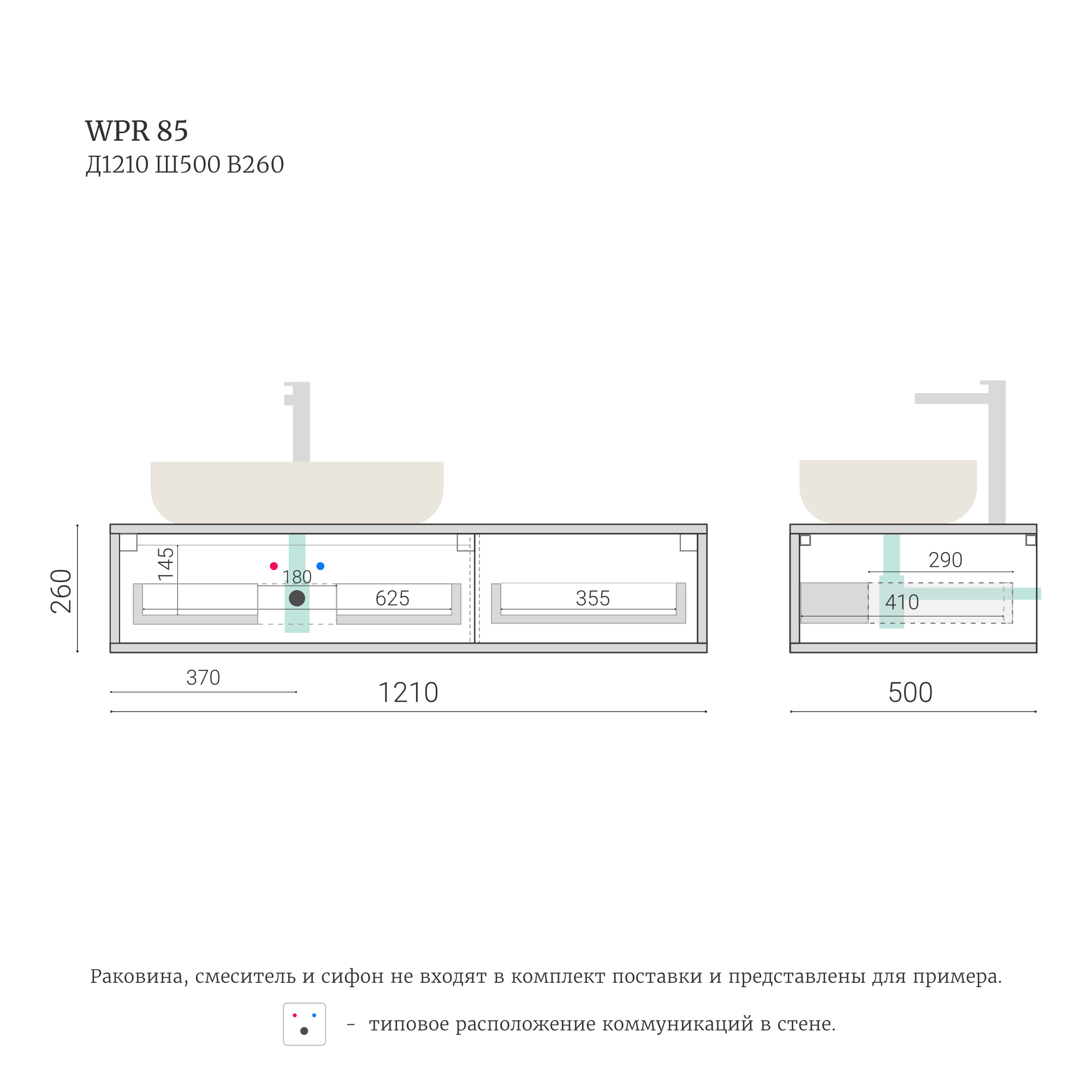 Компактные модели подвесных тумб с одним рядом выдвижных ящиков или ящиком и полкой гармонично сочетаются с линейкой накладных раковин большинства производителей.