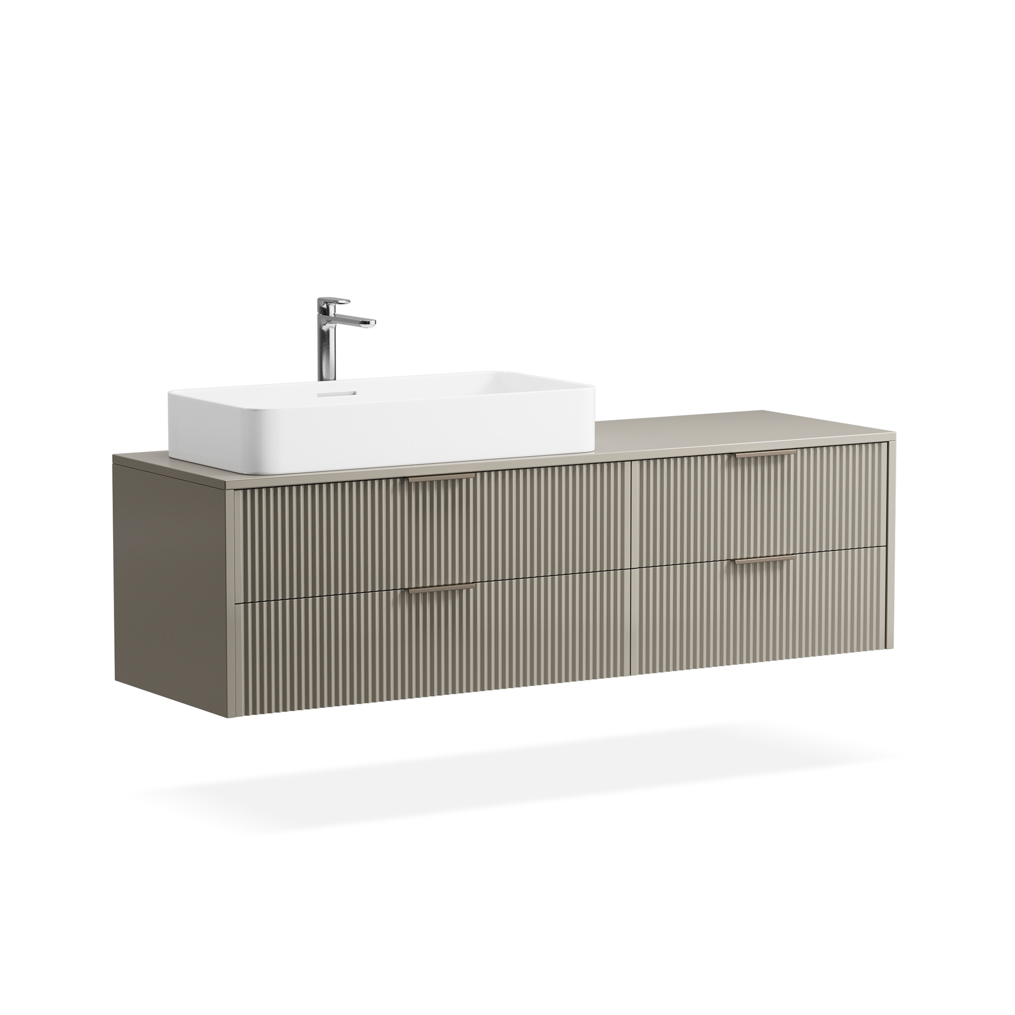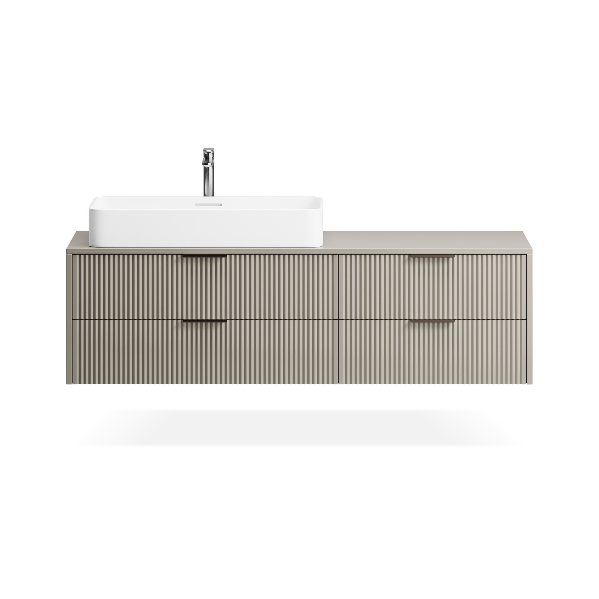 Компактные модели подвесных тумб с четырьмя выдвижными ящиками гармонично сочетаются с линейкой накладных раковин большинства производителей.