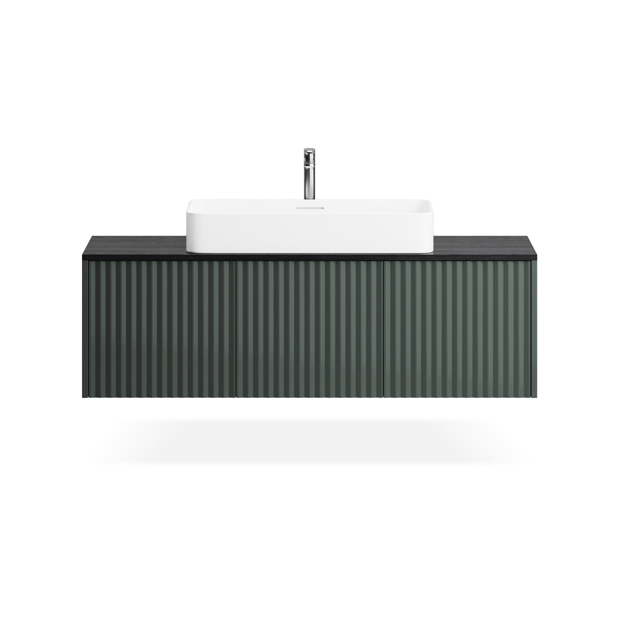 Компактные модели подвесных тумб из трёх секций с выдвижными ящиками и полками гармонично сочетаются с линейкой накладных раковин большинства производителей.