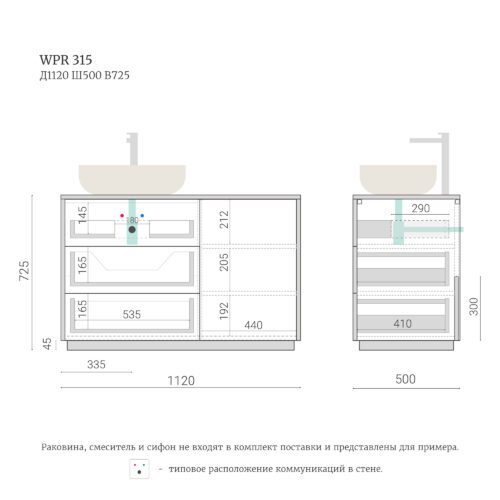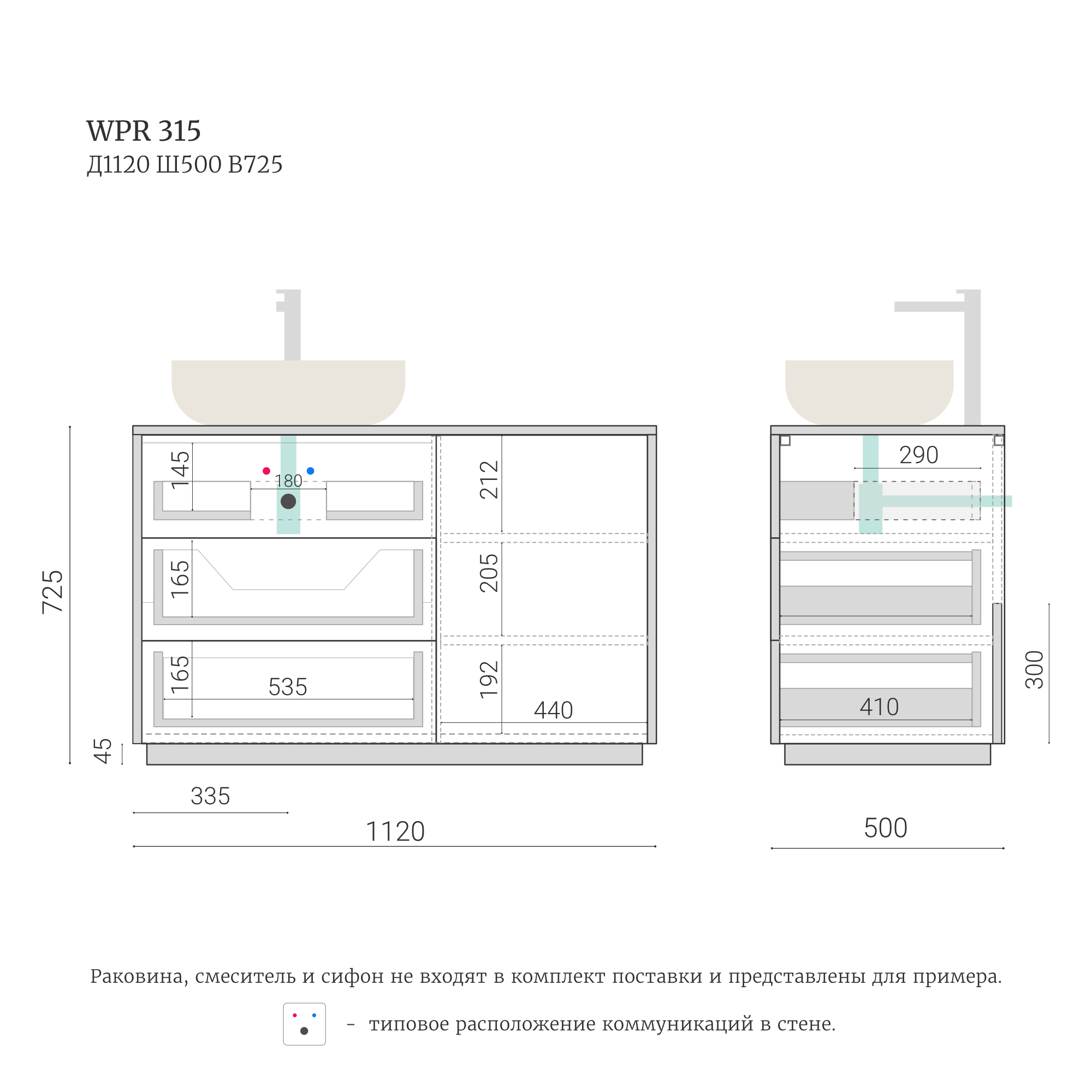 Выполнена из влагостойкого МДФ, все поверхности дополнительно защищены от попадания