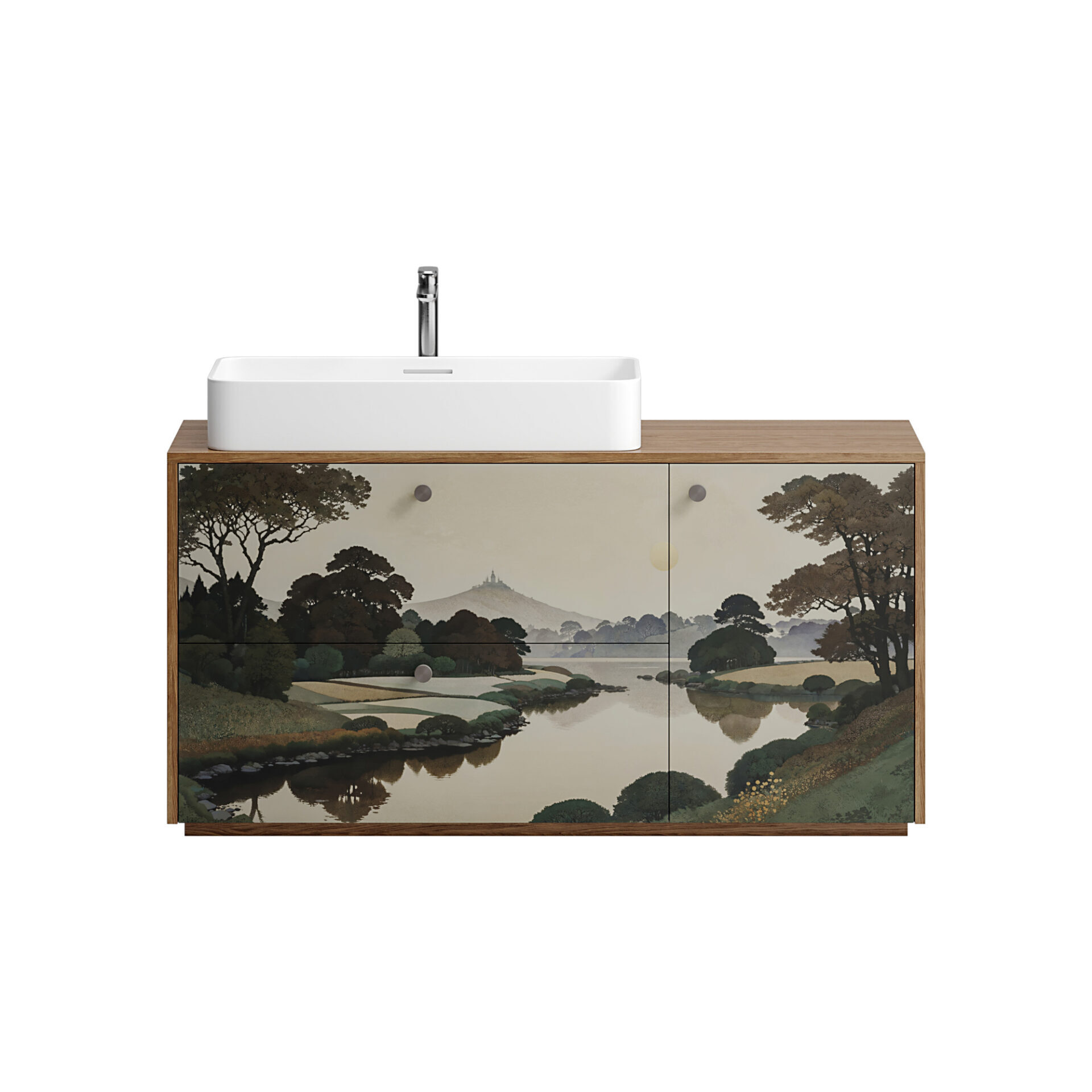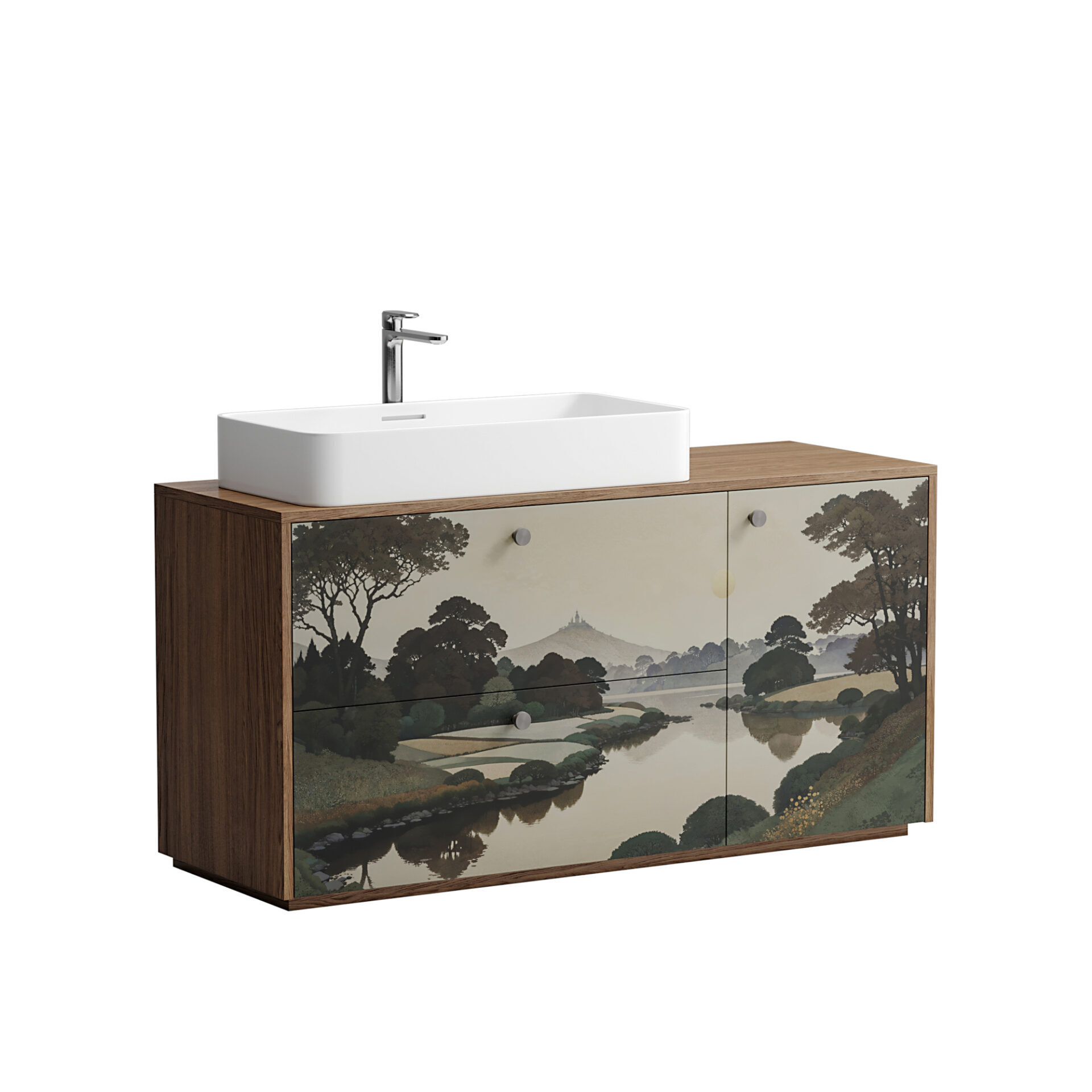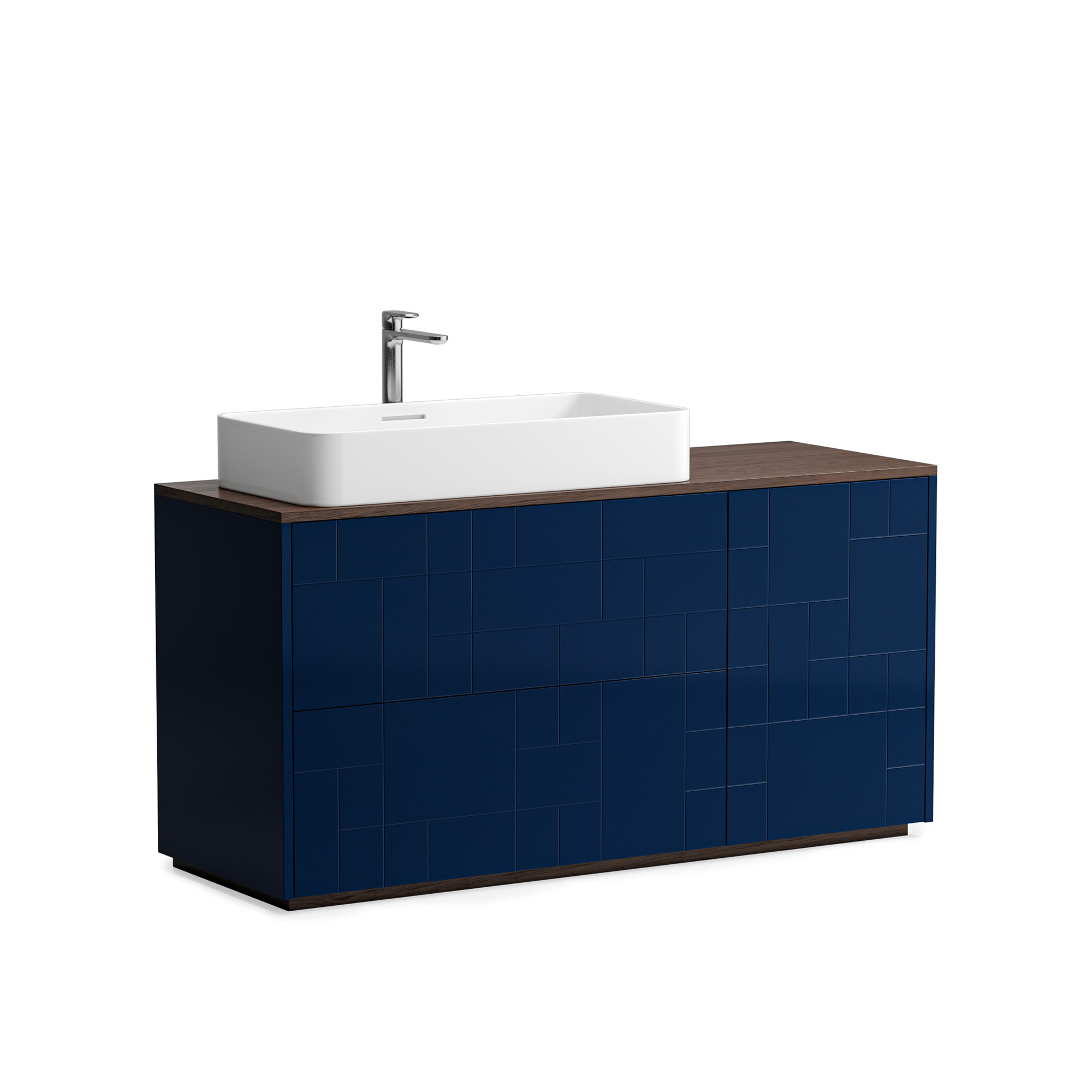 Напольные модели с двумя или тремя выдвижными ящиками и секциями с полками гармонично сочетаются с линейкой накладных раковин большинства производителей.