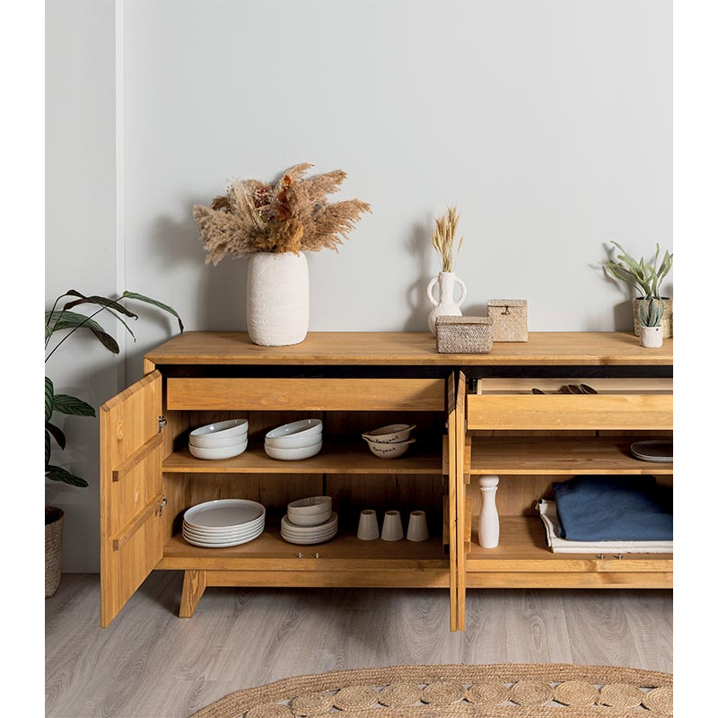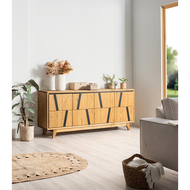 Коллекция мебели «Мэнсон» создает аутентичную атмосферу индустриального лофта. Модели из массива дерева, обработанные бейцем «антик» и натуральным маслом, демонстрируют живую текстуру древесины. Лаконичный образ завершают металлические элементы и минималистичные скрытые ручки, подчеркивающие строгий и современный характер коллекции.
