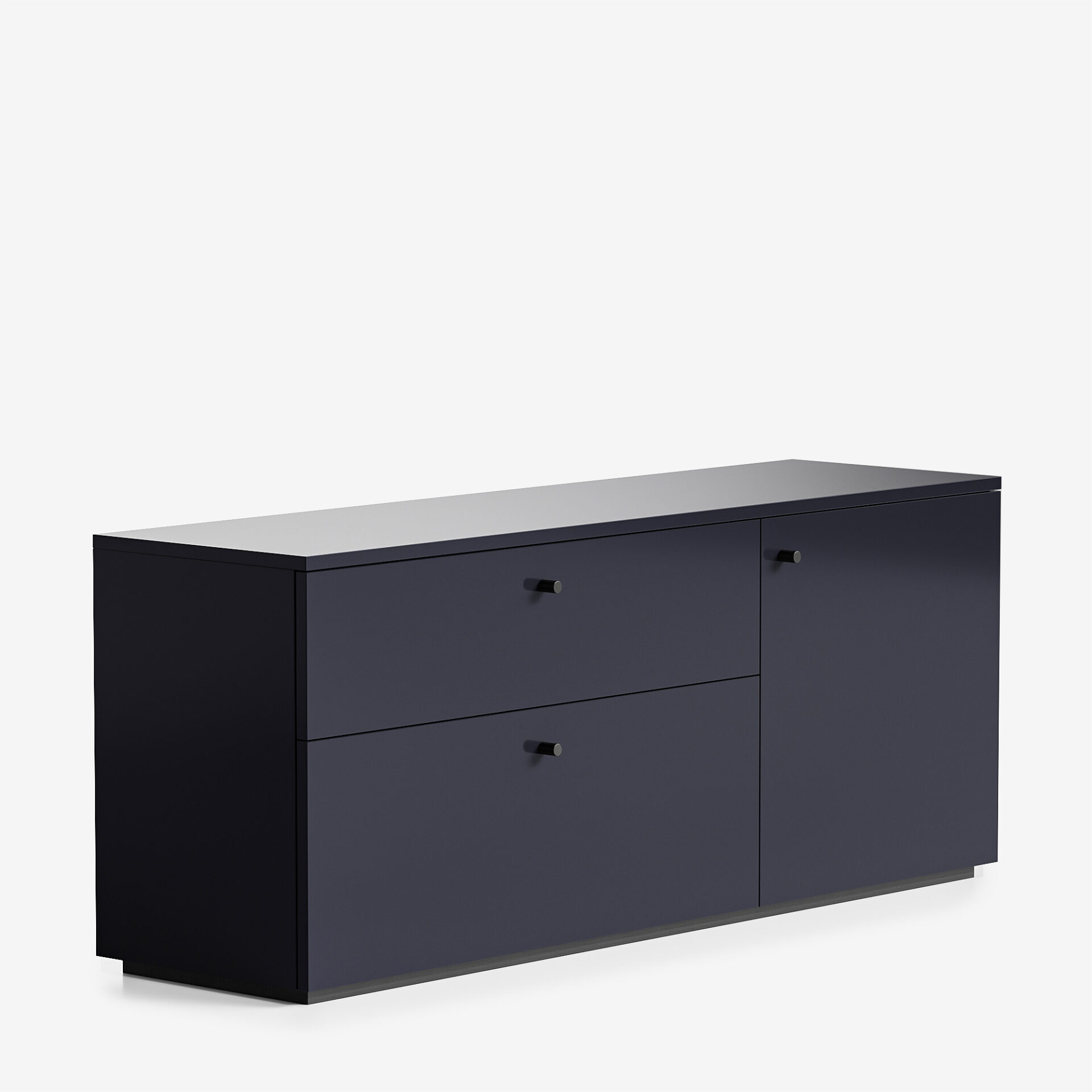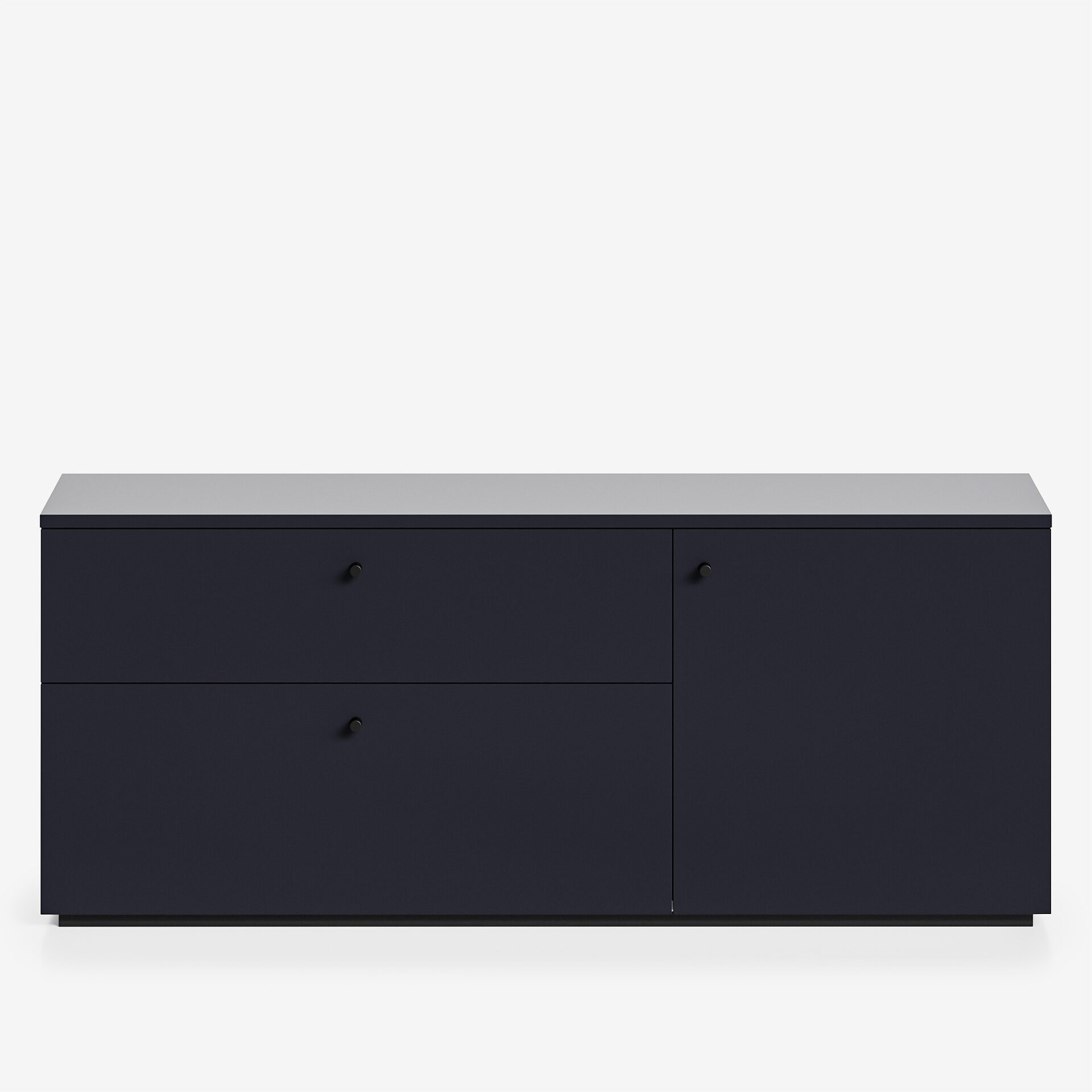 Напольная тумба на цоколе с выдвижными ящиками и секциями с полками – практичная система