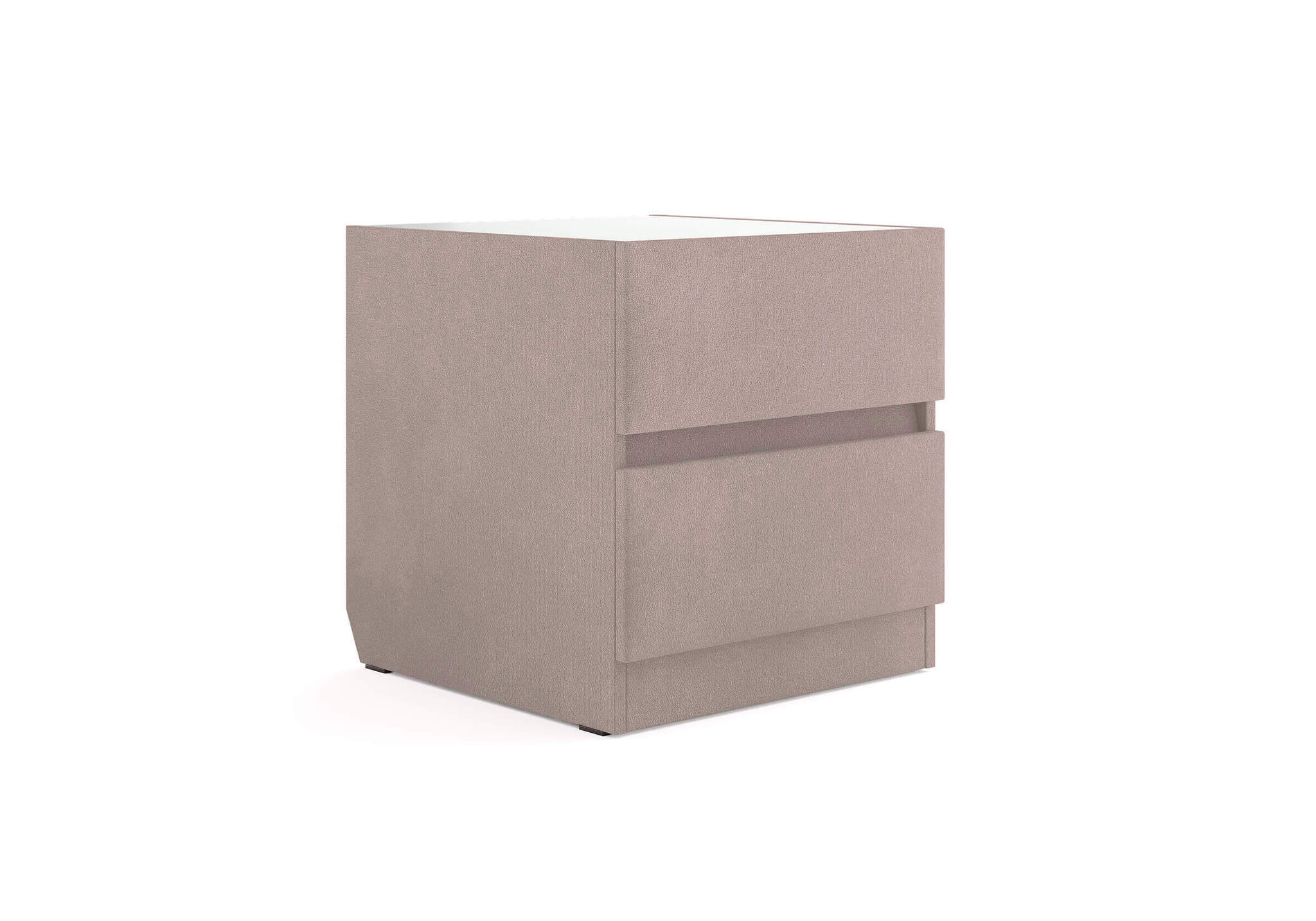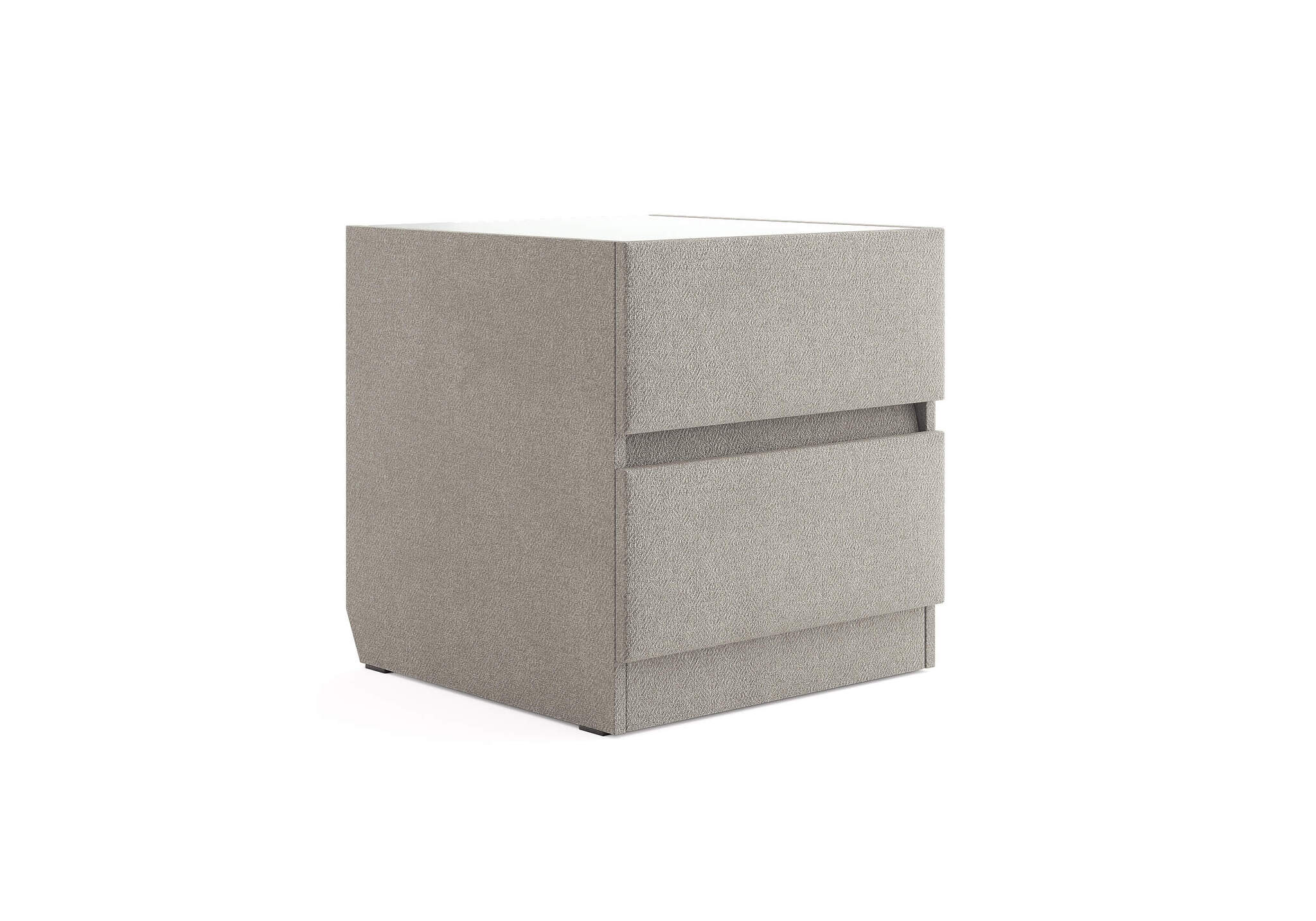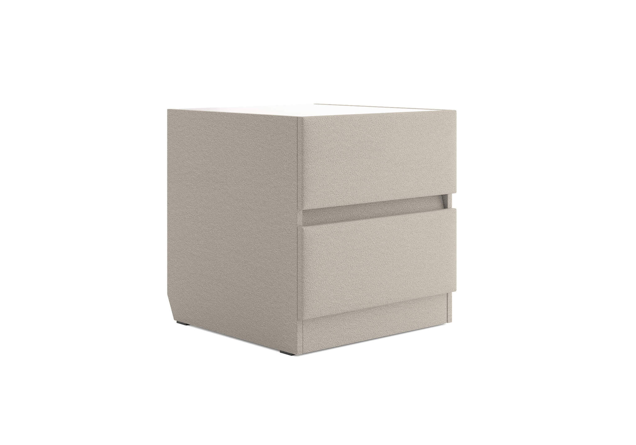 Тумба Omega выполнена в современном стиле. Прямые линии, отсутствие ручек и просвета от пола, делают ее универсальной, позволяя комплектовать тумбы с кроватями, имеющими лаконичное современное изголовье. Два выдвижных ящика с направляющими скрытого монтажа оснащены доводчиками. Задняя стенка выполнена из ДСП и обита спанбондом, что делает тумбу устойчивой и прочной. Тумба имеет скос под плинтус, что позволяет устанавливать ее вплотную к стене. Тумбу дополнительно можно укомплектовать стеклянной столешницей. Широкий выбор фактур и цветов исполнения.