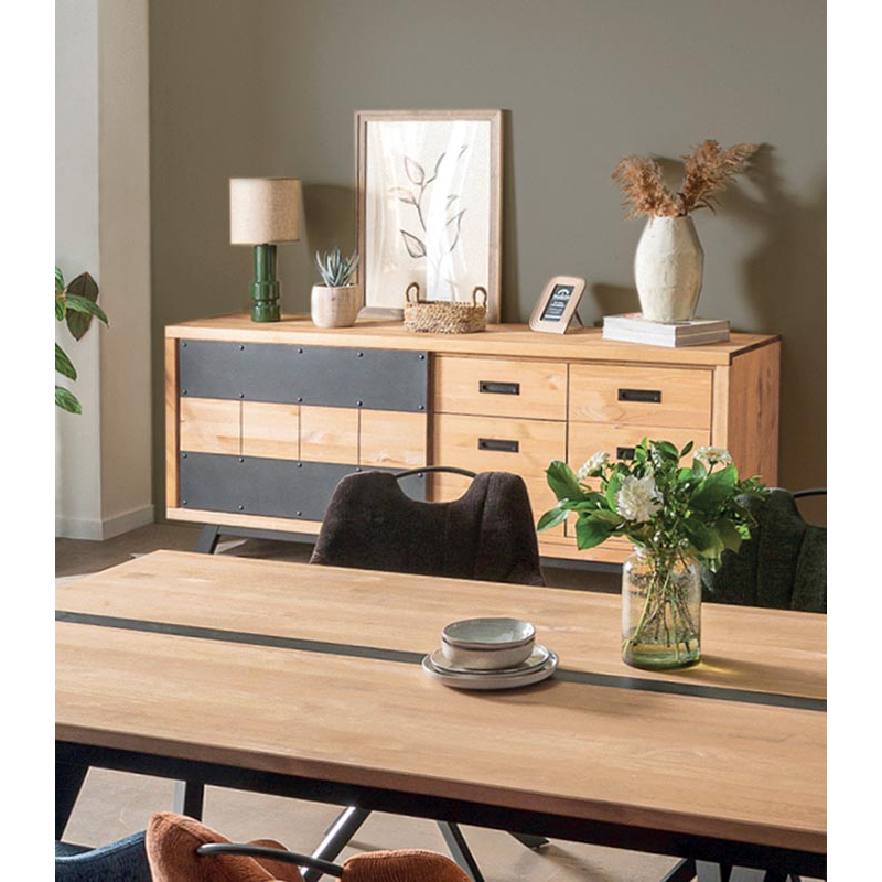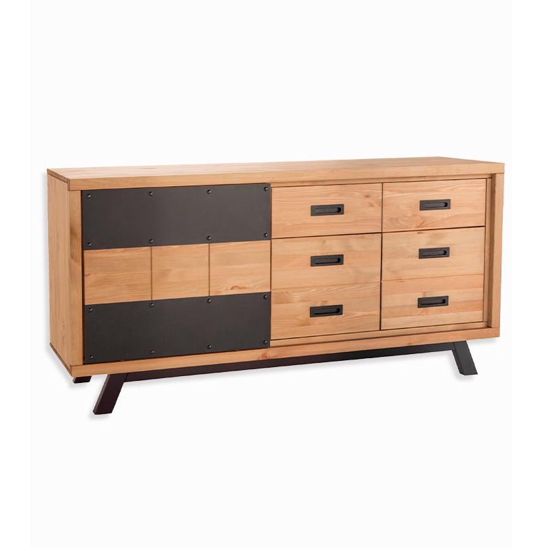 Коллекция «Оникс» представляет собой мебель в стиле лофт, где гармонично сочетаются массив дерева и металлические элементы. Модели обработаны бейцем цвета антик и защитным маслом, что подчеркивает натуральную текстуру древесины. Ножки мебели окрашены в черный цвет эмалью и лаком, создавая выразительный контраст. Фасады сдвижных дверей дополнены металлическими накладками, а врезные черные ручки завершают индустриальный образ. Коллекция идеально подойдет для создания современного интерьера с характером.