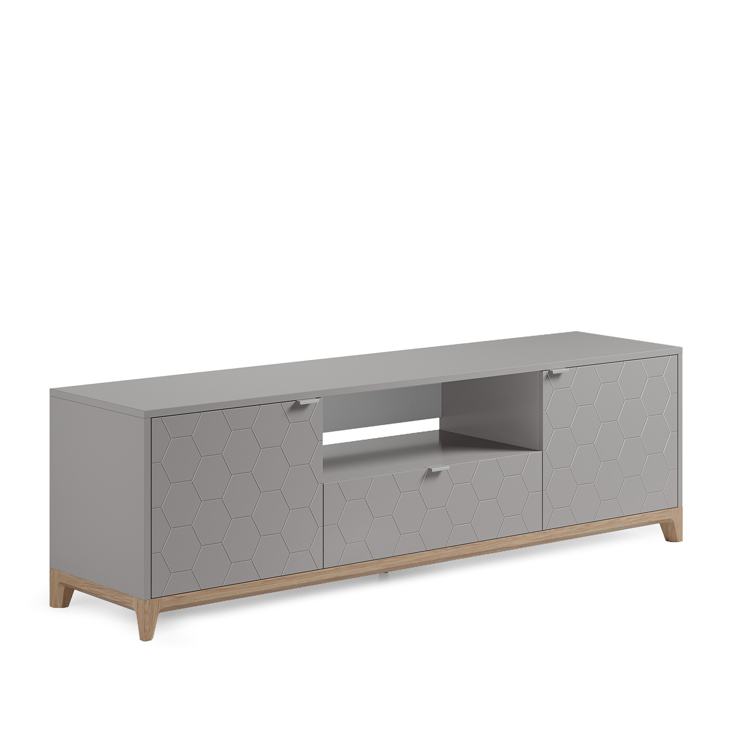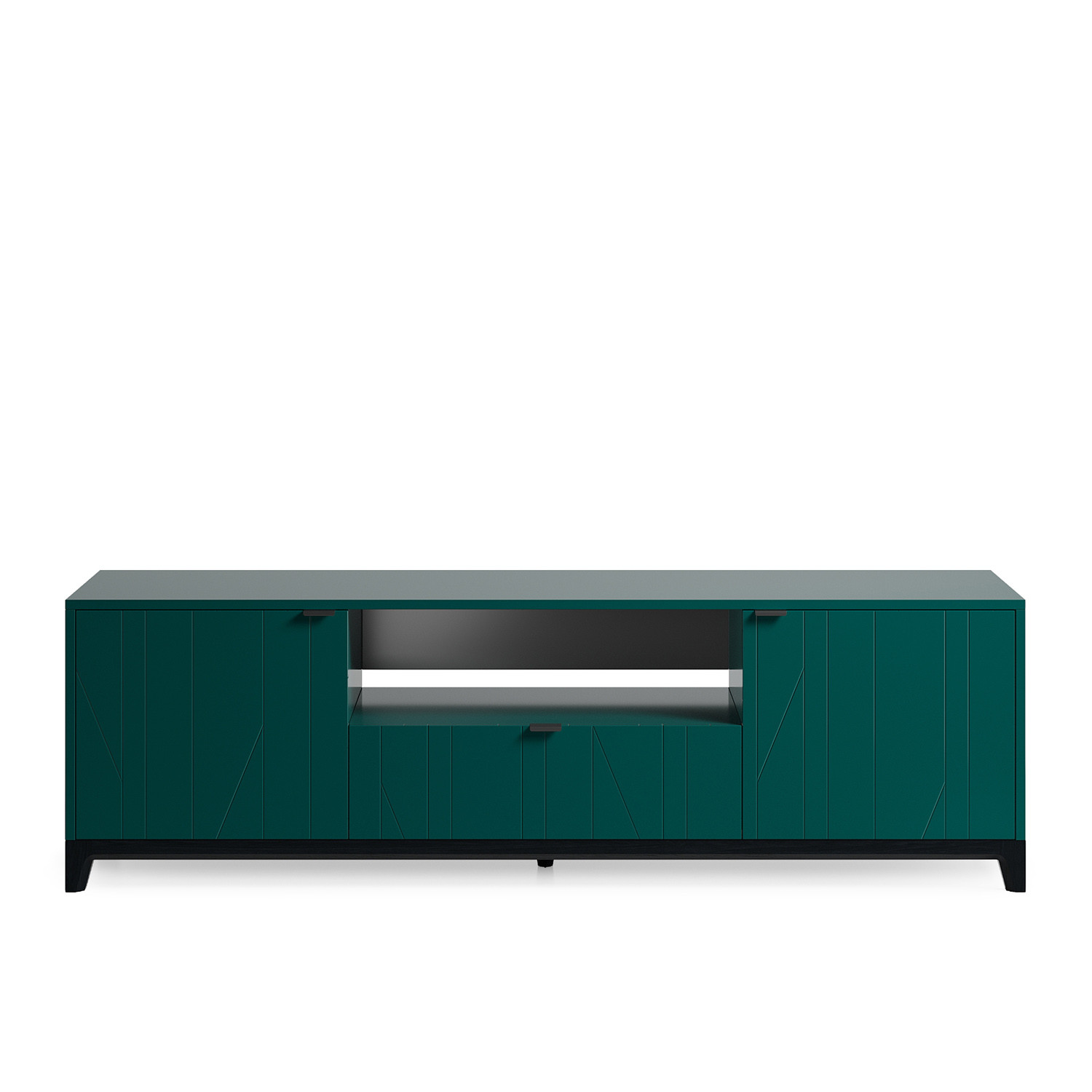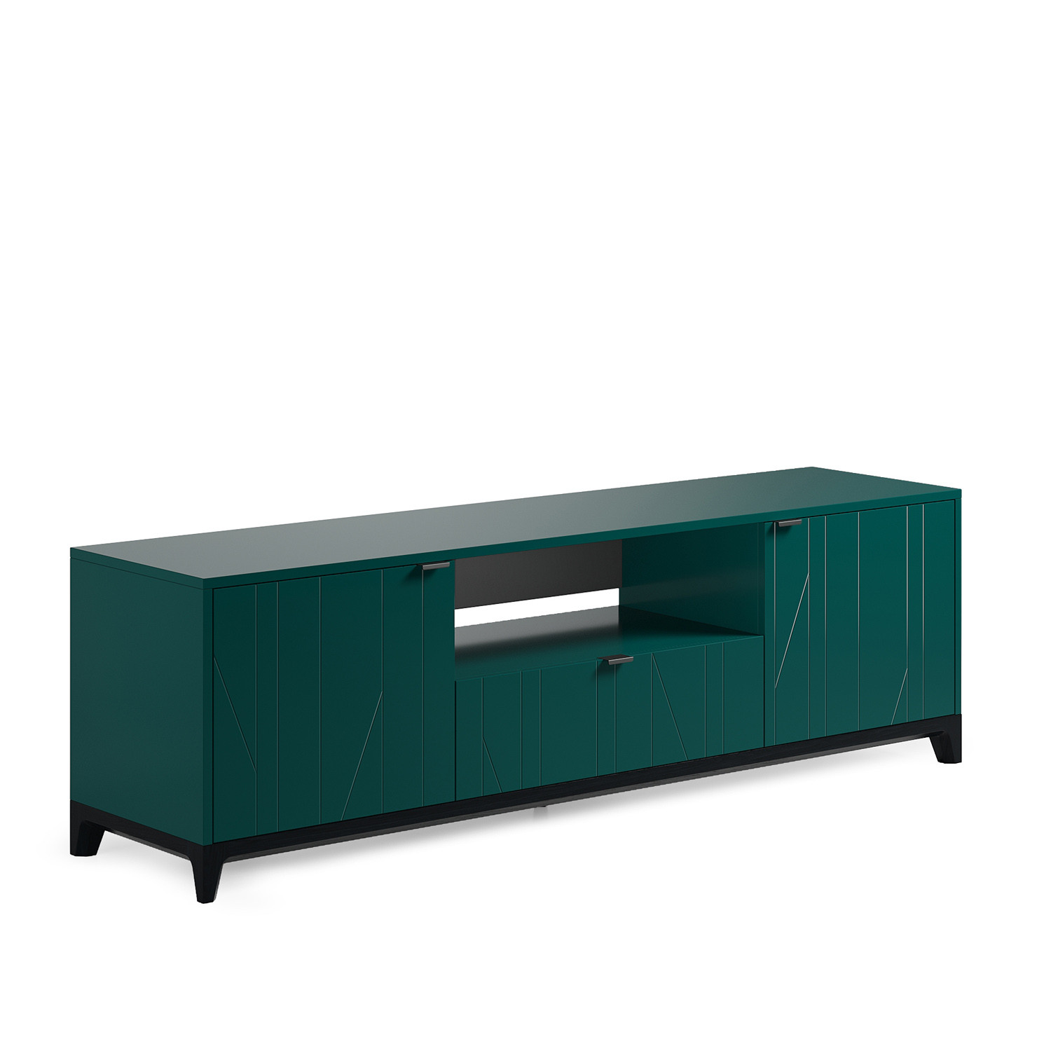 Простой и лаконичный дизайн, гравировка на фасадах, изящные ножки из массива дерева, продуманные габариты гармонично сочетаются в этой тумбе под ТВ. Коллекции книг, журналов и другие приятные мелочи, включая объемные предметы, вы сможете разместить внутри данной ТВ тумбы.