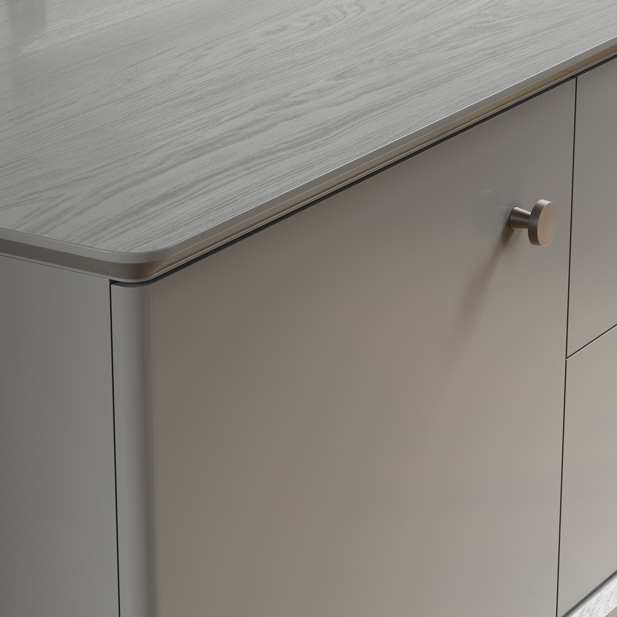 Два просторных ящика и секции с полками создают идеальную систему хранения для медиатехники. Усиленные каркасы выдерживают до 25 кг, а доводчики Hettich обеспечивают плавное закрывание. Регулировка фасадов гарантирует безупречное совпадение узора гравировки.